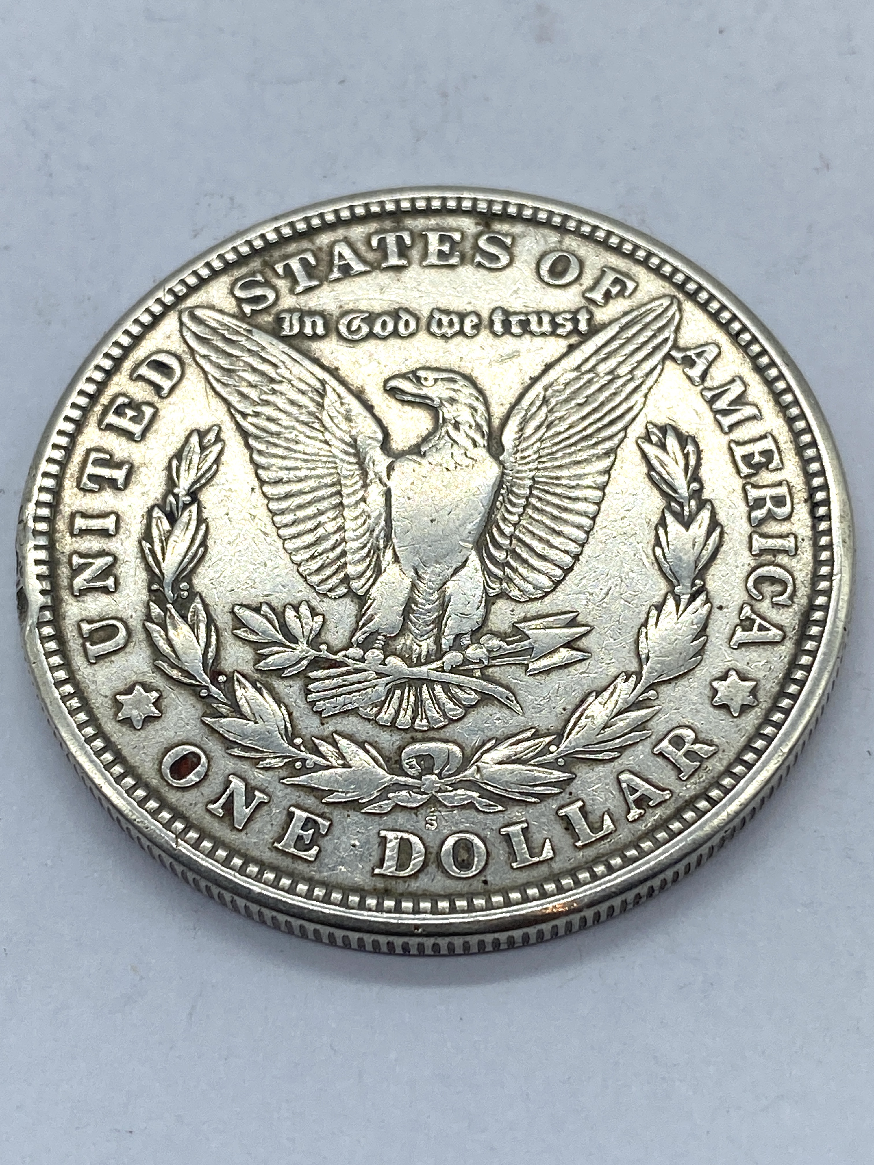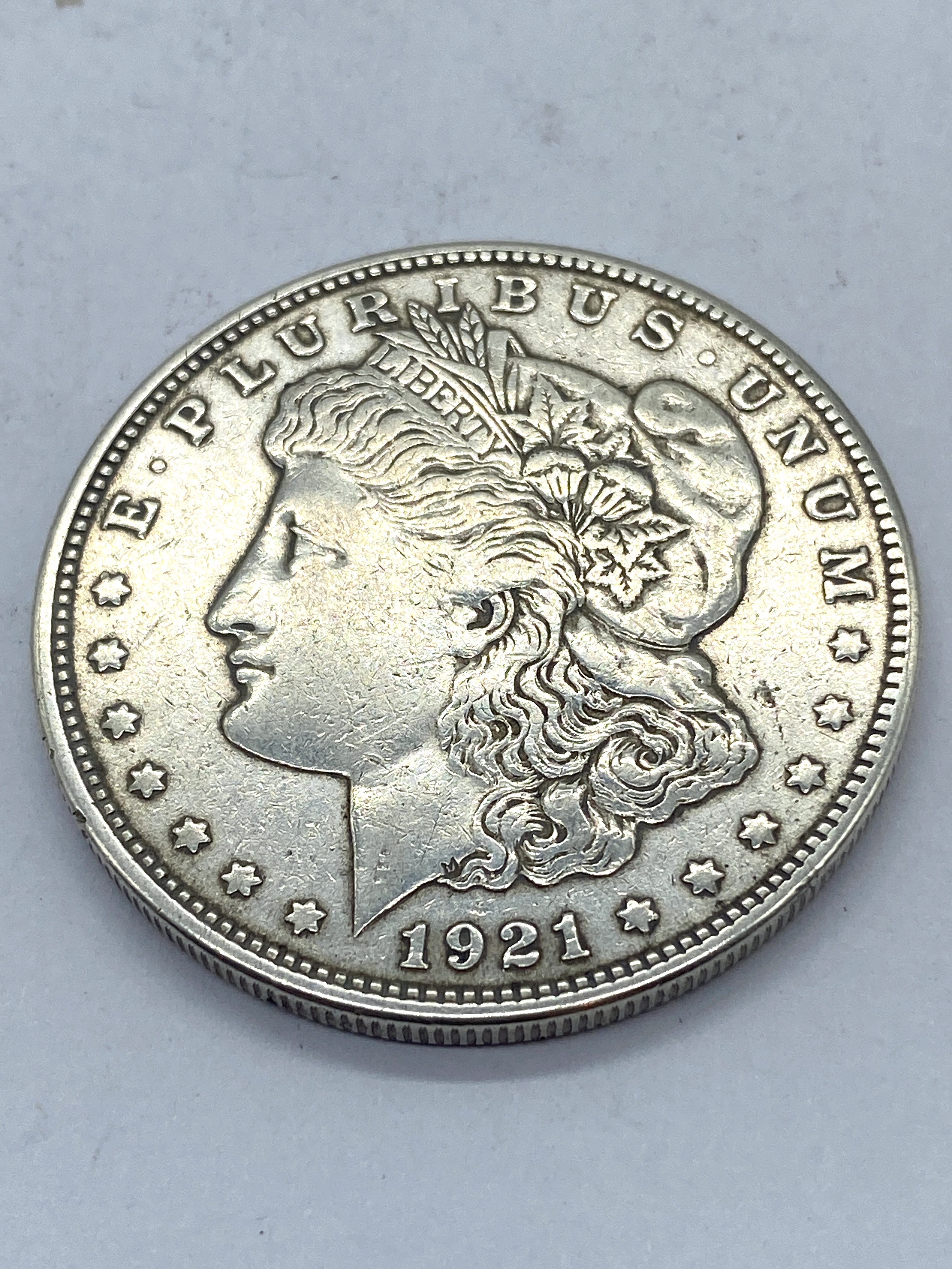 A 1921 Morgan silver dollar coin.