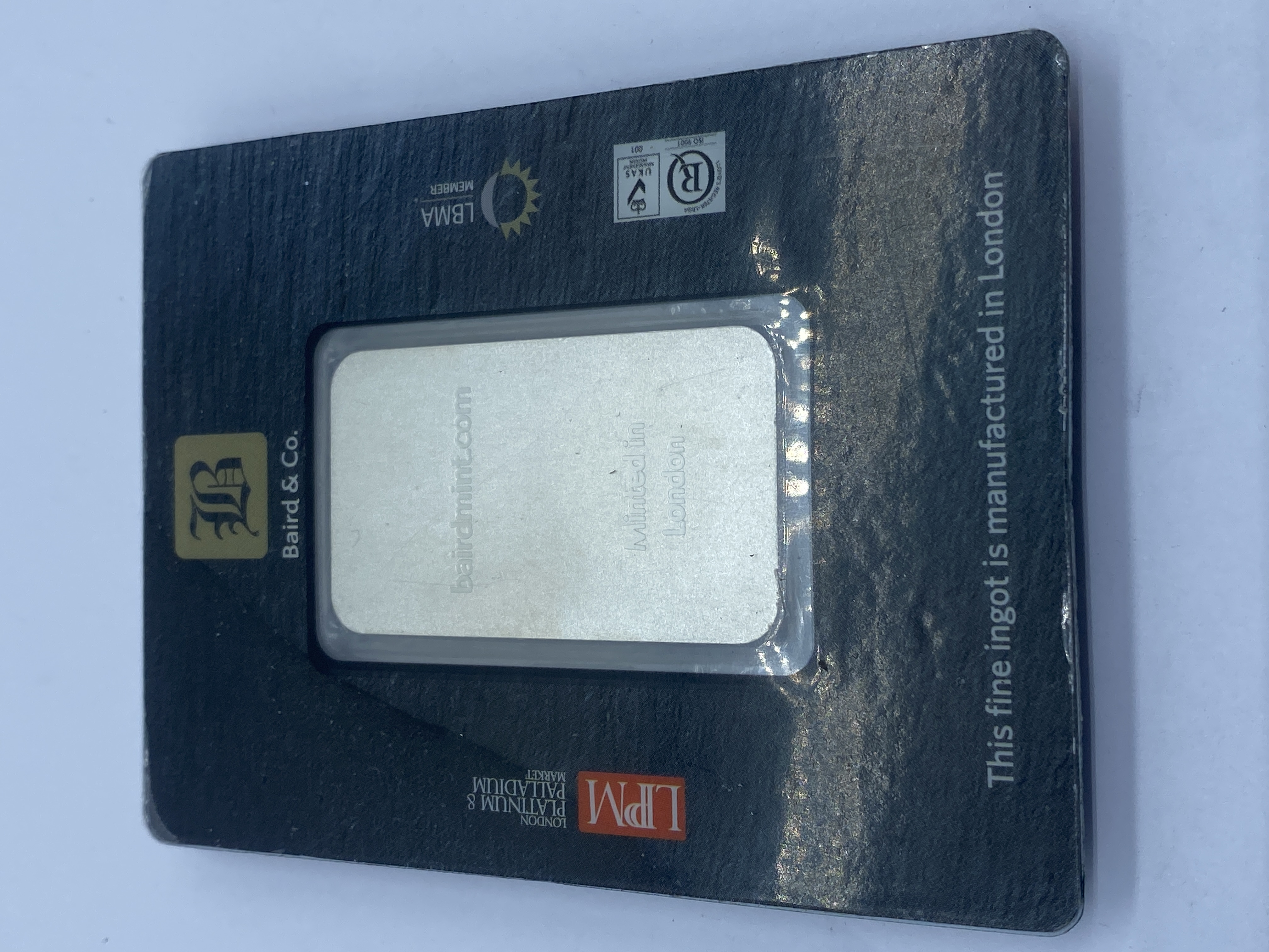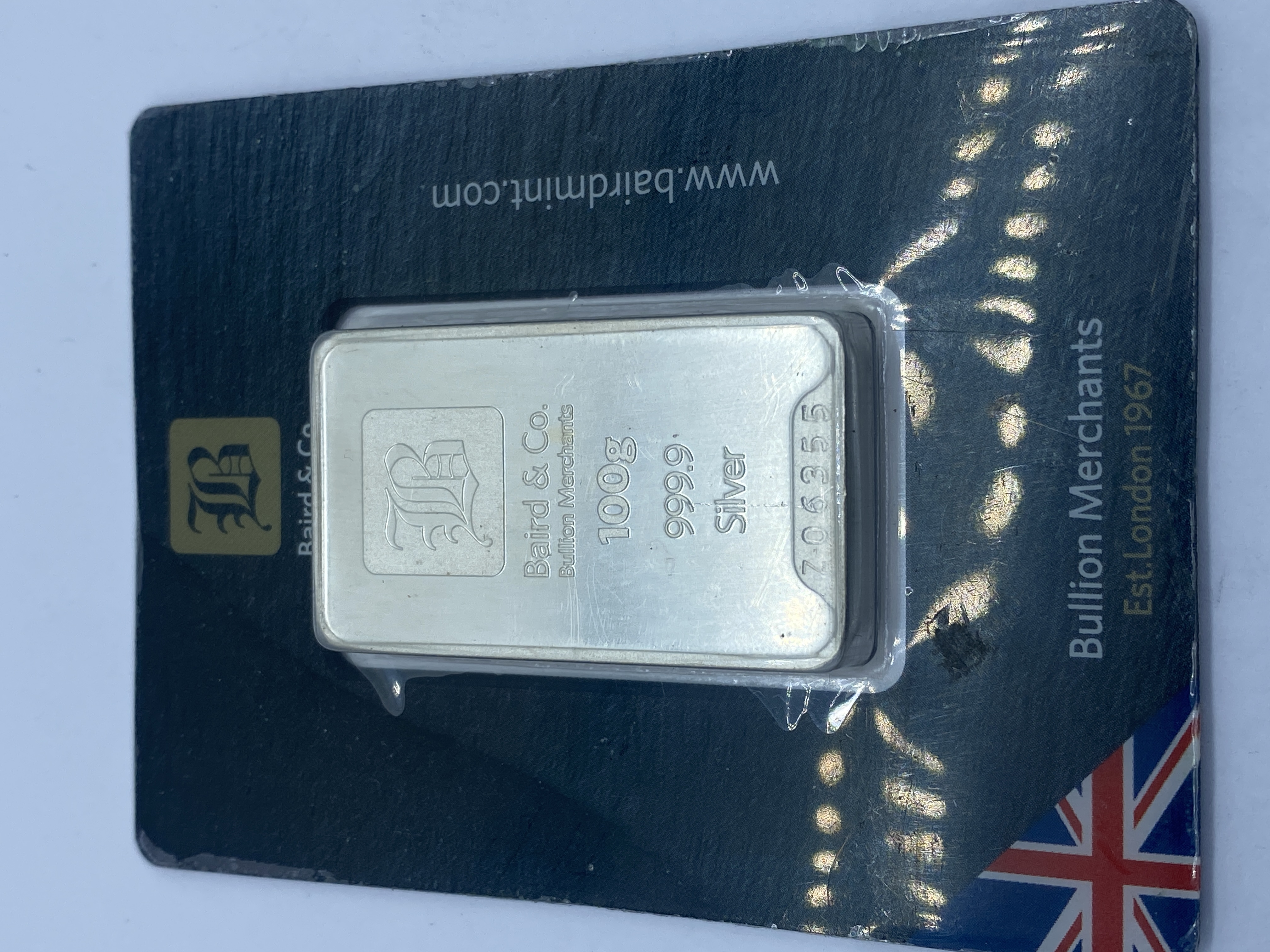 100 gram silver bar in sealed assay card.