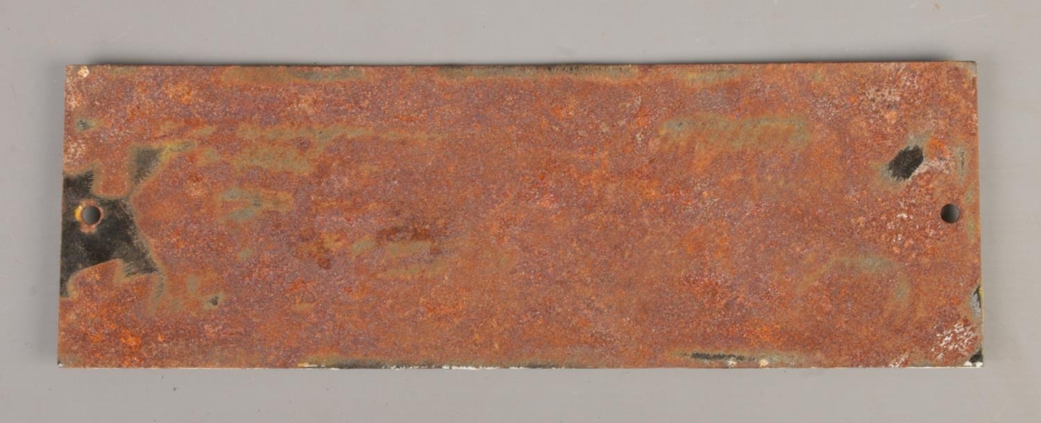 Rectangular enamel advertising sign for “Nosegay” tobacco. The sign features the brand name in large yellow lettering on a black background, with the additional text “Smoke,” “The Tobacco For,” and “Pipe or Cigarette” in smaller lettering. The sign exhibits two small mounting holes at either end. The reverse side shows significant surface rust.