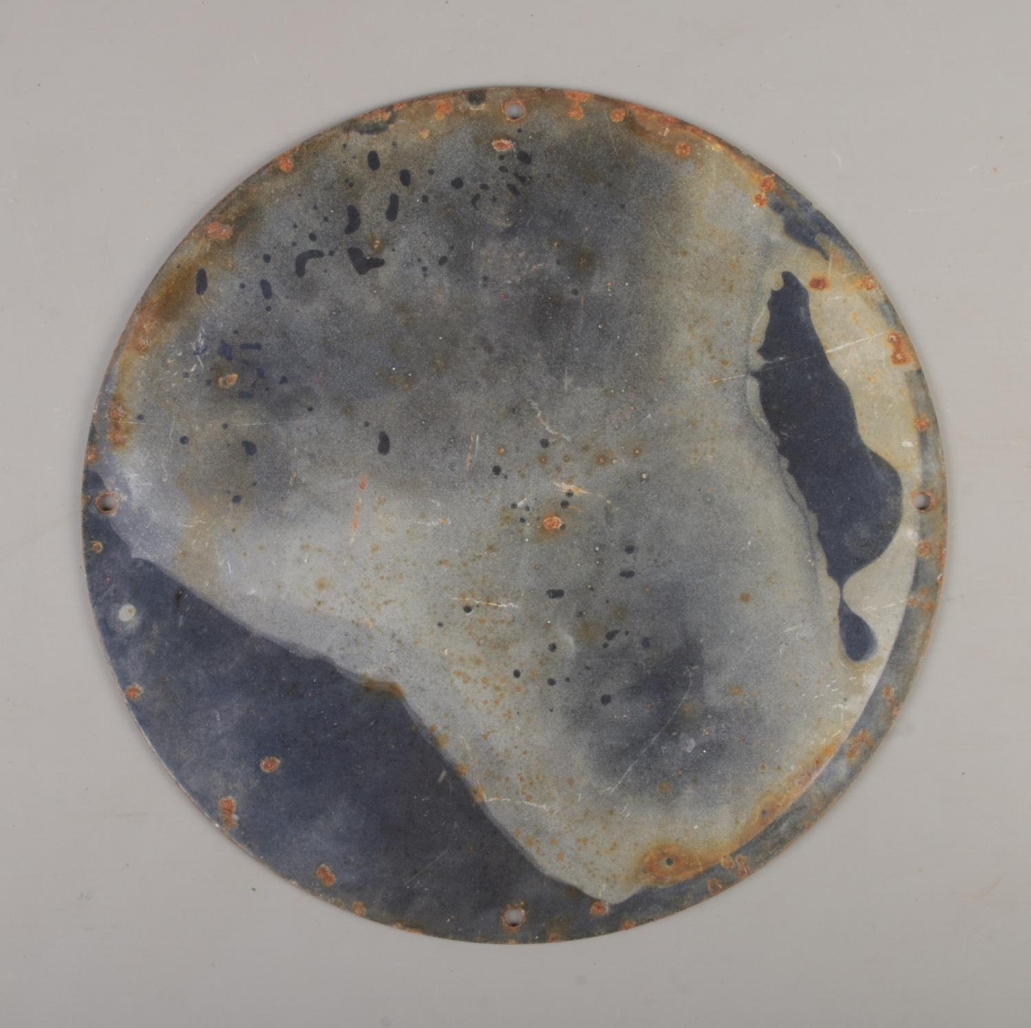 This circular enamel sign advertises Wills’s “Star” Cigarettes. The sign is primarily red with white lettering and a grey reverse. The reverse shows significant rust and discoloration, consistent with outdoor use. There are mounting holes around the perimeter.