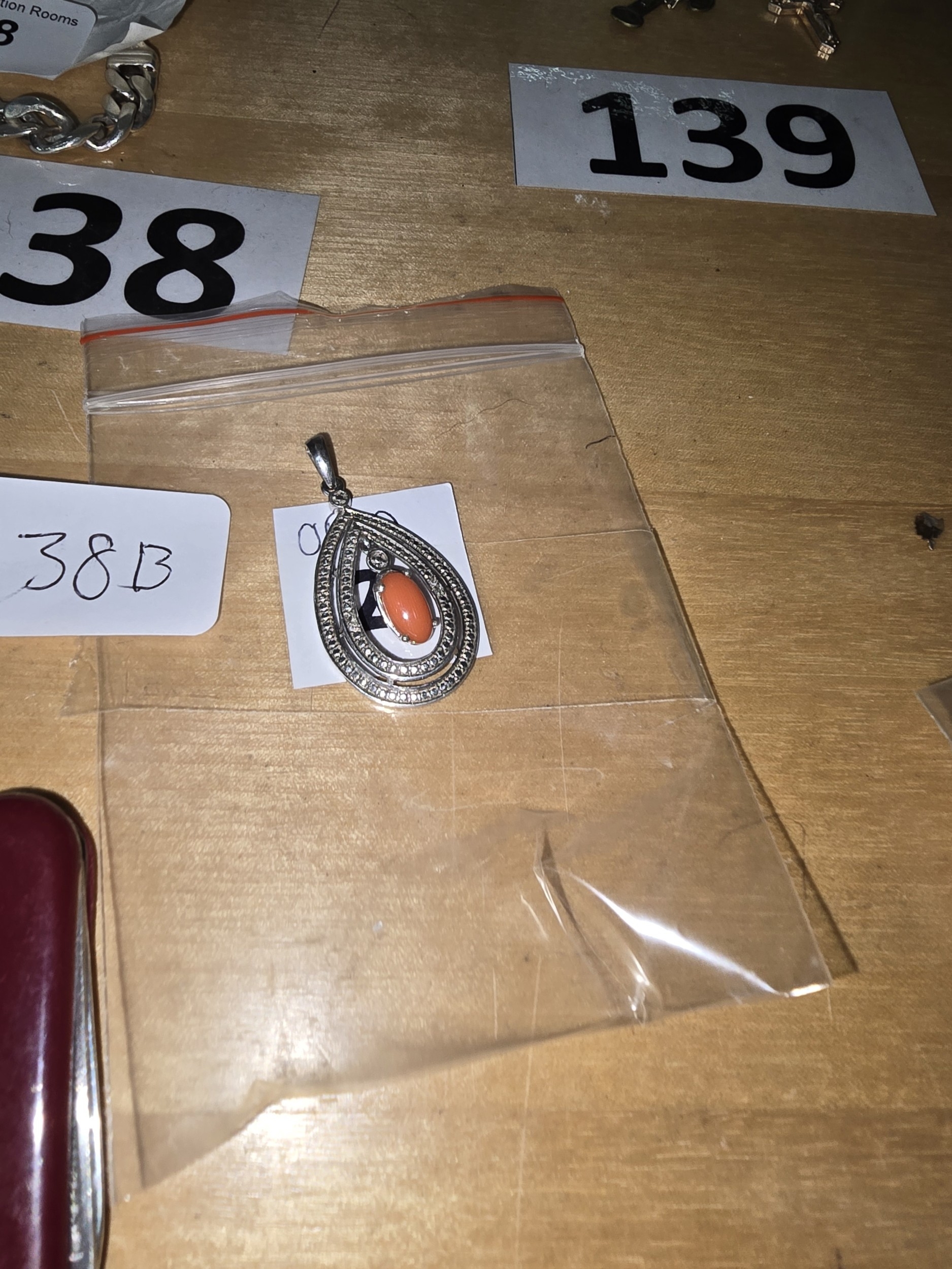 Sterling Silver and Coral Teardrop Pendant
