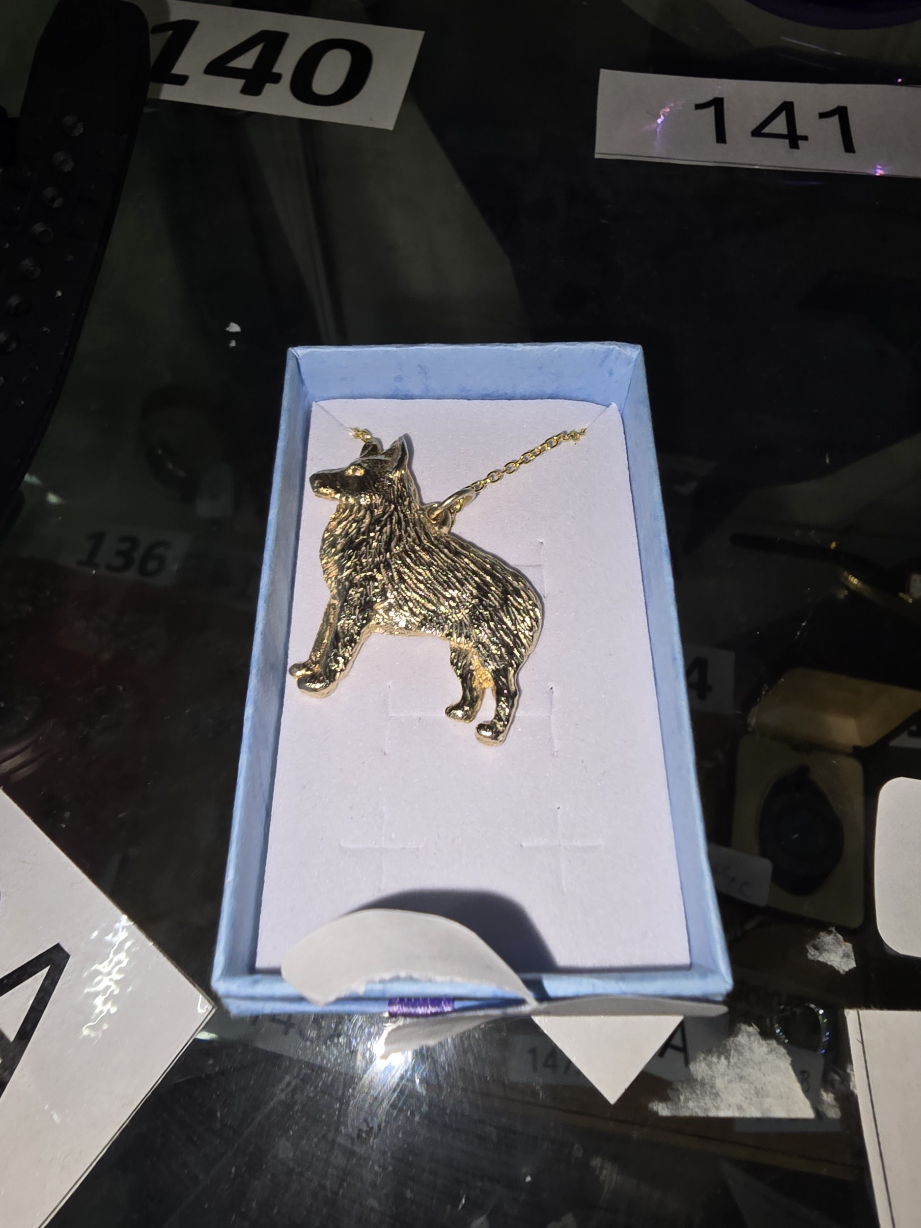 A Gold-Plated Belgian Shepherd Dog Pendant and Chain