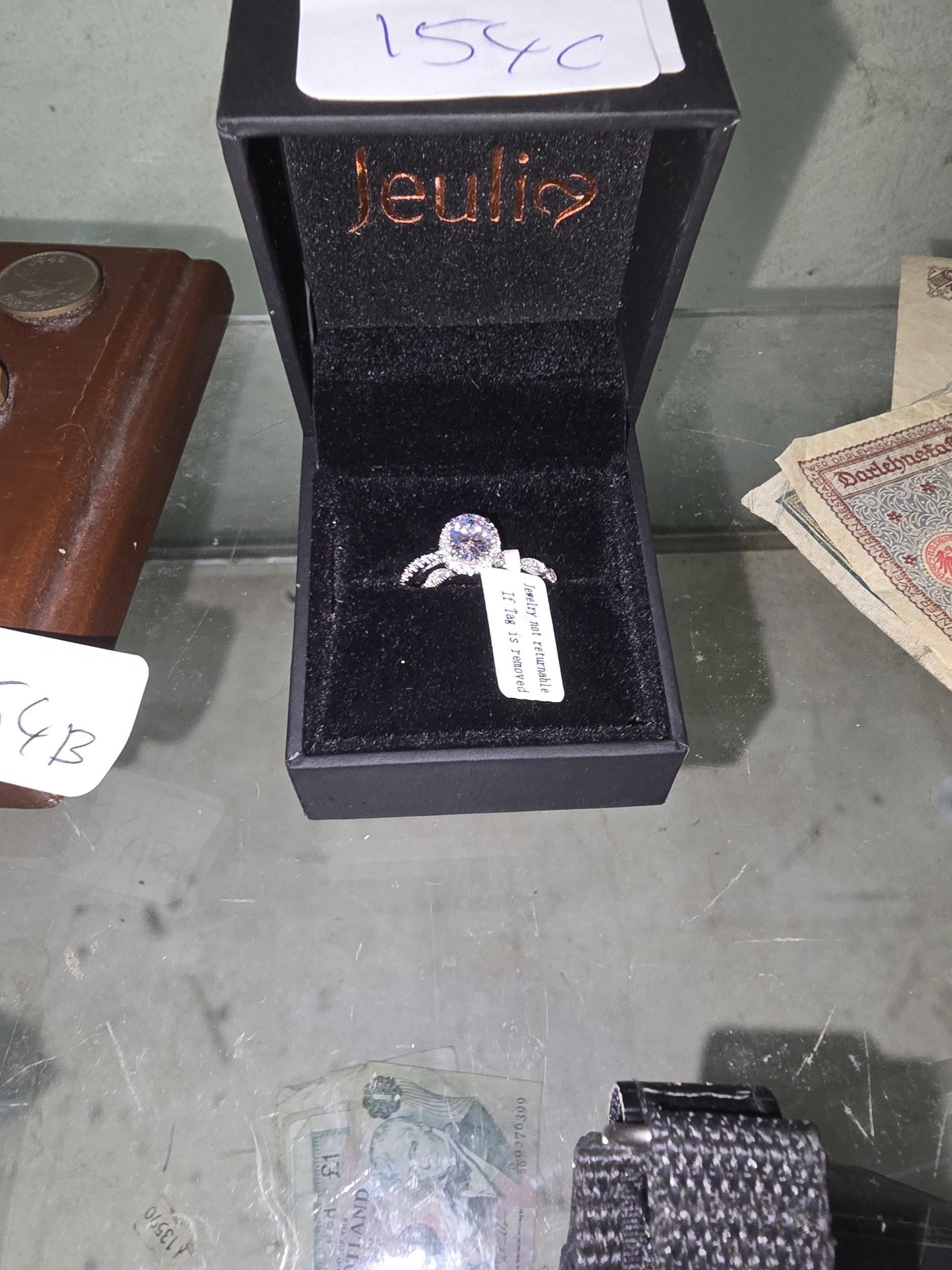 Jeulia Silver-Tone Round Cut Zirconia Halo Split Shank Ring, 1.5 Carat Equivalent