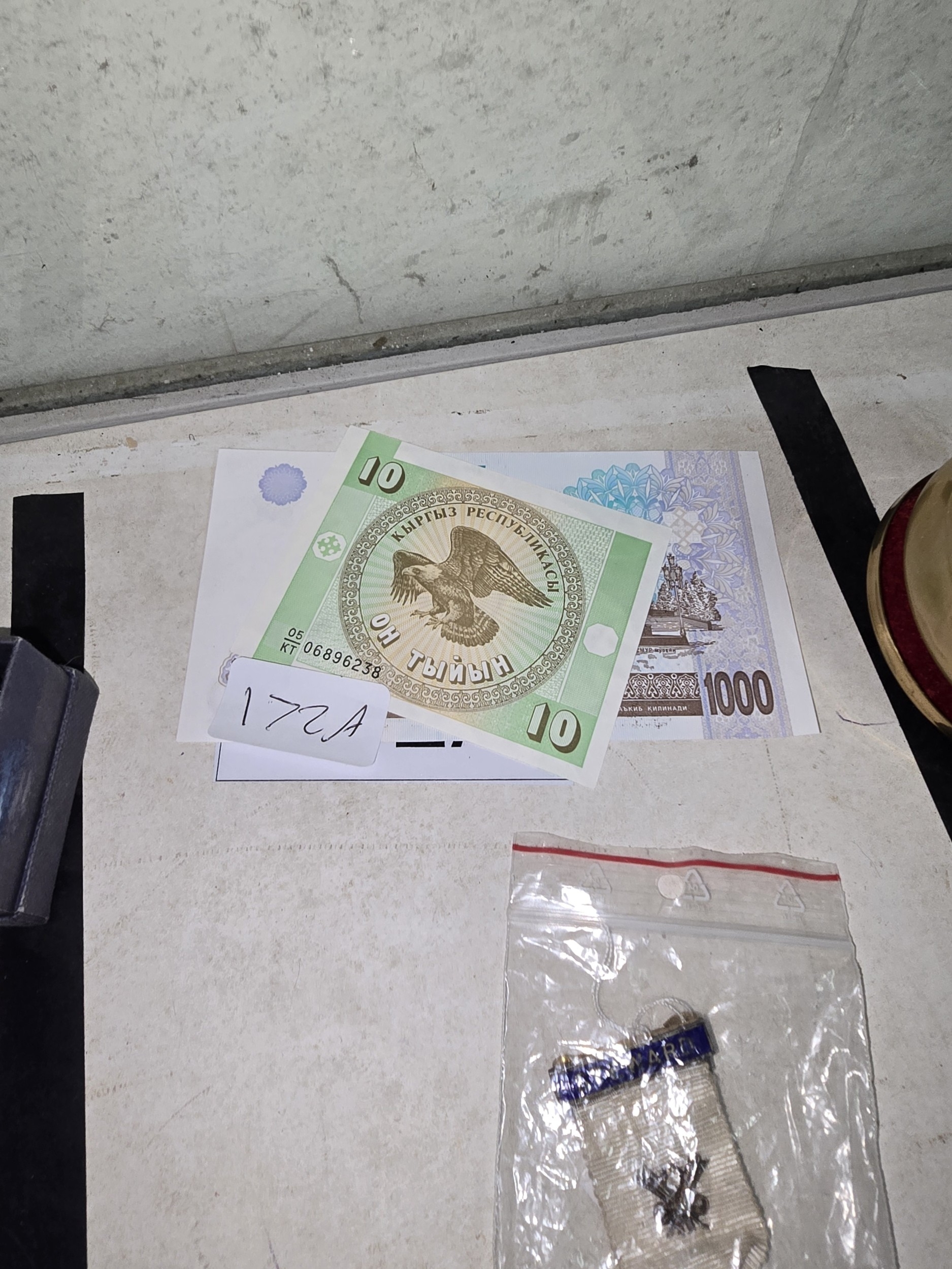 A Group of Kyrgyz Republic Banknotes and a Miniature Medal