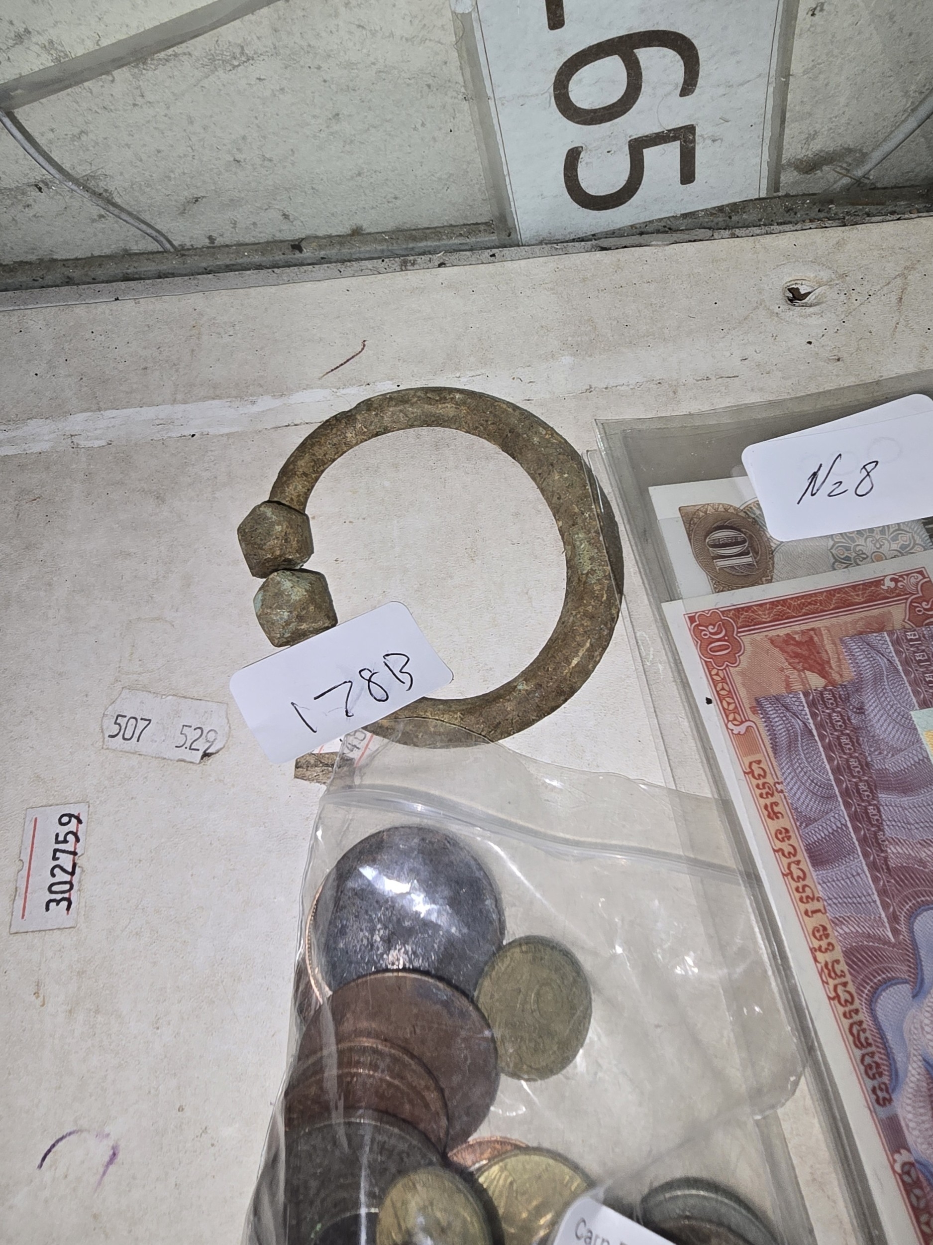 A Penannular Bronze Ring, a Collection of Coins, and a Group of Banknotes