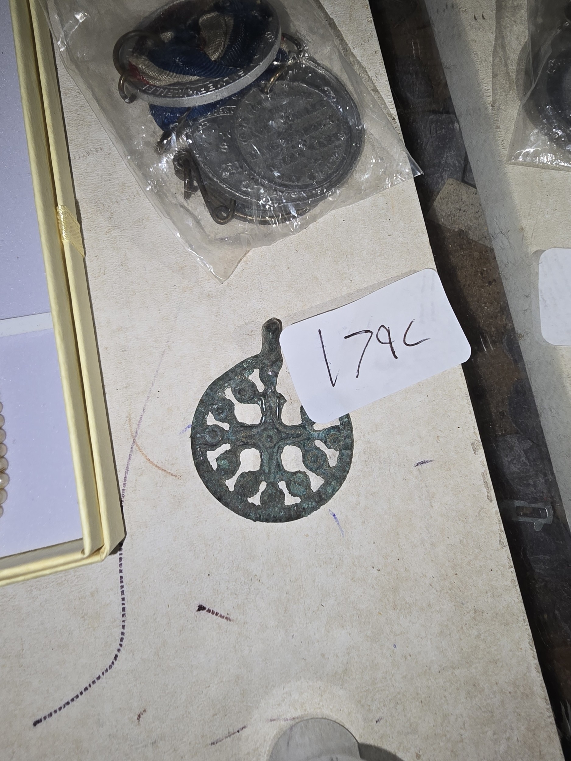 An Ancient or Medieval Bronze Alloy Openwork Pendant and a Group of Commemorative Medals