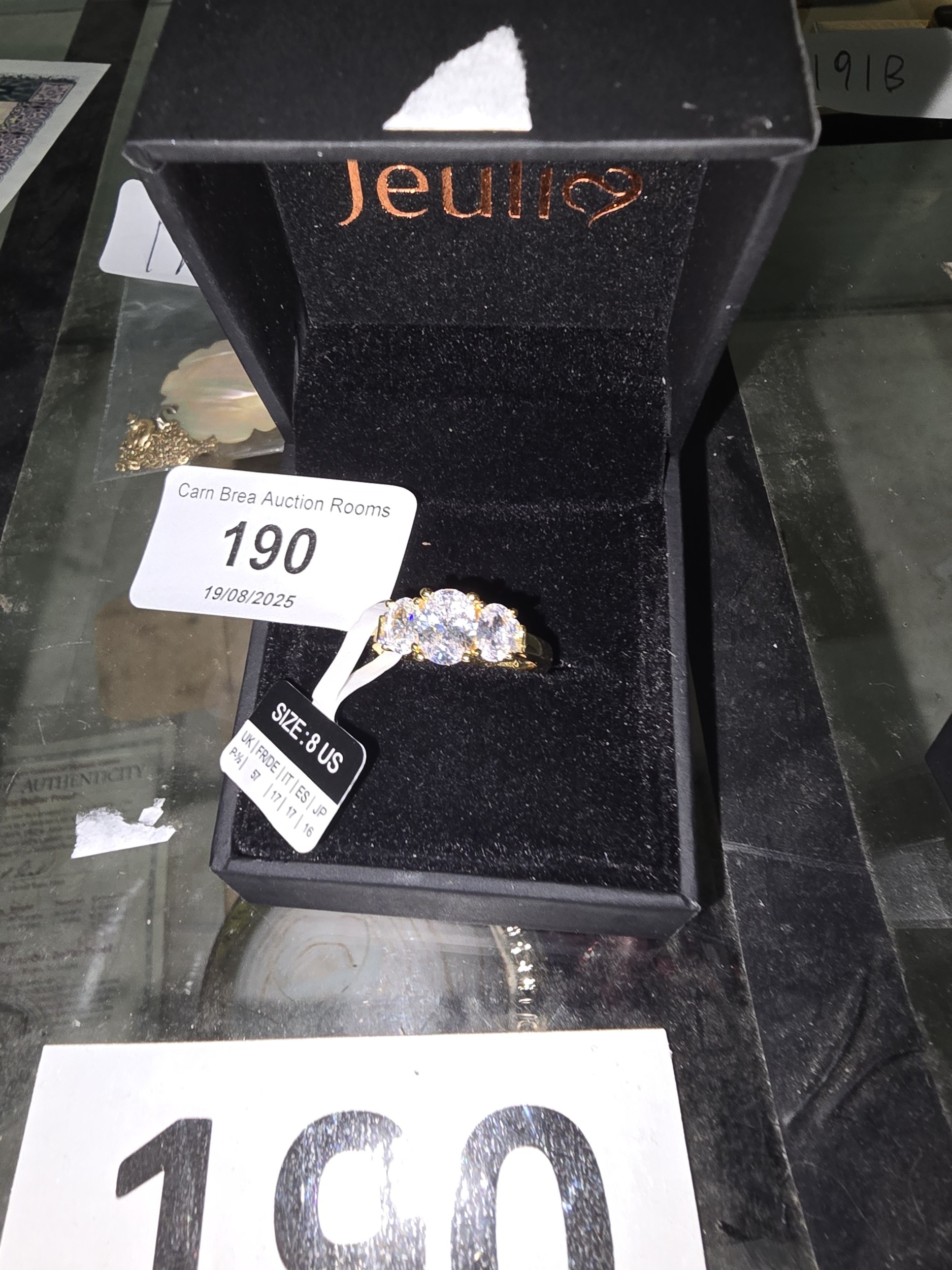 14K Yellow Gold Plated Three Stone Round Cubic Zirconia Ring