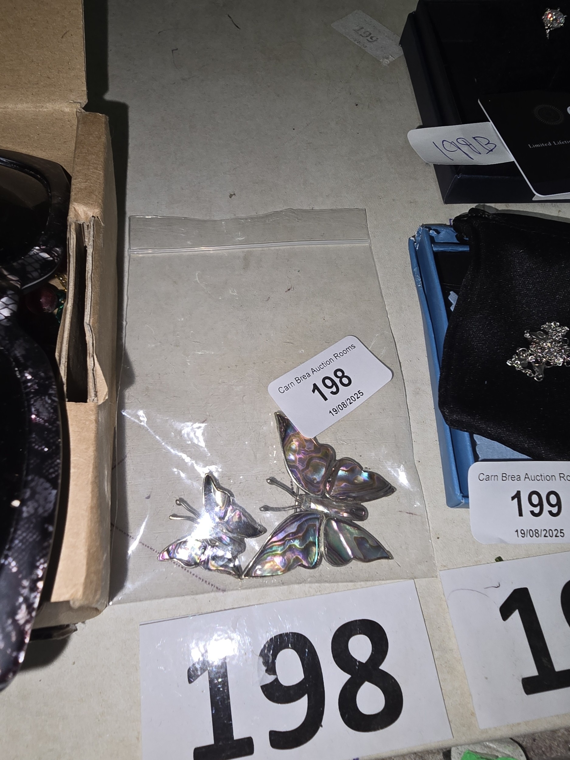 A Group of Vintage Mexican Sterling Silver Abalone Butterfly Brooches/Pins