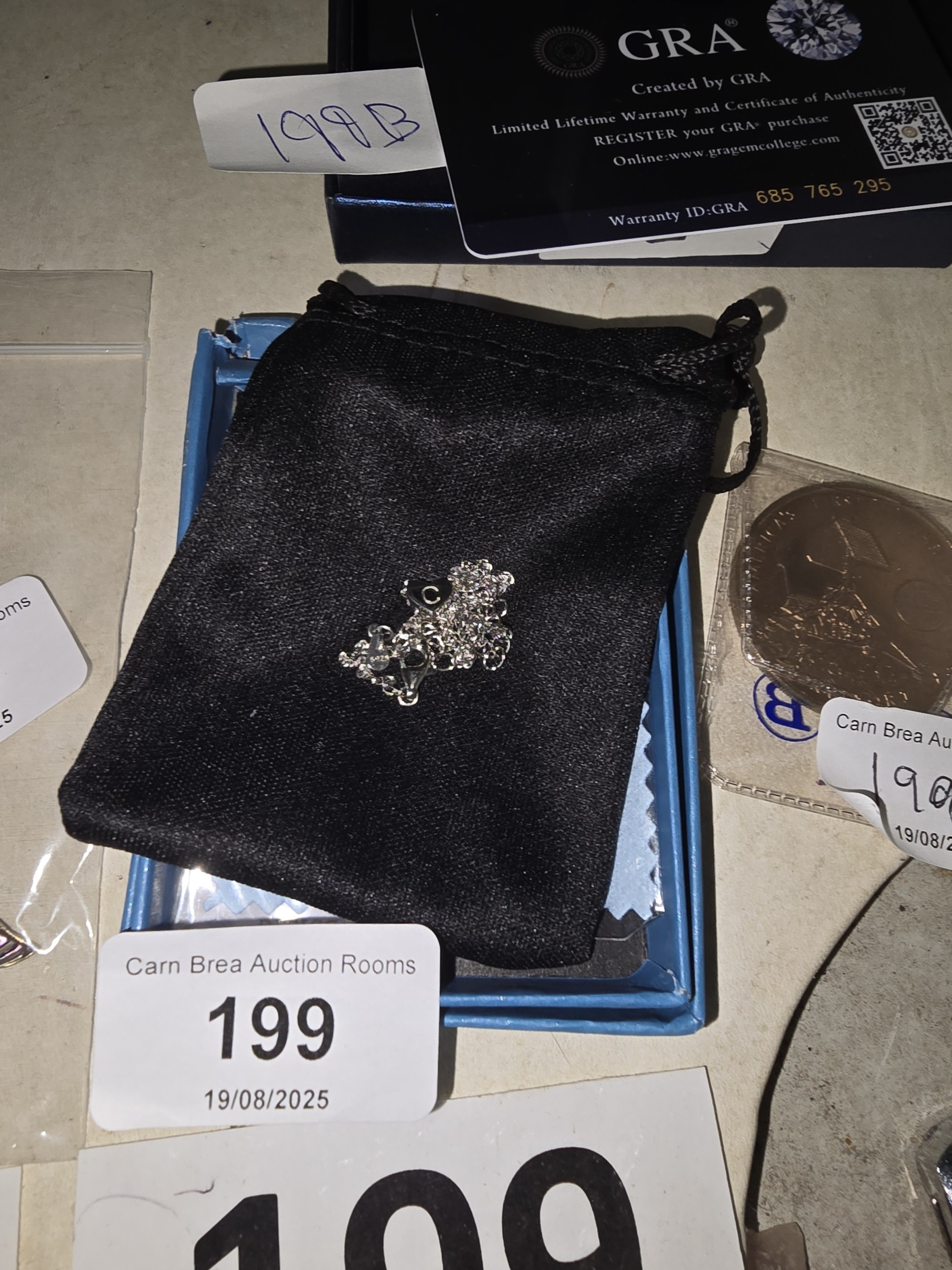 Sterling Silver-Toned Necklace with GRA Certified Faceted Clear Stones and ‘C’ Heart Pendant