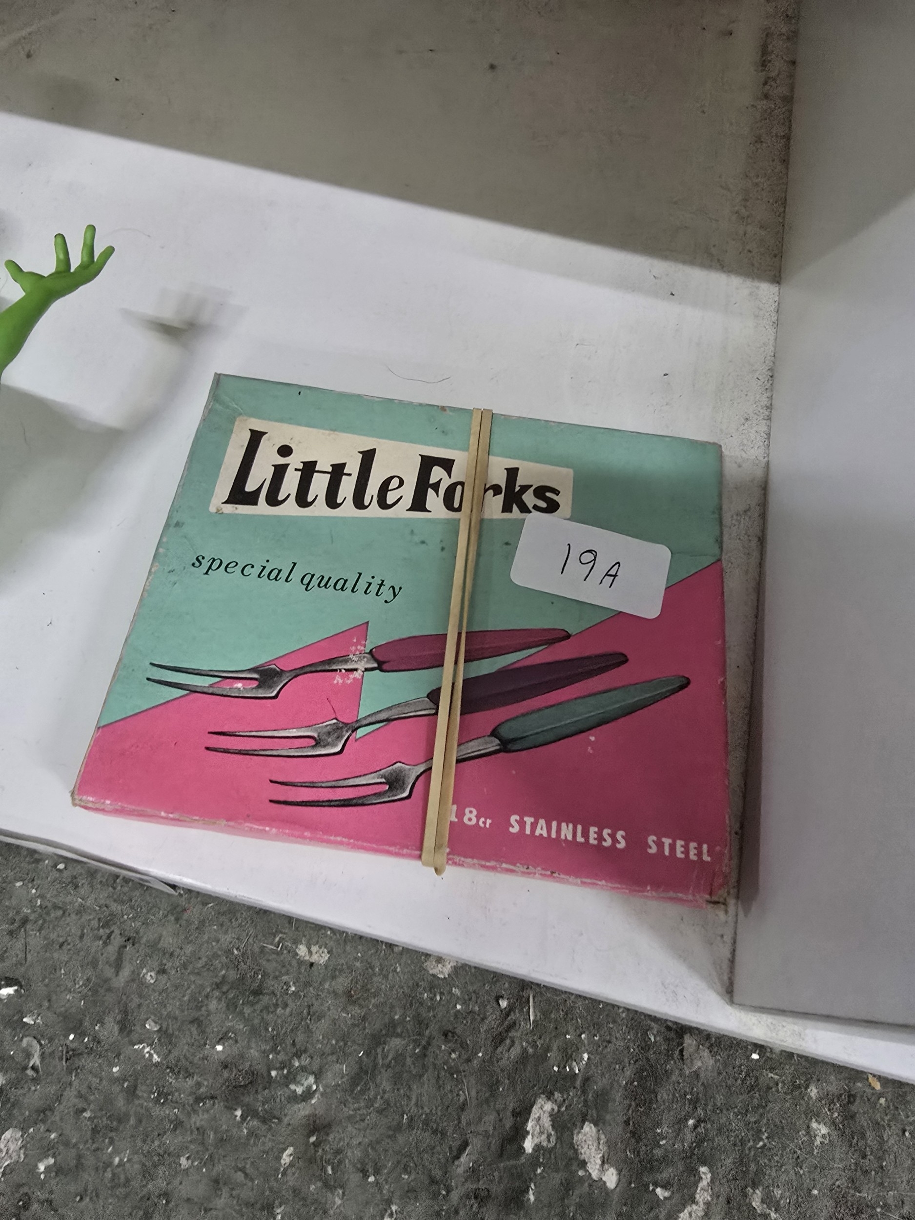 Vintage Retro ‘Little Forks’ Stainless Steel Appetizer Fork Set, Boxed