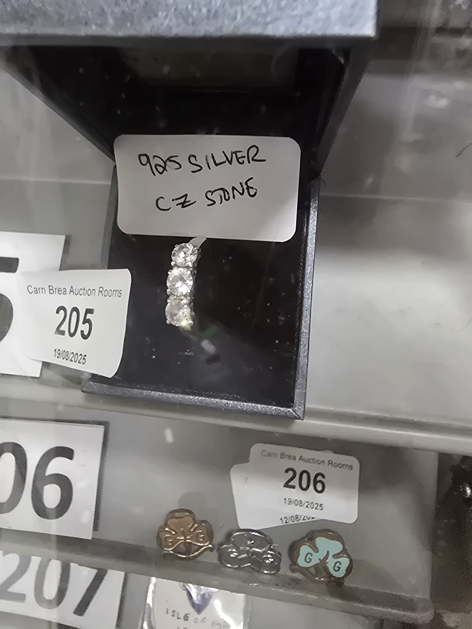 A Contemporary Sterling Silver and Cubic Zirconia Three-Stone Ring