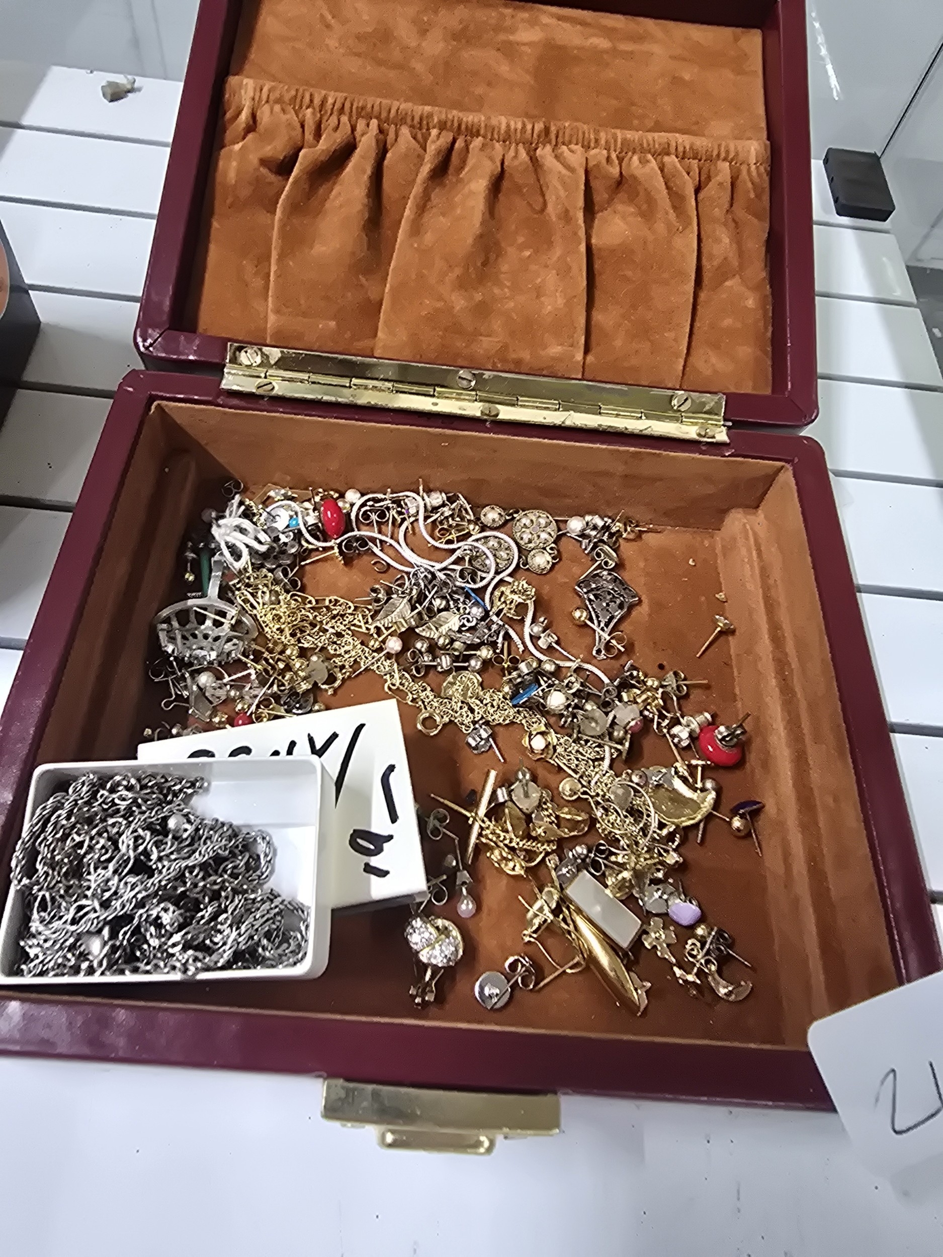 A Collection of Costume Jewelry in a Burgundy Jewelry Box