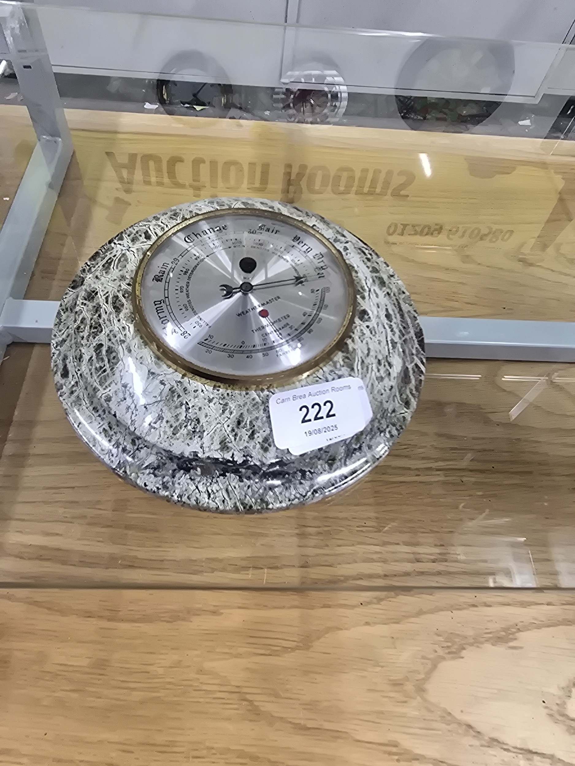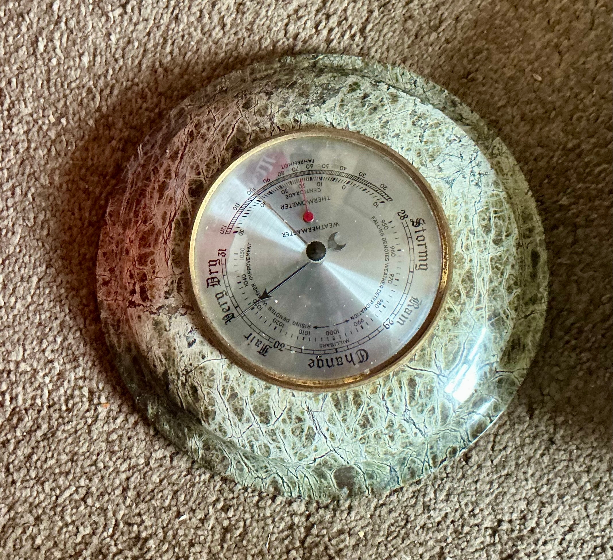 A Vintage Cornish Serpentine Weathermaster Barometer and Thermometer