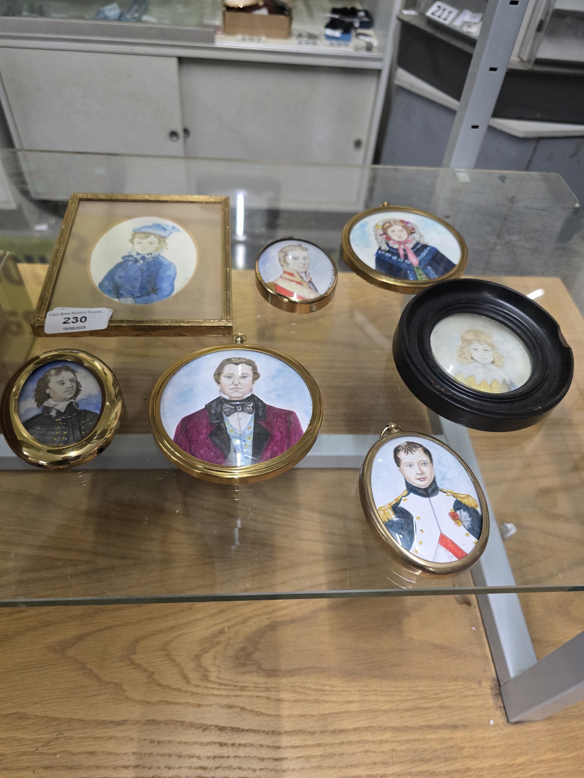 A Group of 19th Century American or English School Portraits, including Miniatures