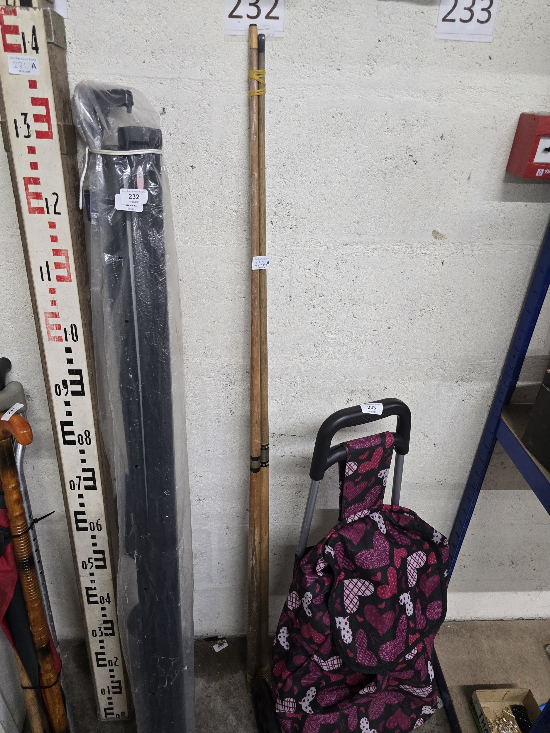 A Velbon DF 30 Tripod, a Collection of Surveying Equipment, and a Shopping Trolley