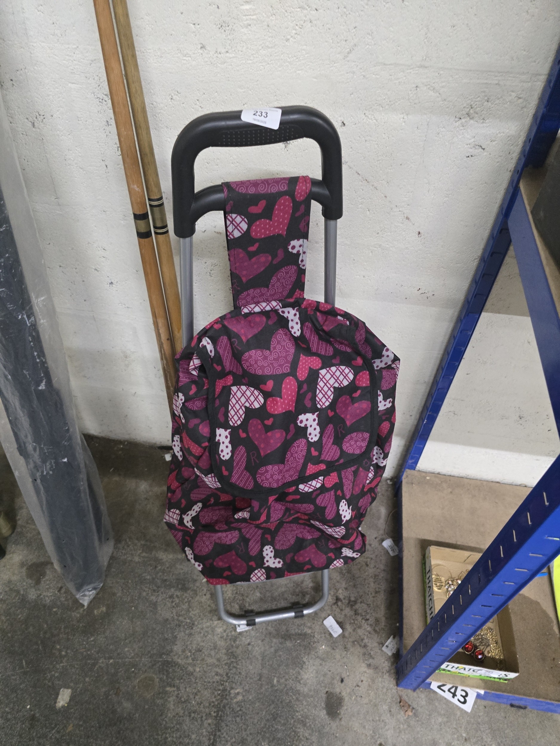 A Modern Lightweight Wheeled Shopping Trolley Bag with Heart Pattern