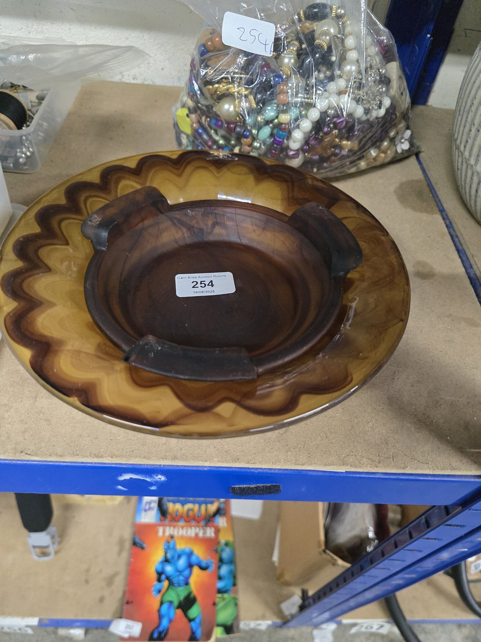 An Art Deco Davidson Amber Cloud Glass Ashtray/Bowl and a Collection of Costume Jewelry