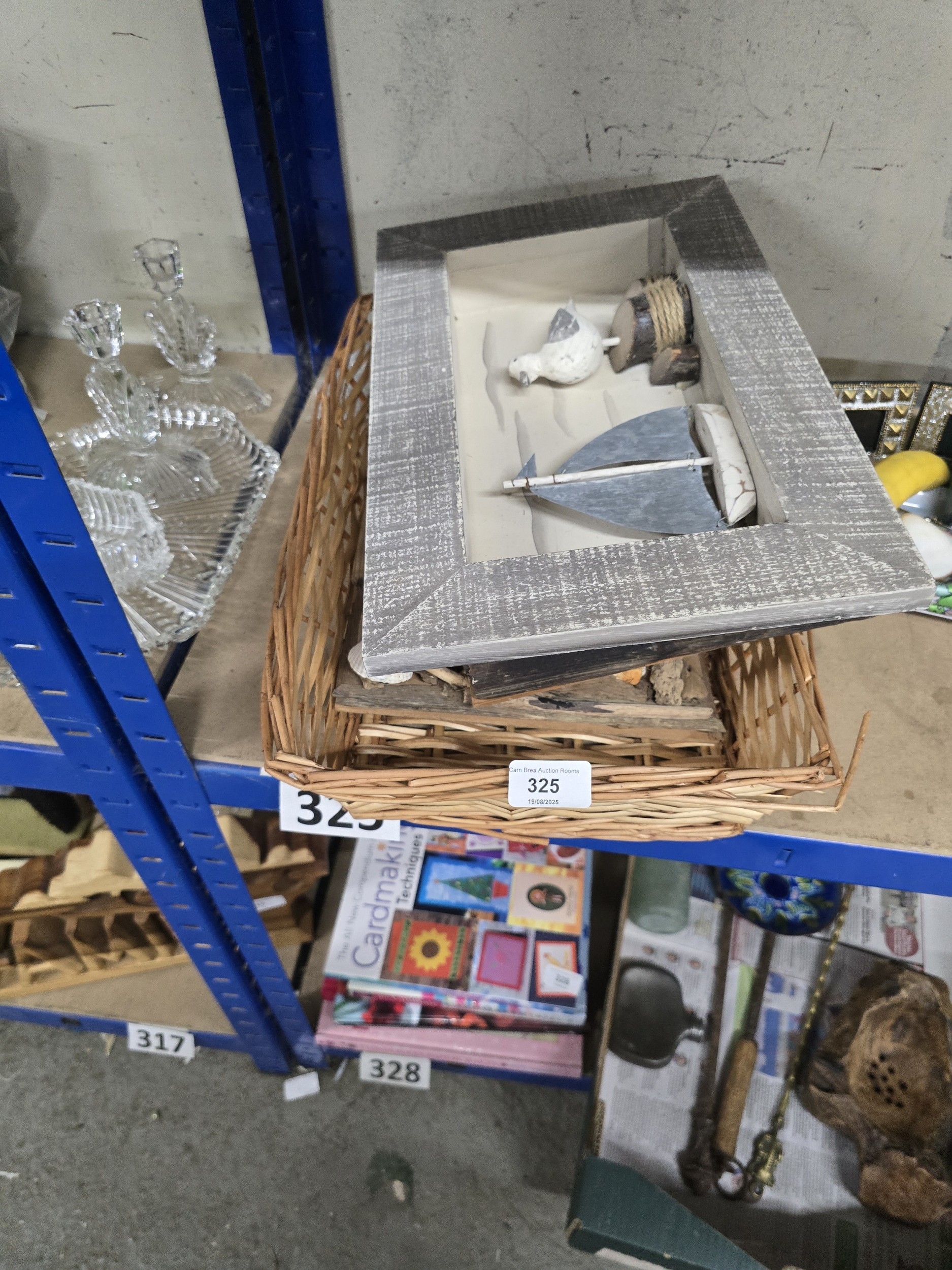 A Contemporary Nautical-Themed Shadow Box Presented in a Wicker Basket