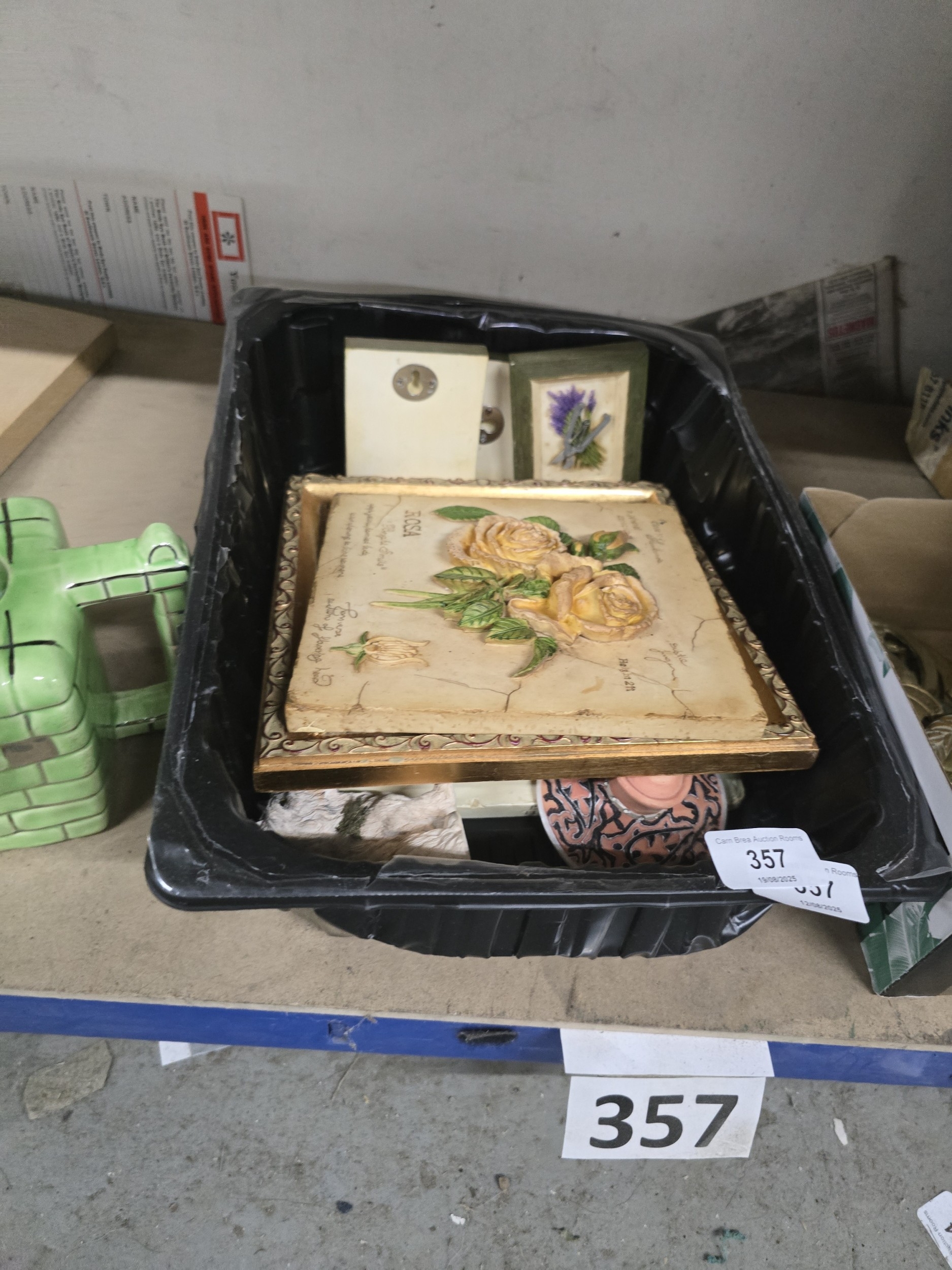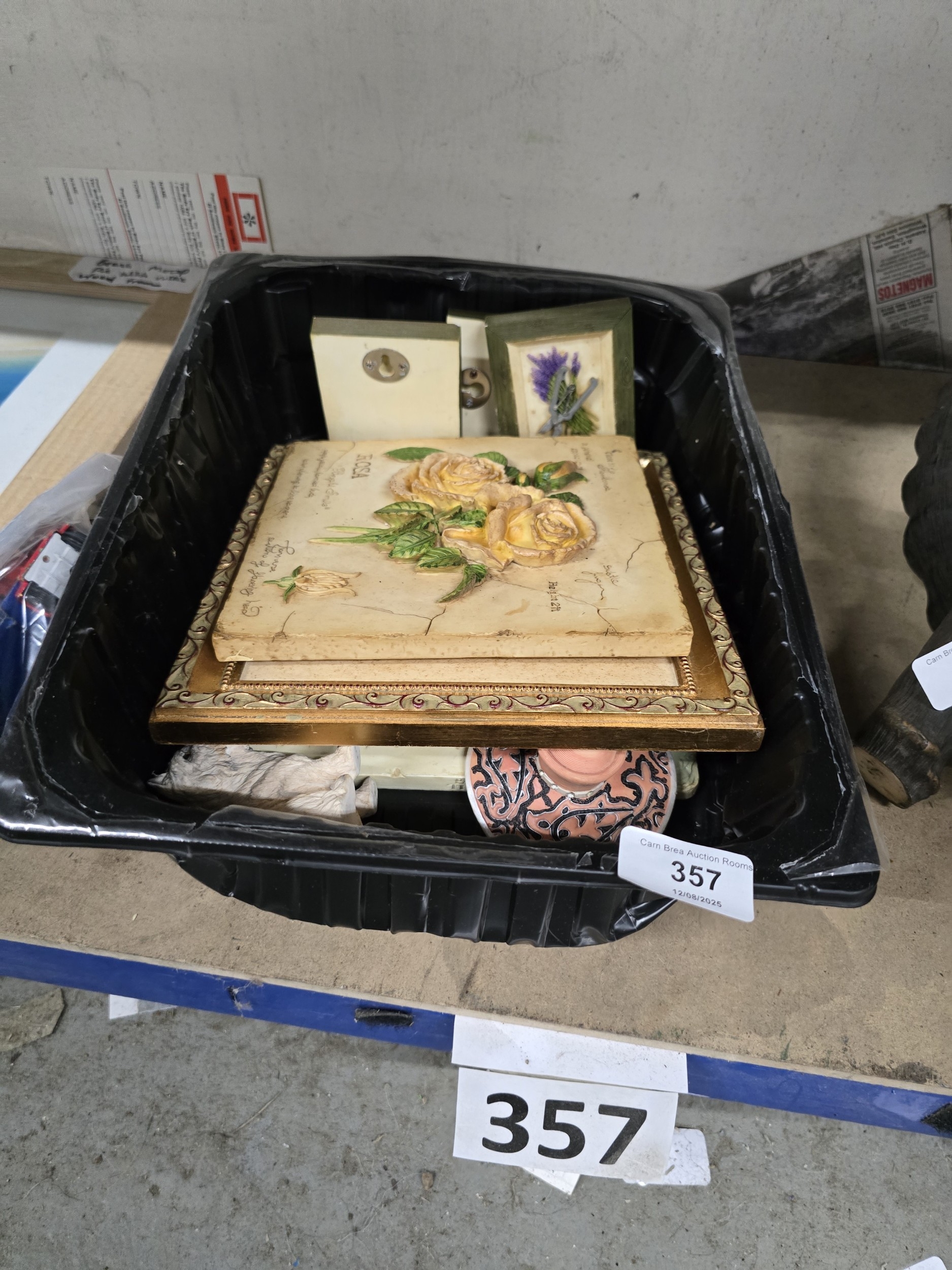 A Collection of Vintage Decorative Items, including a French Country Style 3D Bas-Relief Rose Plaque