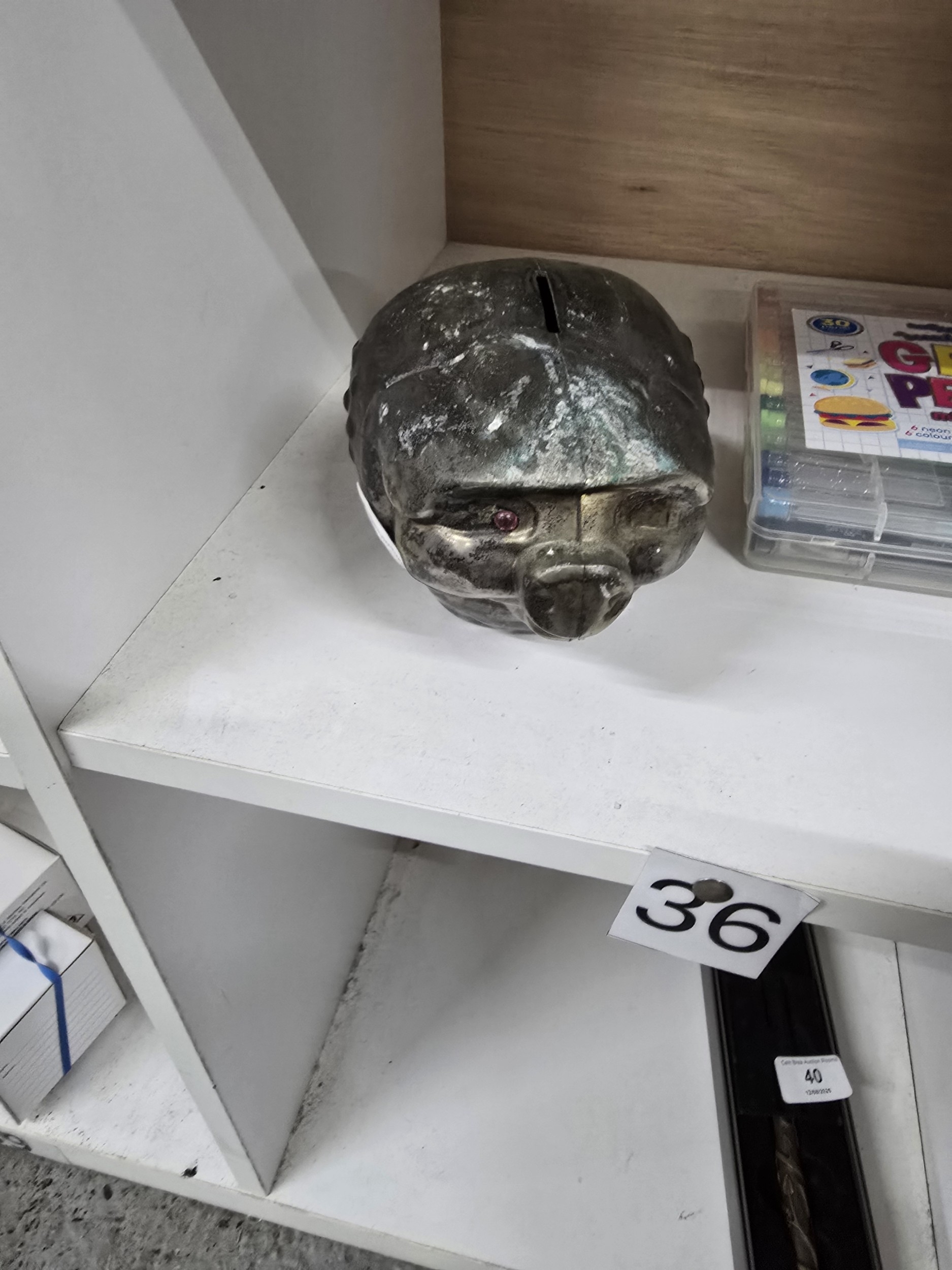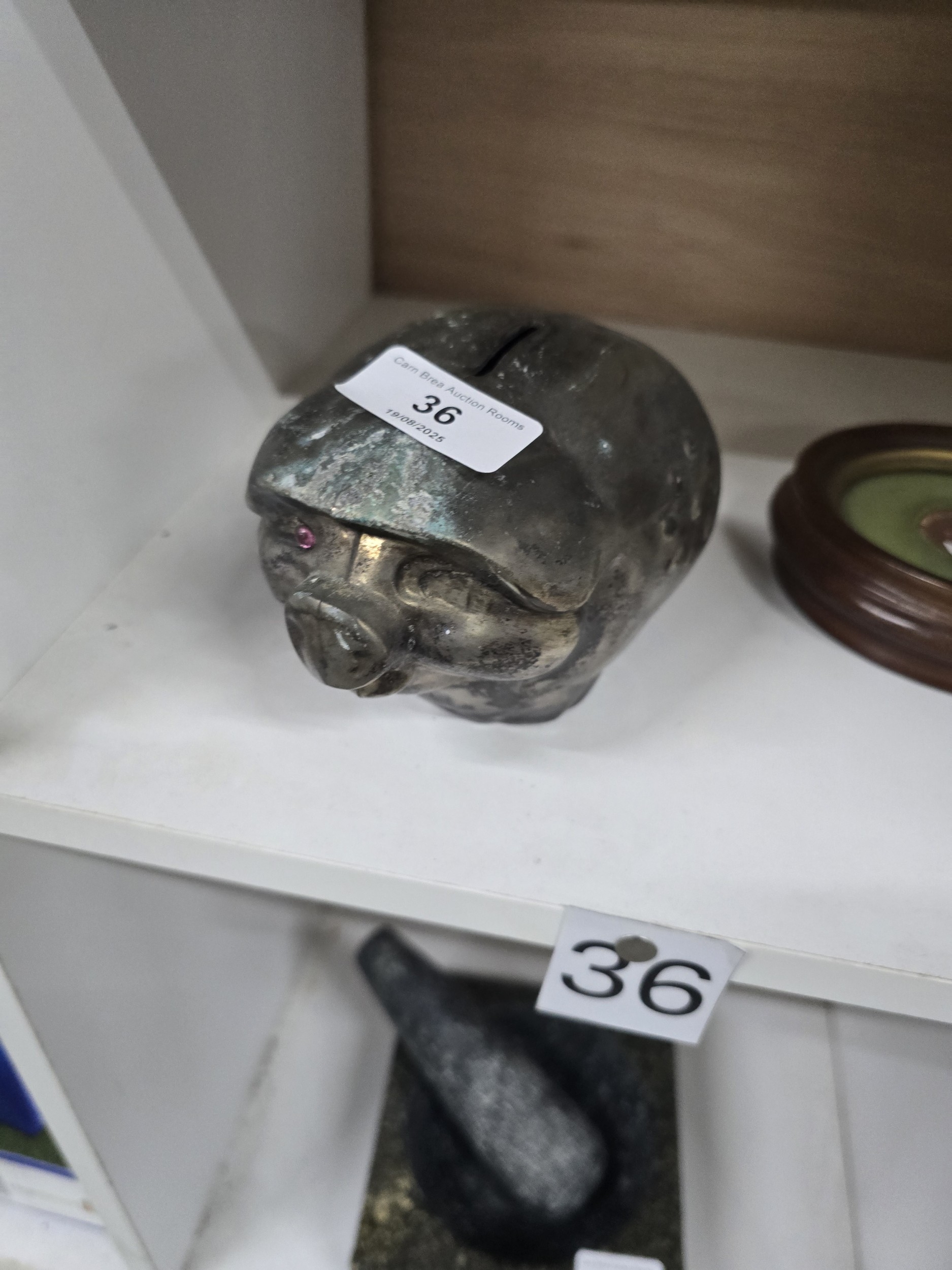 A Vintage Stylized Metal Pig’s Head Money Box