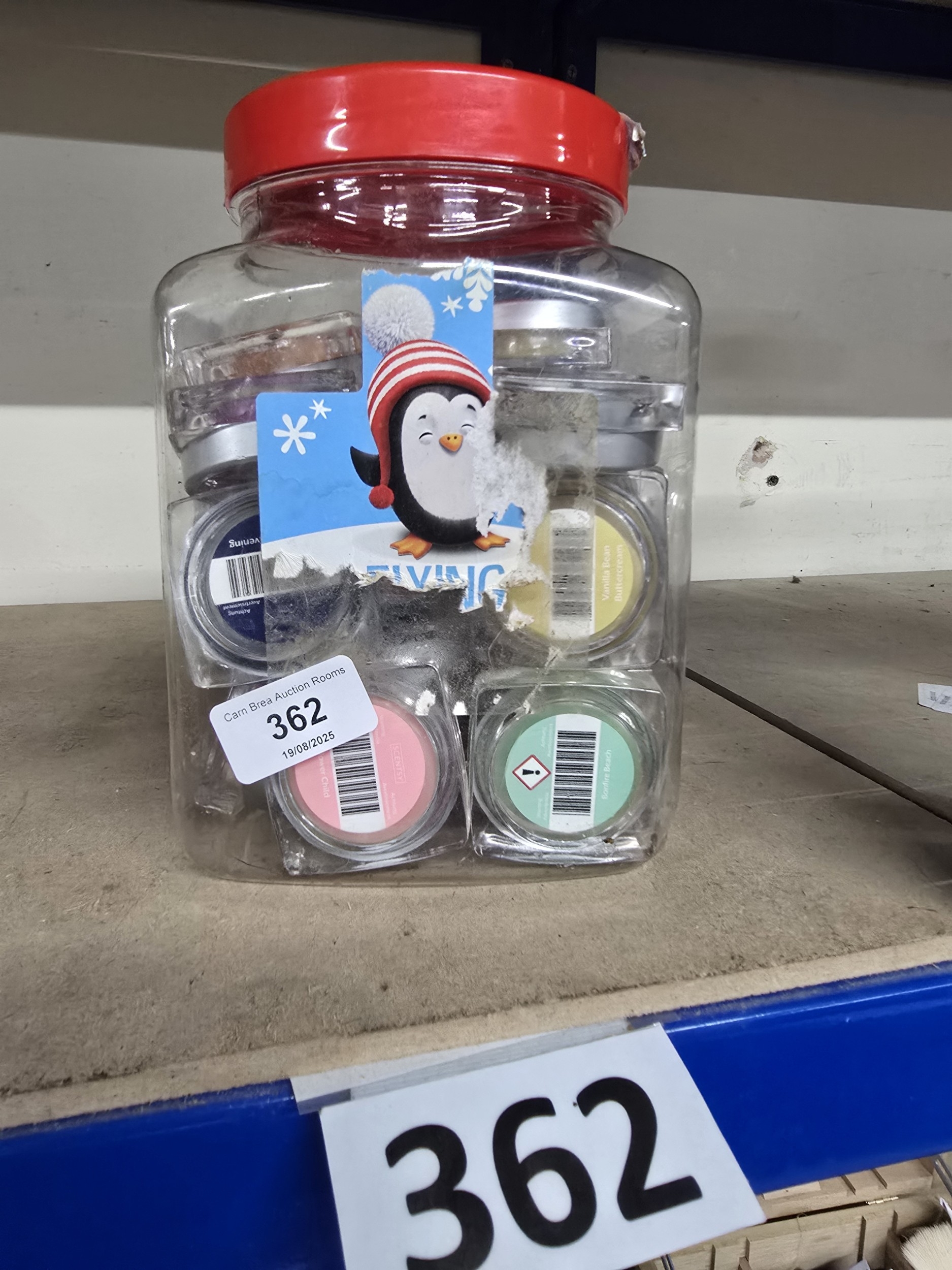 A Collection of Scentsy Scented Wax Melts in a Plastic Storage Jar