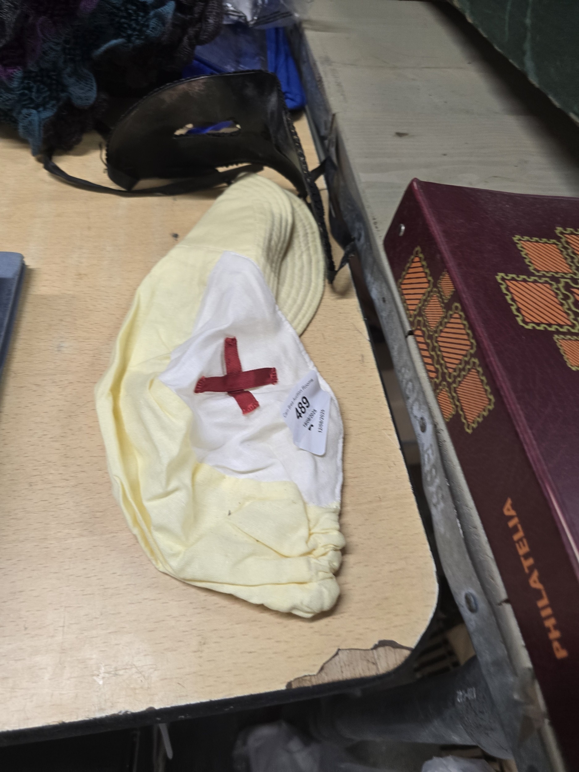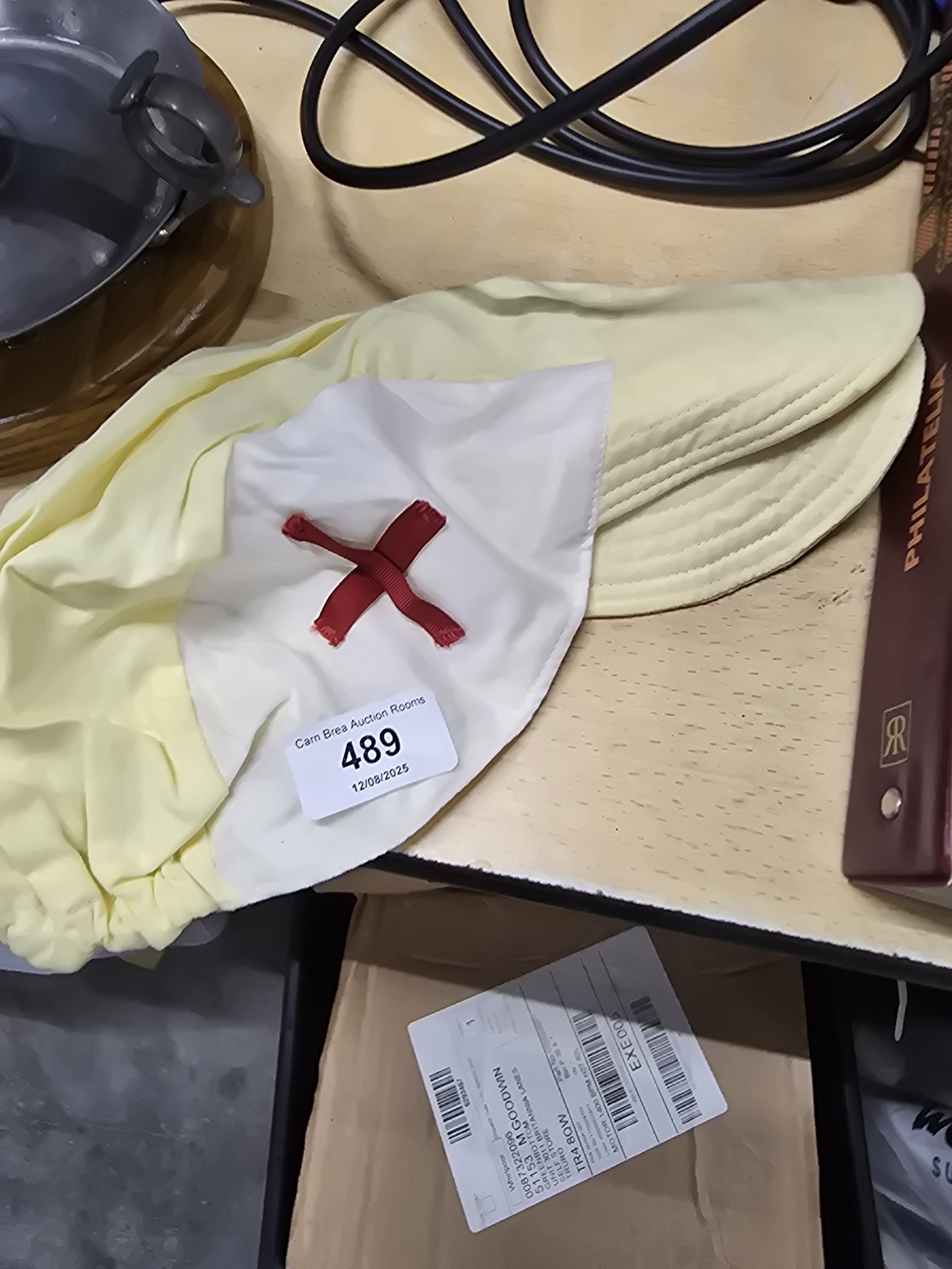 Vintage-Style Yellow Fabric Nurse’s Cap with Red Cross