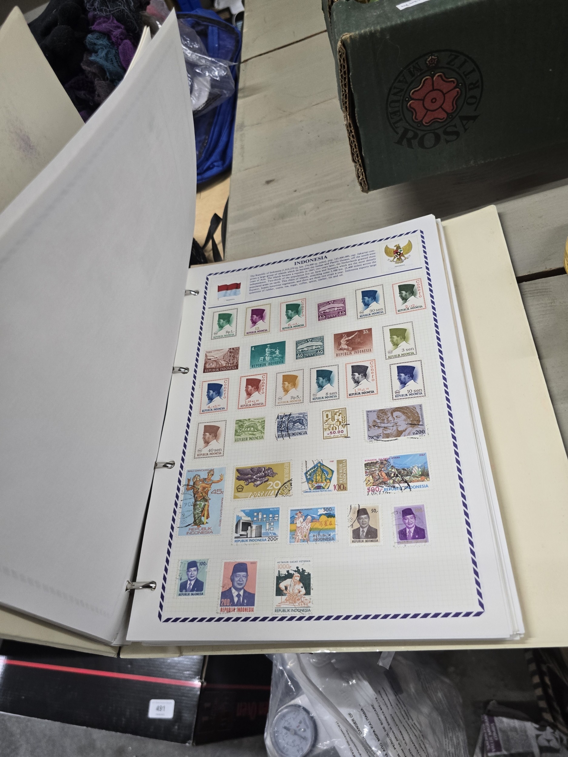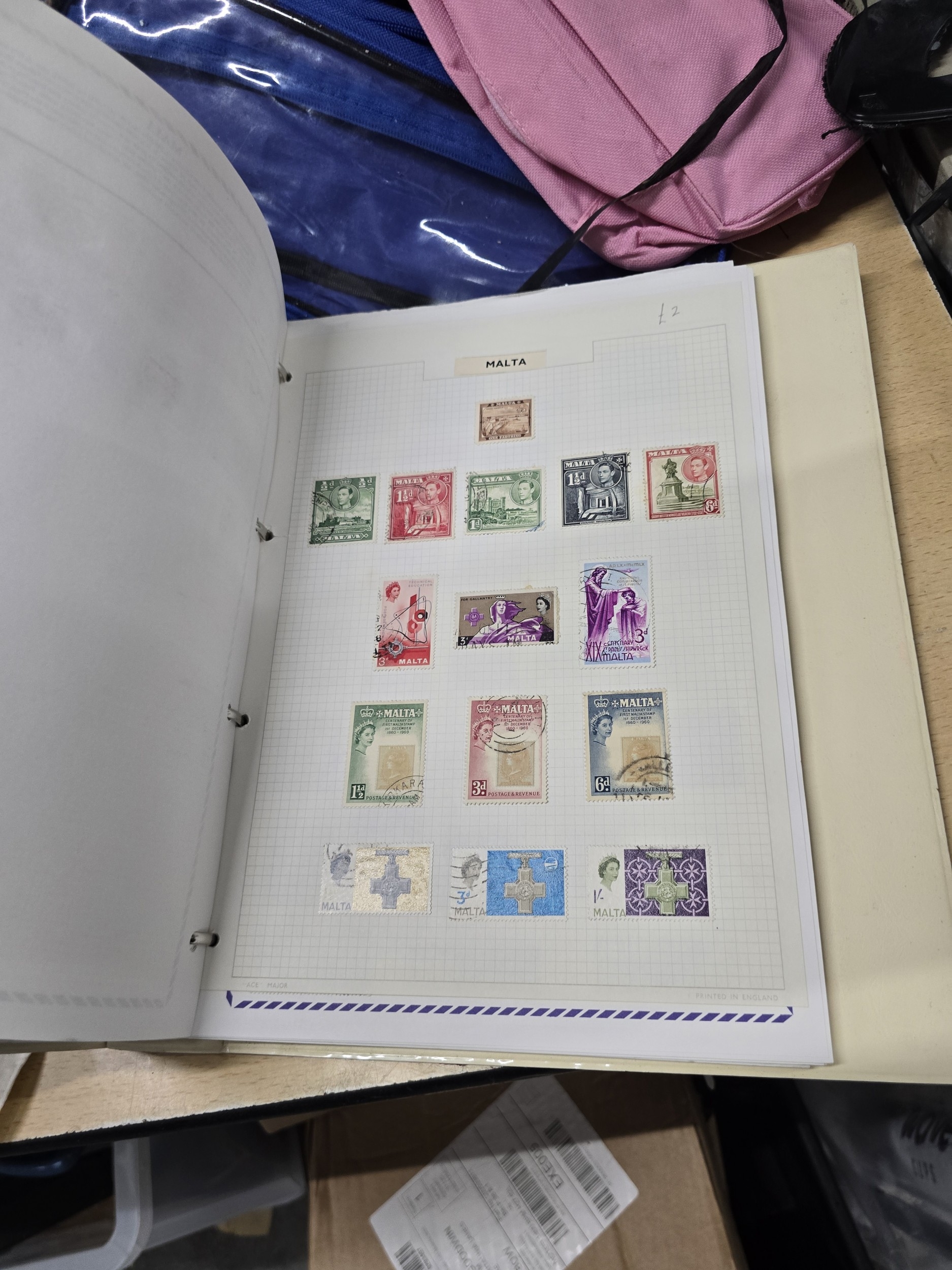 A Collection of Malta and Indonesia Postage Stamps in a Ring-Bound Album, Mid-20th Century