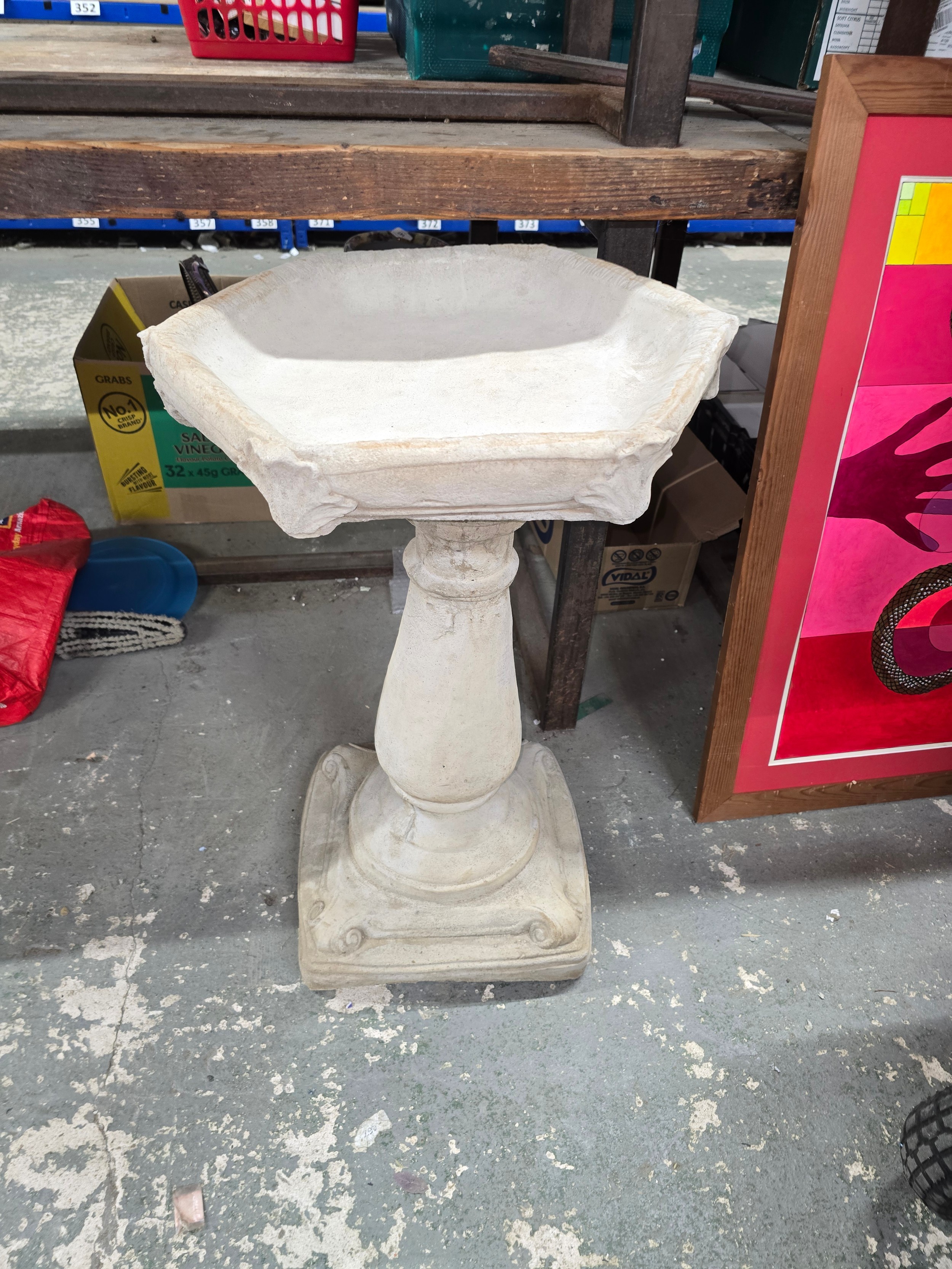 Cast Stone Hexagonal Bird Bath on Baluster Pedestal