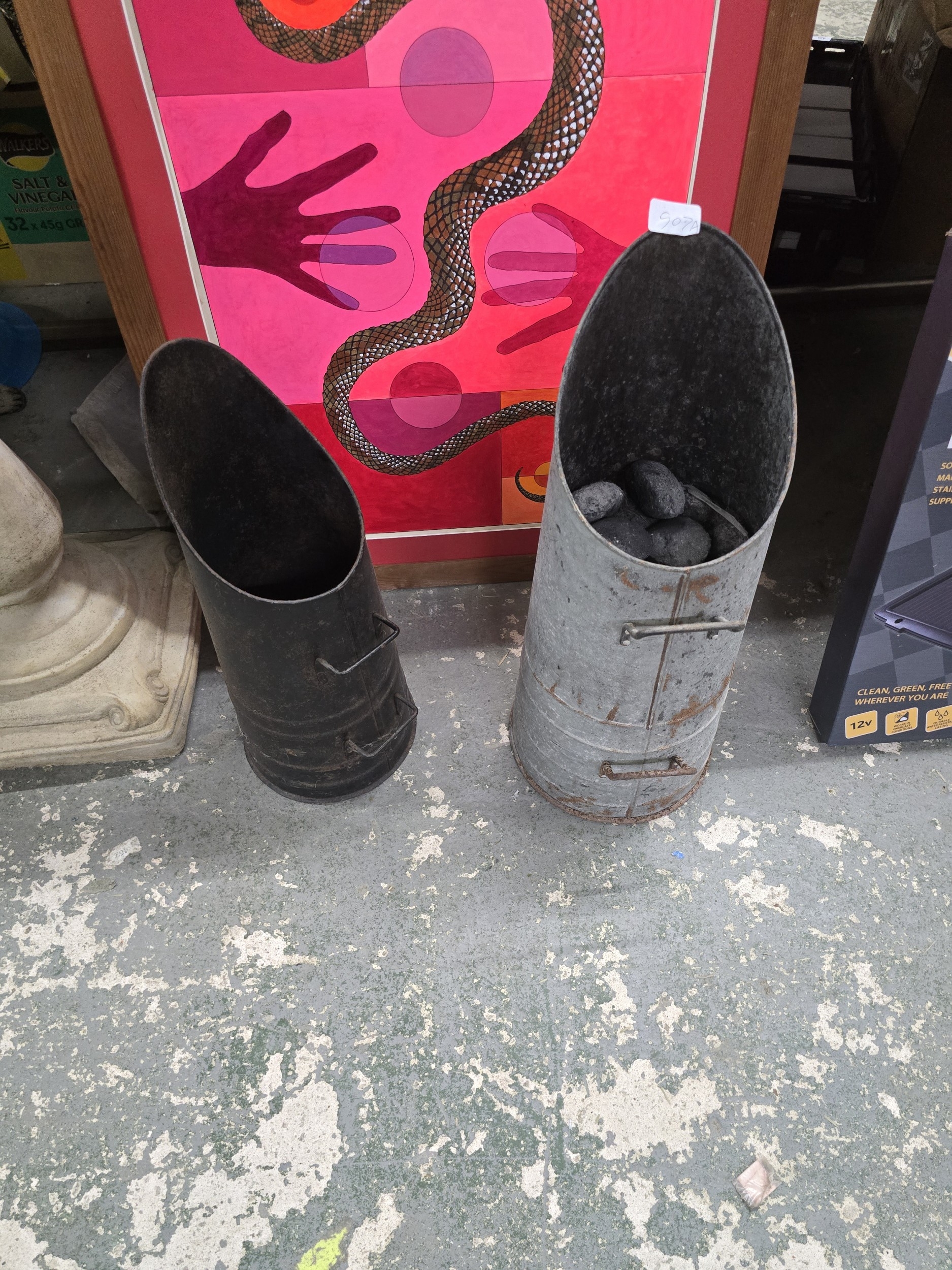 A Group of Metal Coal Scuttles/Hods