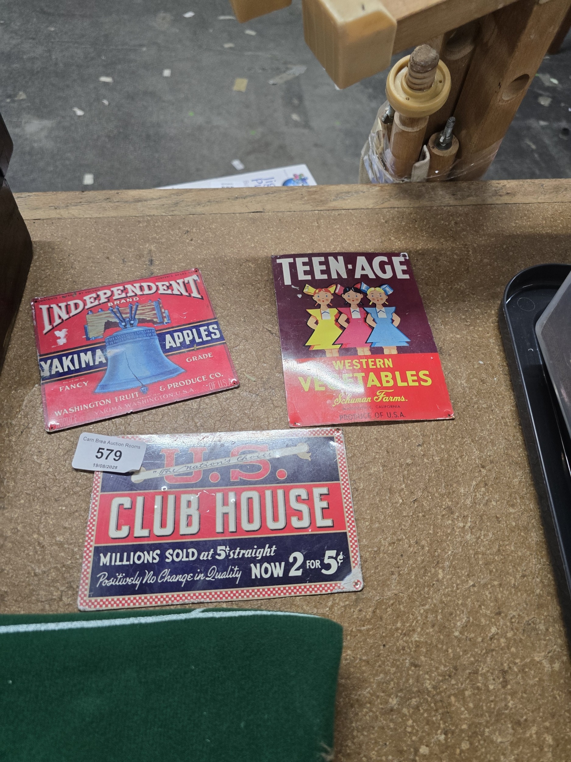 A Collection of Vintage Advertising Signs, including Fruit and Produce Crate Label Designs