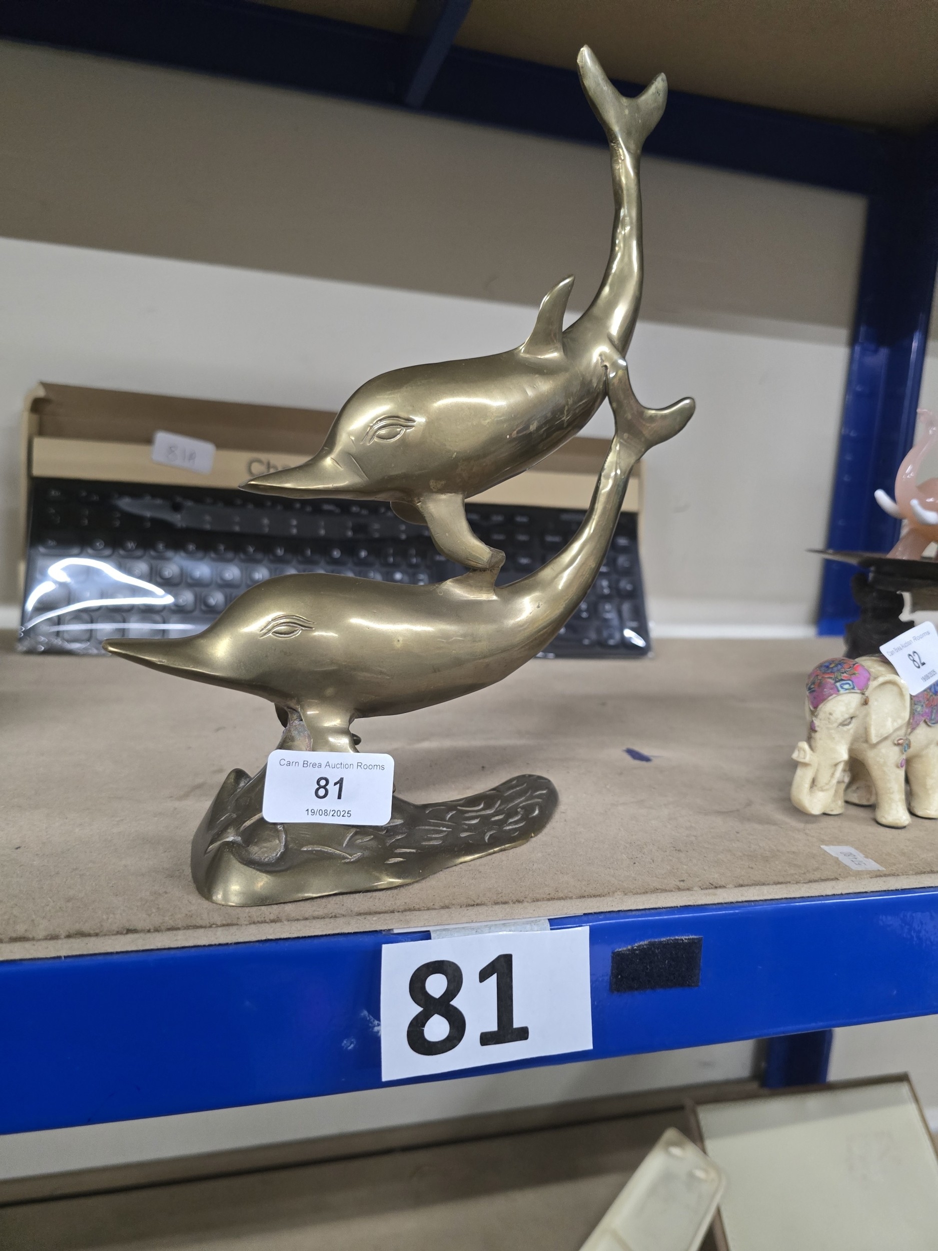 Vintage Brass Double Dolphin Sculpture