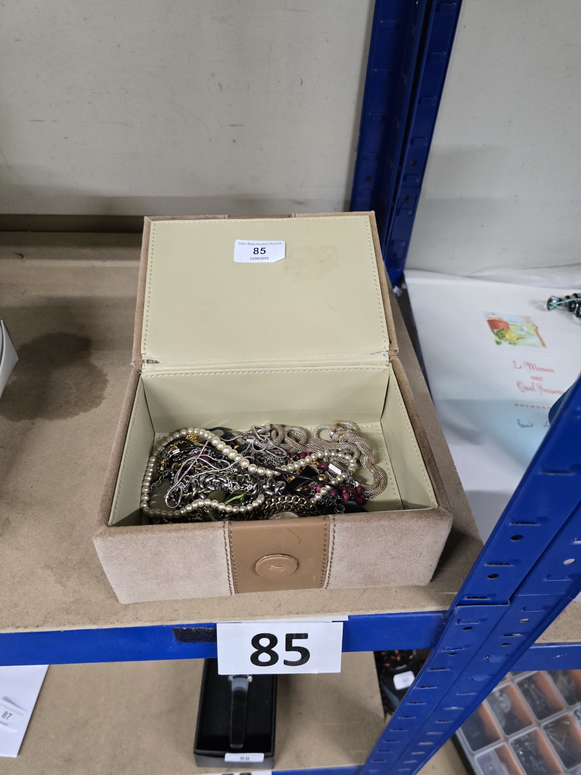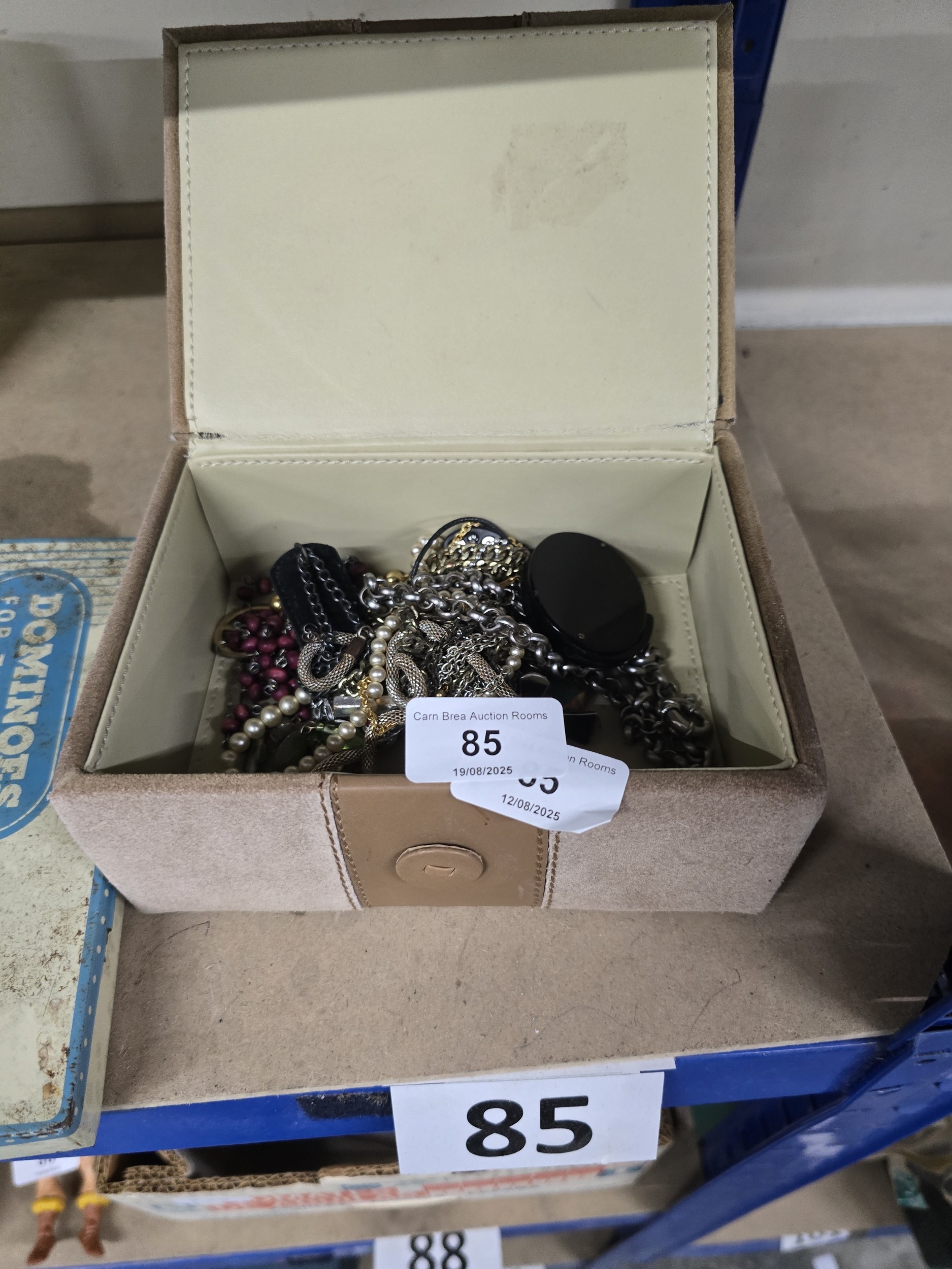 A Ralph Lauren Brooke Suede Jewellery Box with a Collection of Costume Jewellery