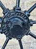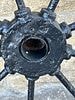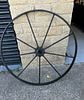 A large, robust spoked wheel crafted from cast iron, featuring an industrial or agricultural aesthetic. The design incorporates a decorative central hub from which twelve thick, round spokes radiate outwards to a solid, circular rim. The central hub is cast with the text ‘RICHMOND’ above ‘FOUNDRY’. The item is finished with a uniform matte black paint.