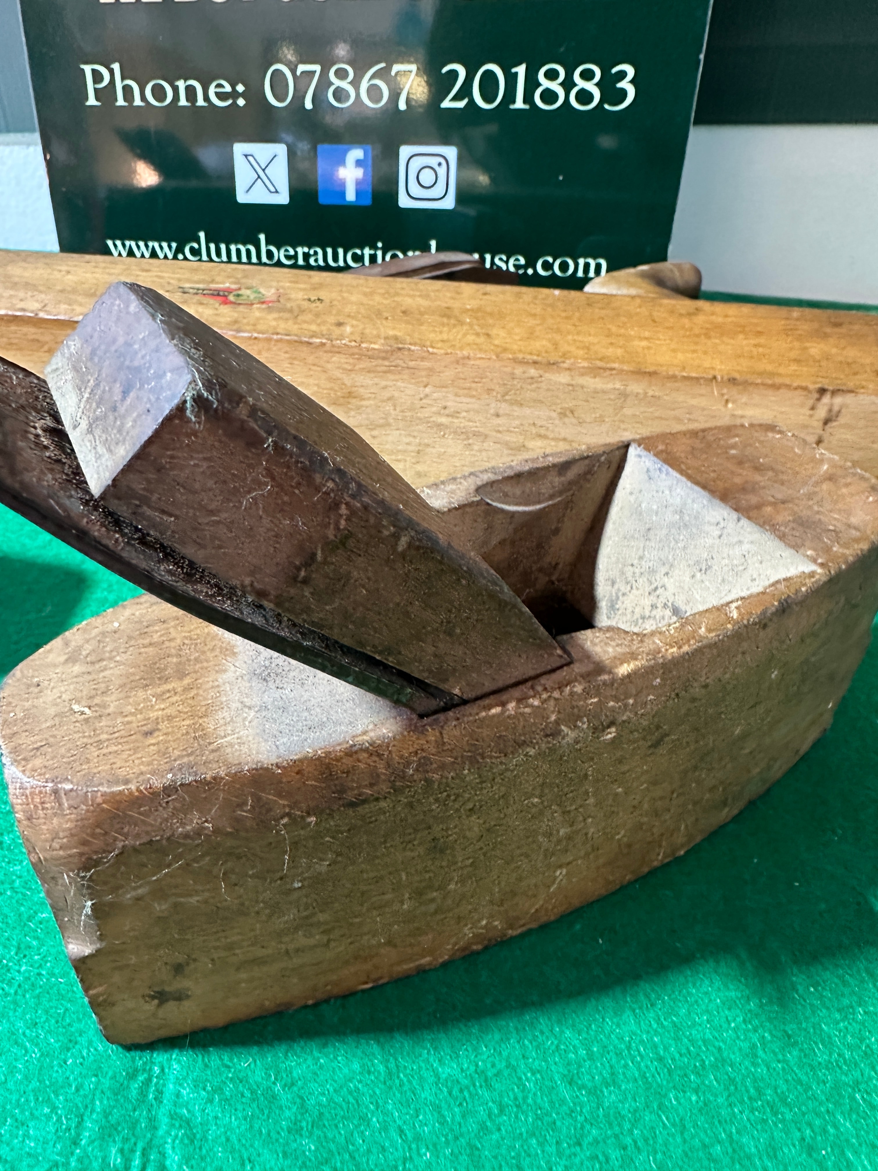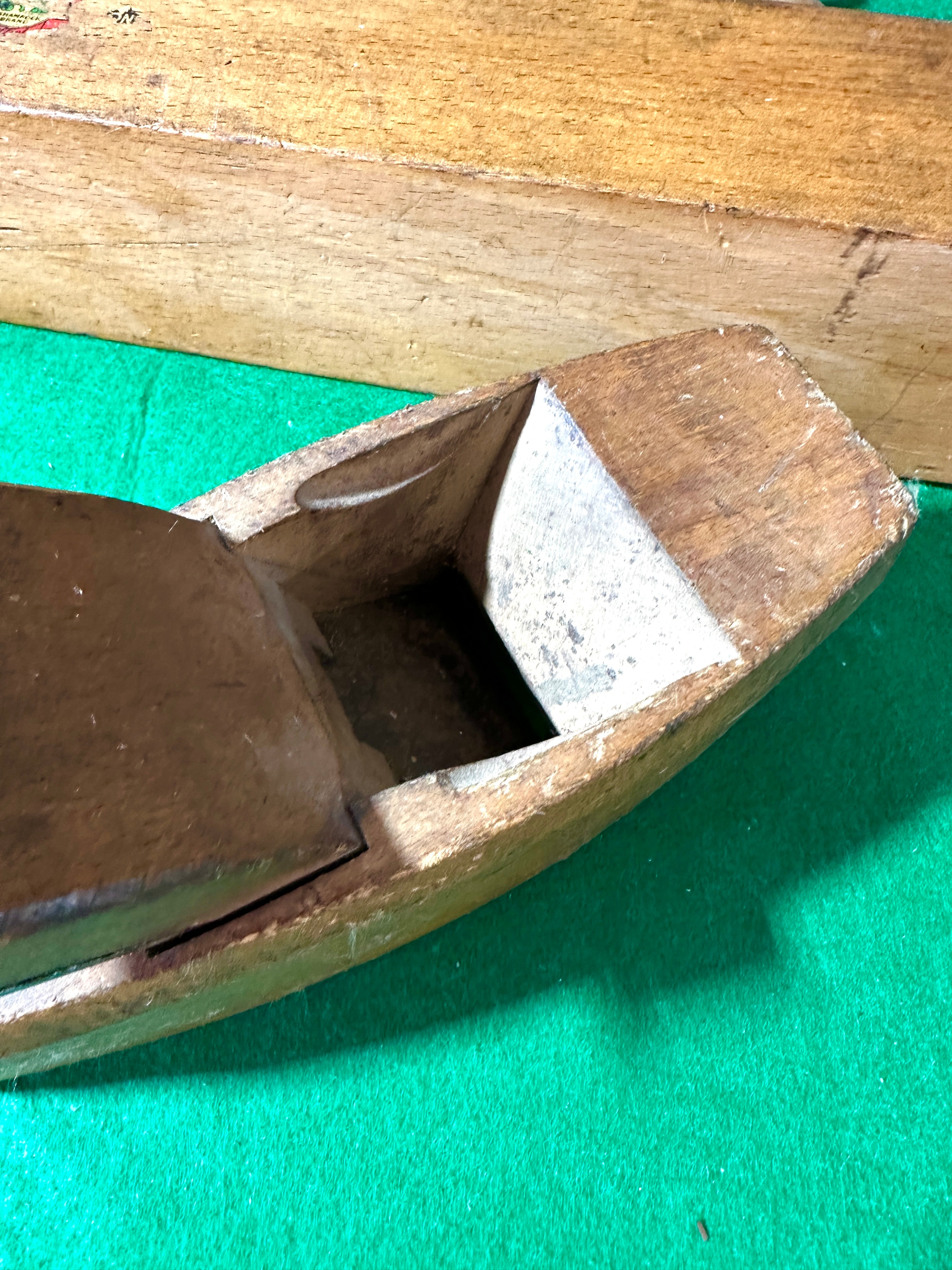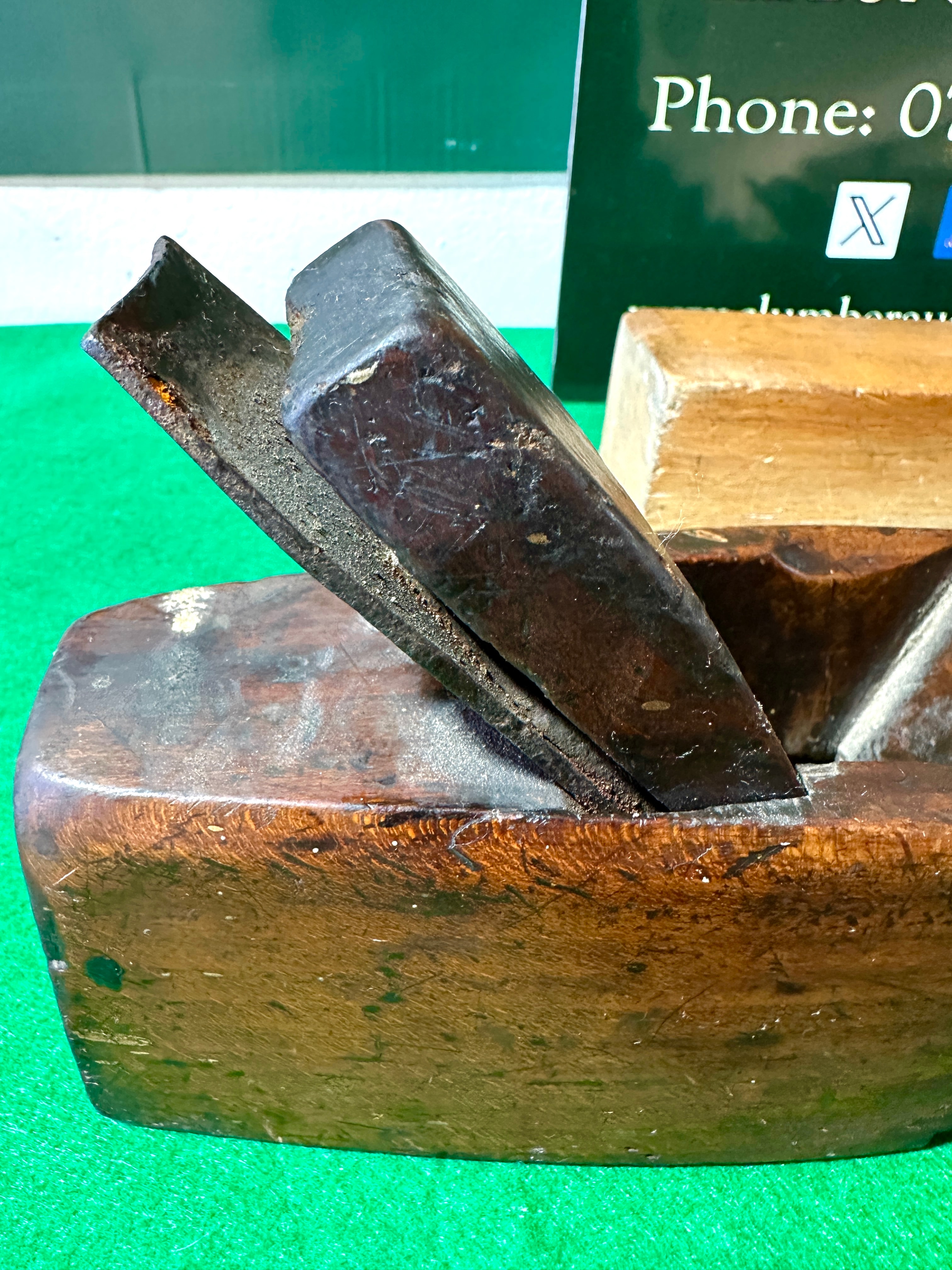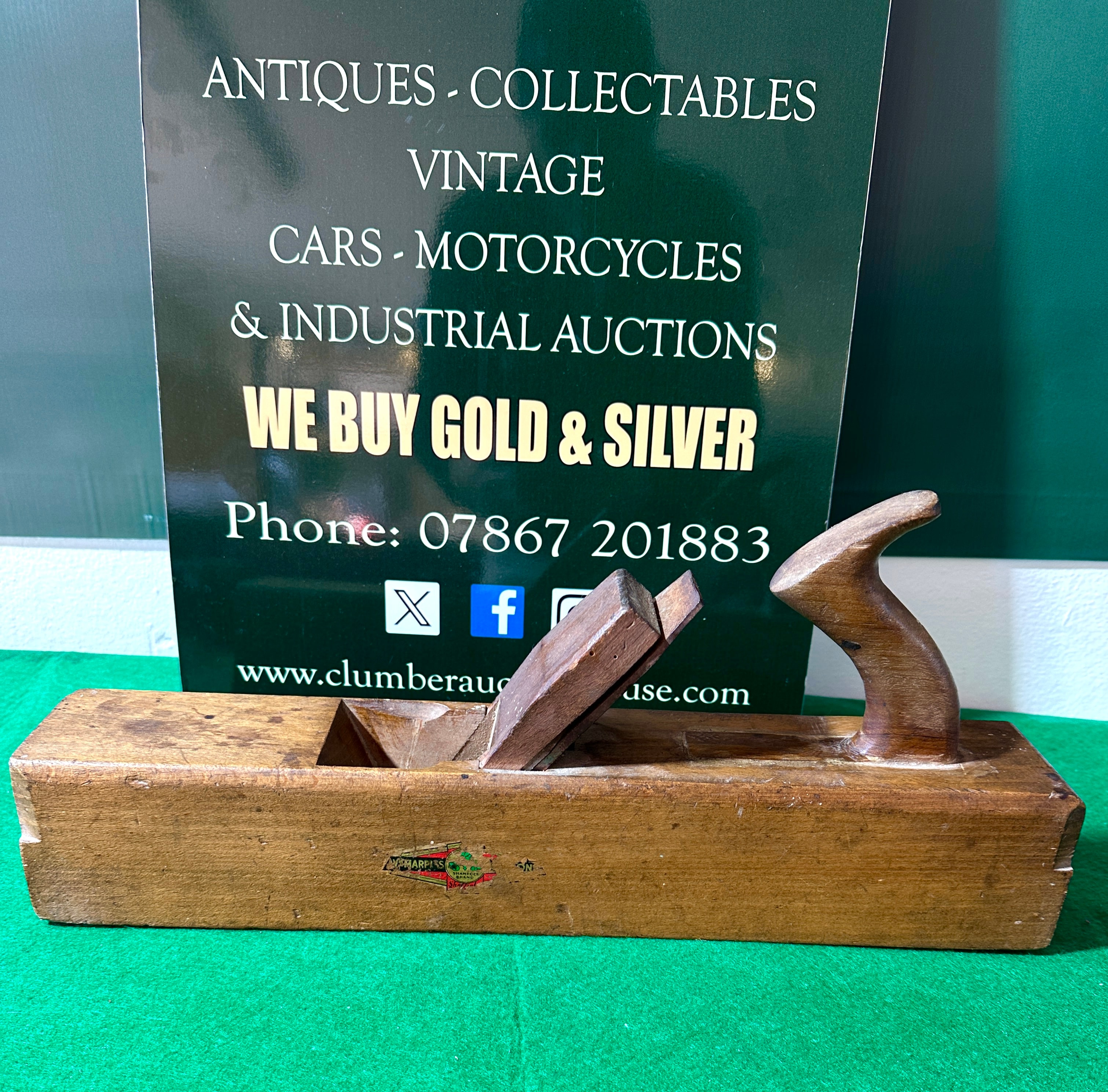 A collection of three antique or vintage wooden-bodied hand planes. This group includes two ‘coffin’ style block planes, consistent with examples attributed to Sargent & Co US in market research. The third, larger plane is a bench-style plane with a distinct shaped handle. It bears a partially legible label on its side, appearing to read “MARPles,” suggesting a possible manufacturer. Each tool is crafted from hardwood, incorporating metal irons secured by wooden wedges.