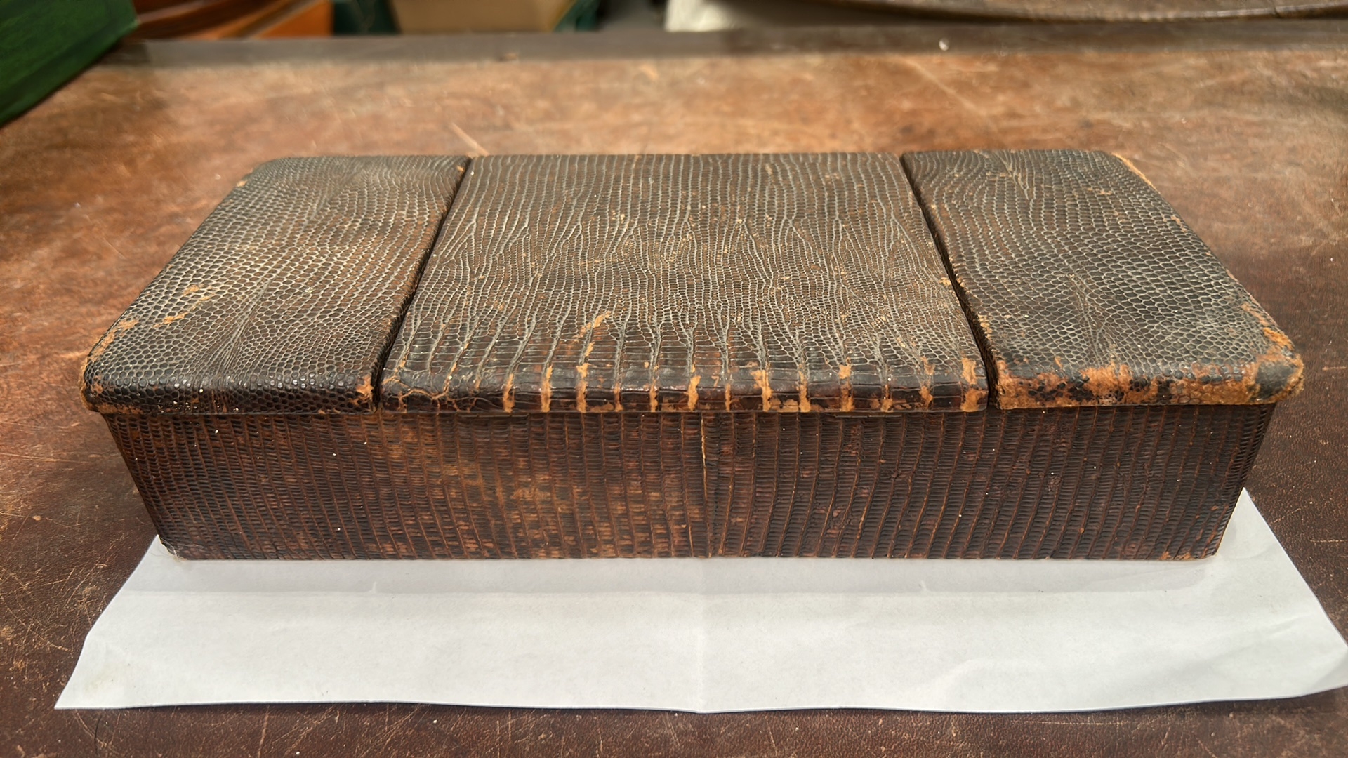 Late 19th Early 20th Century Faux Alligator Skin Tri-Fold Box
