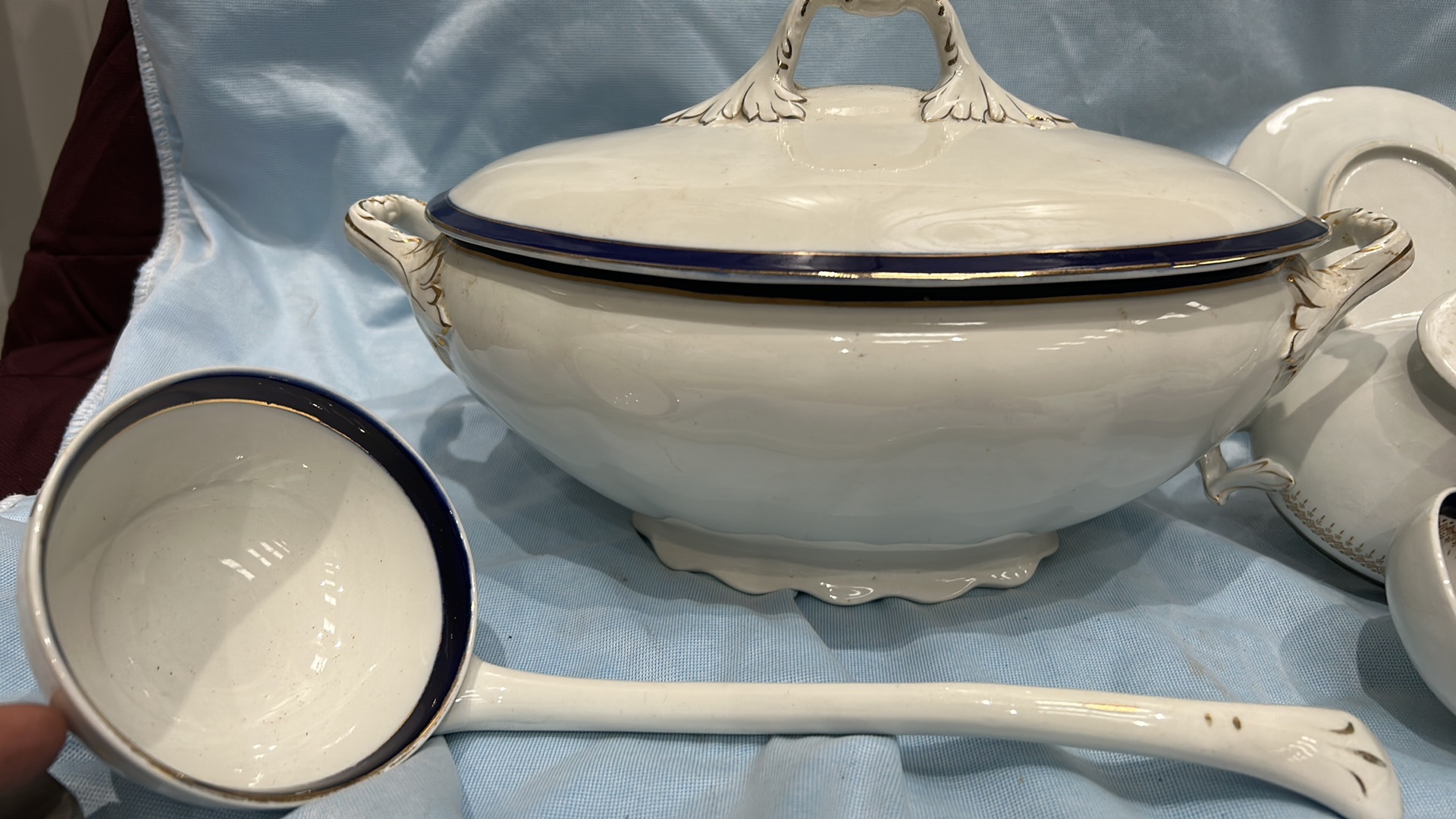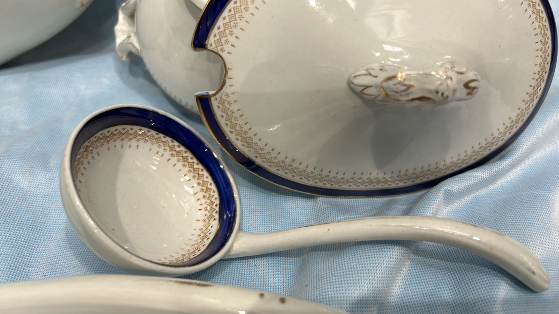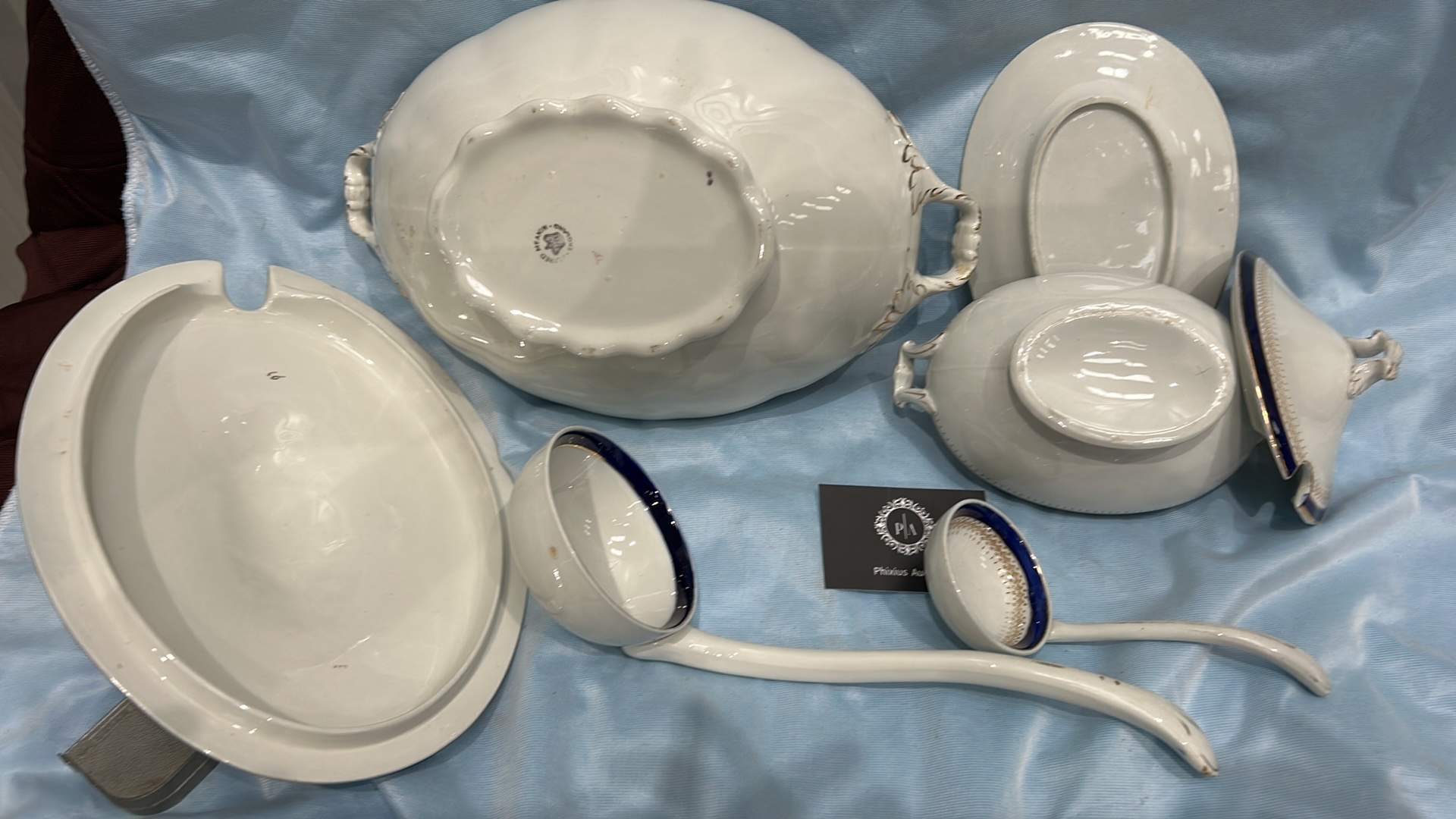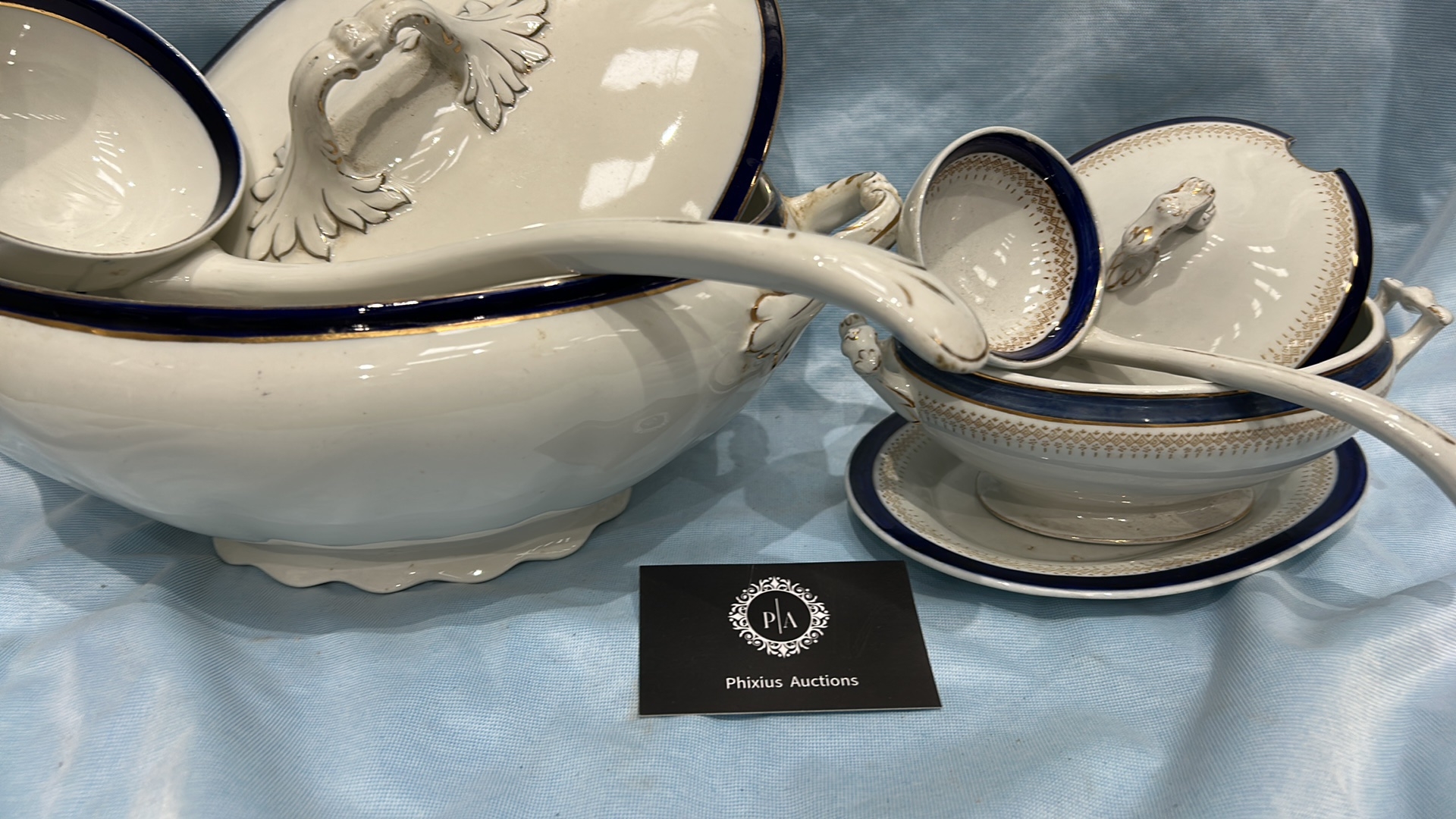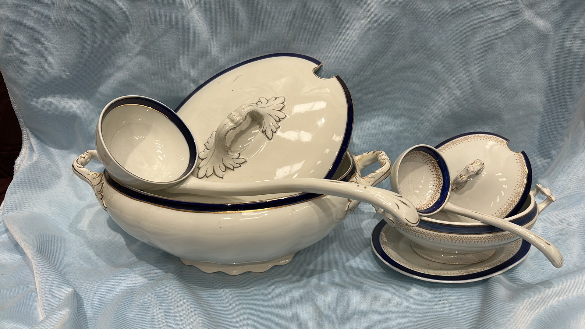 A Collection of 7 Alfred Meakin Bleu De Roi Soup Tureen Set