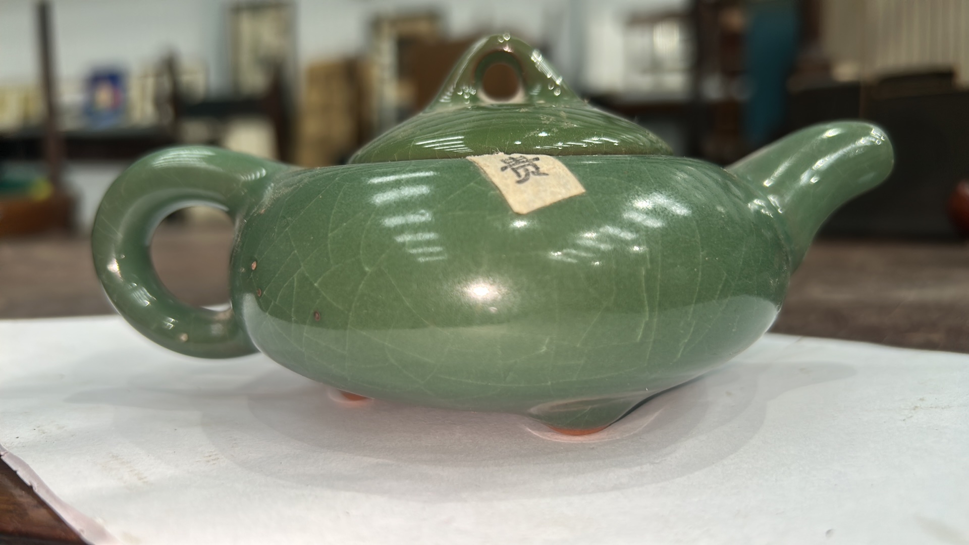 Chinese Green Ice Crackle Glaze Miniature Teapot