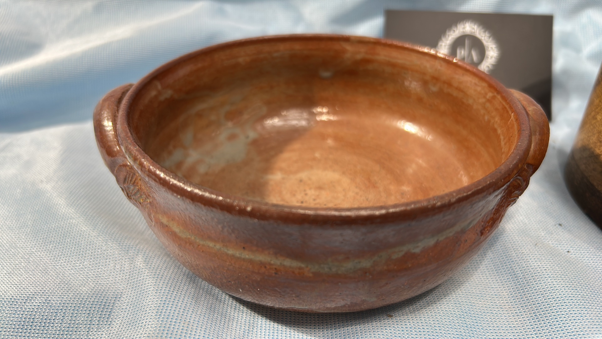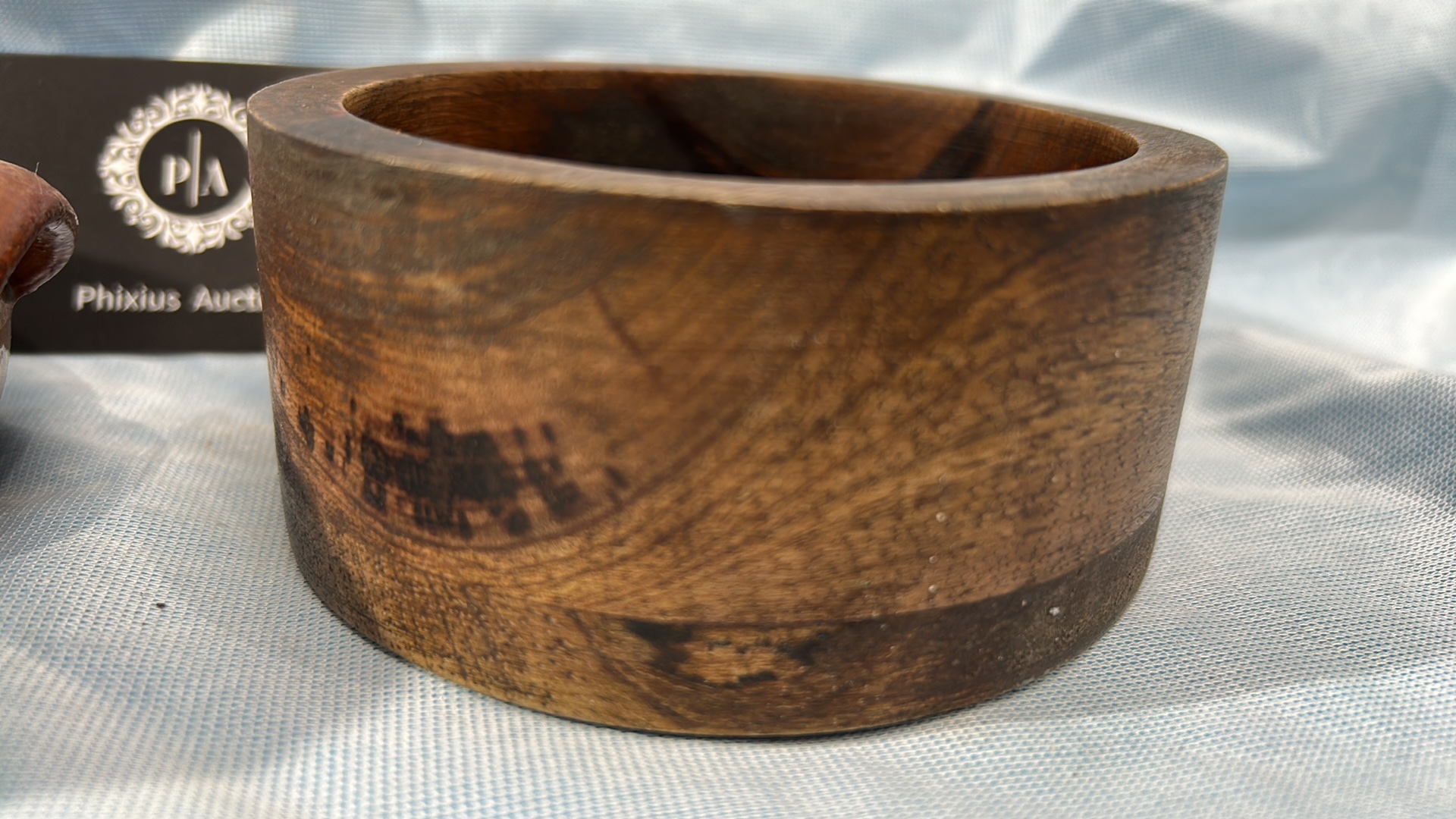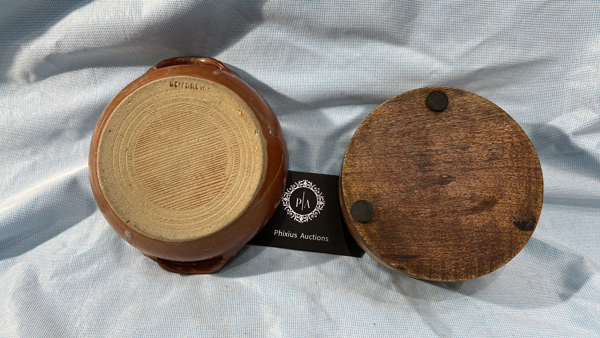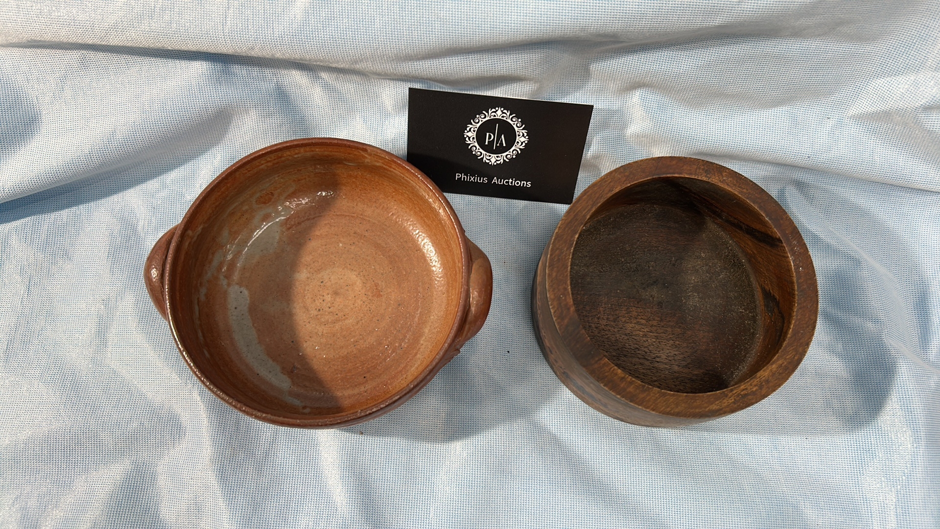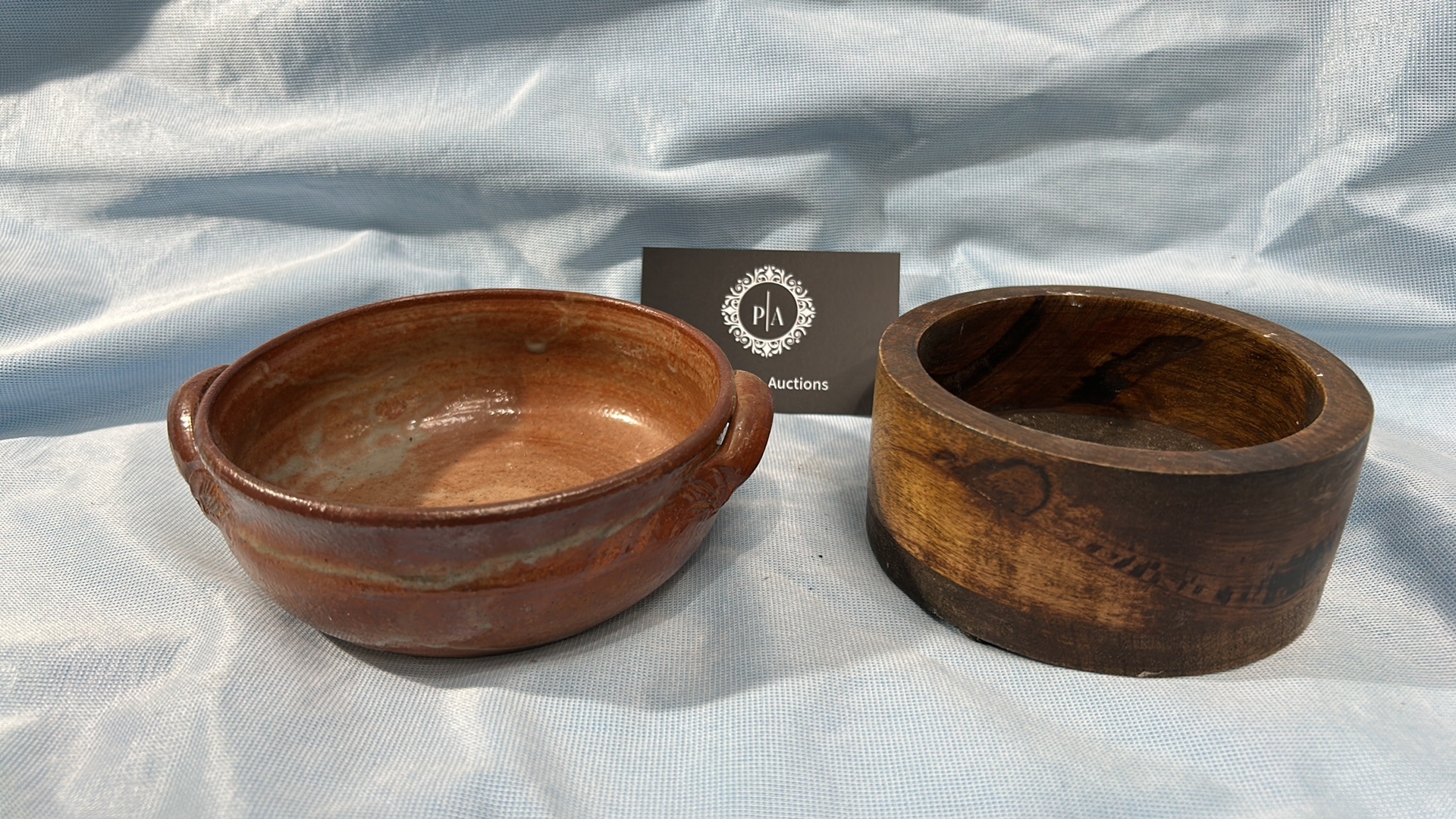 A Pair of French Glazed Earthenware and Wooden Bowls