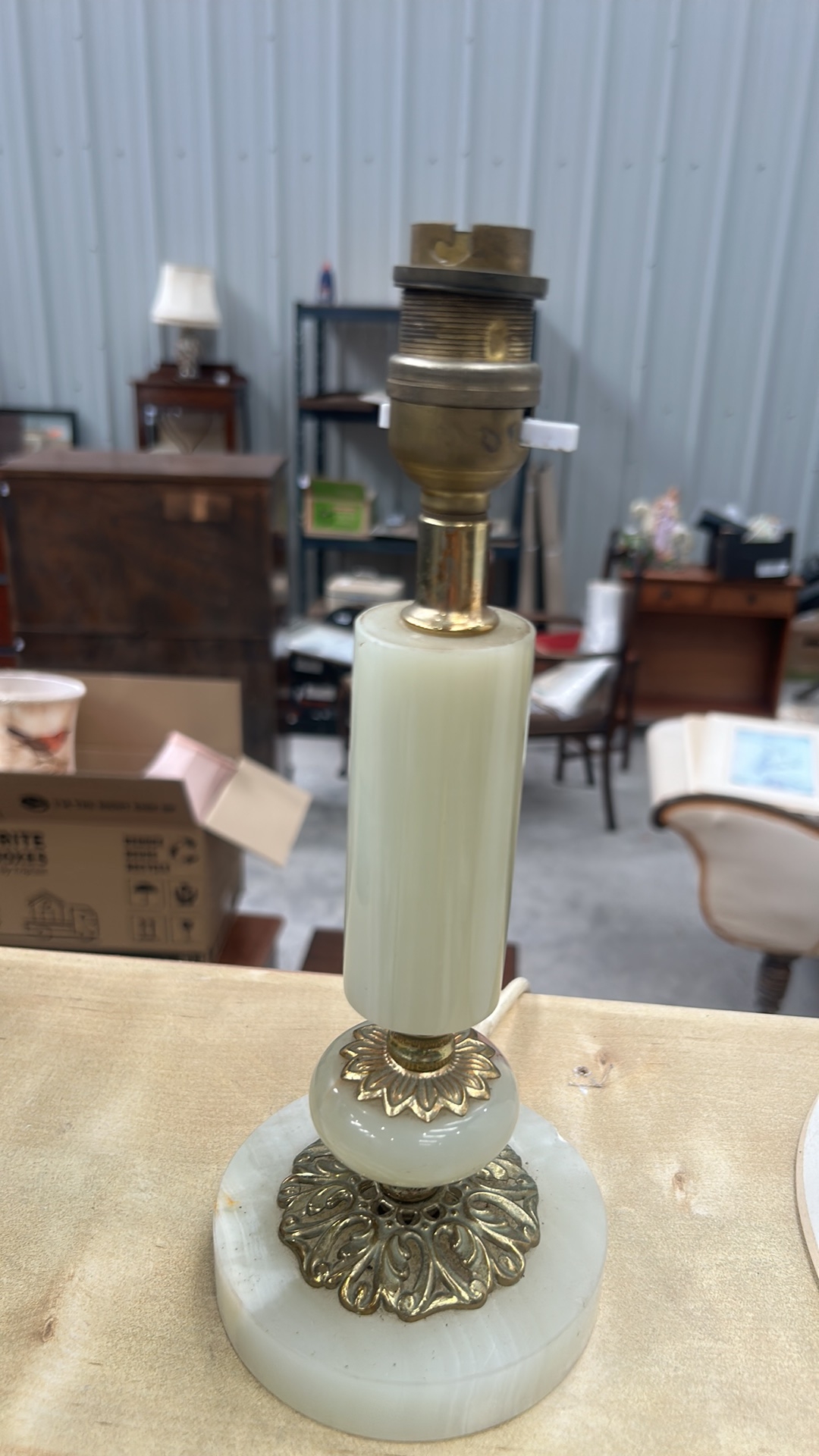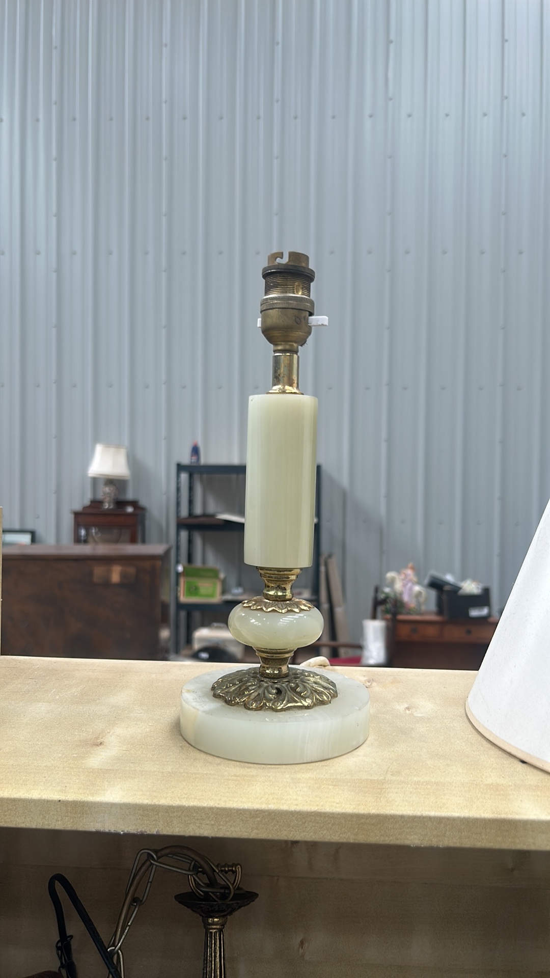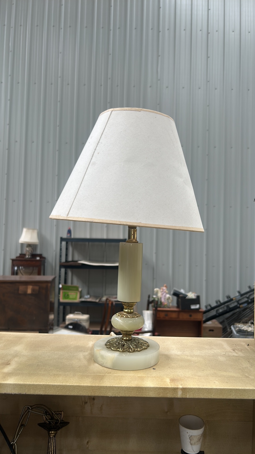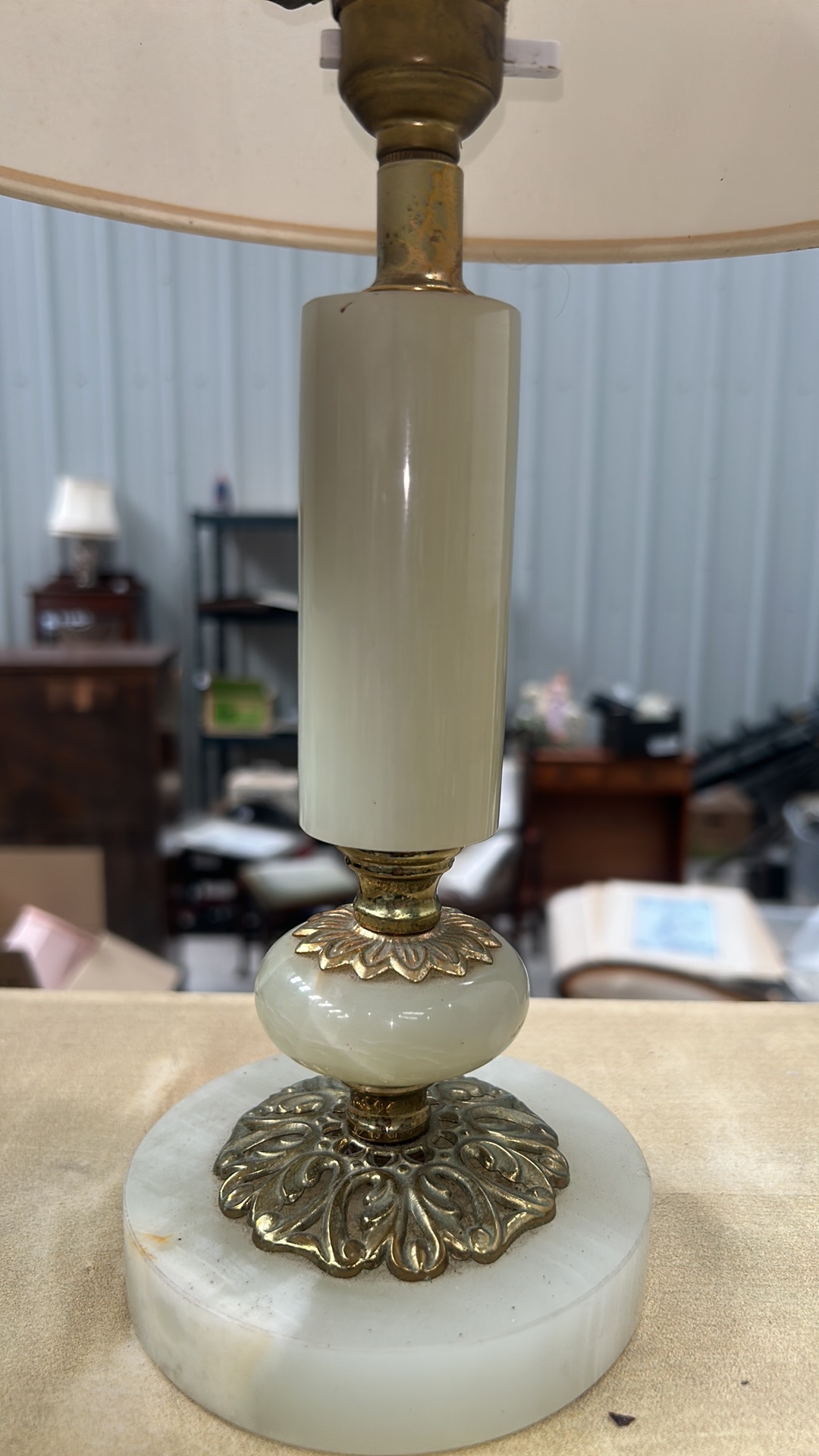 Vintage Mid-Century Italian Onyx and Brass Table Lamp
