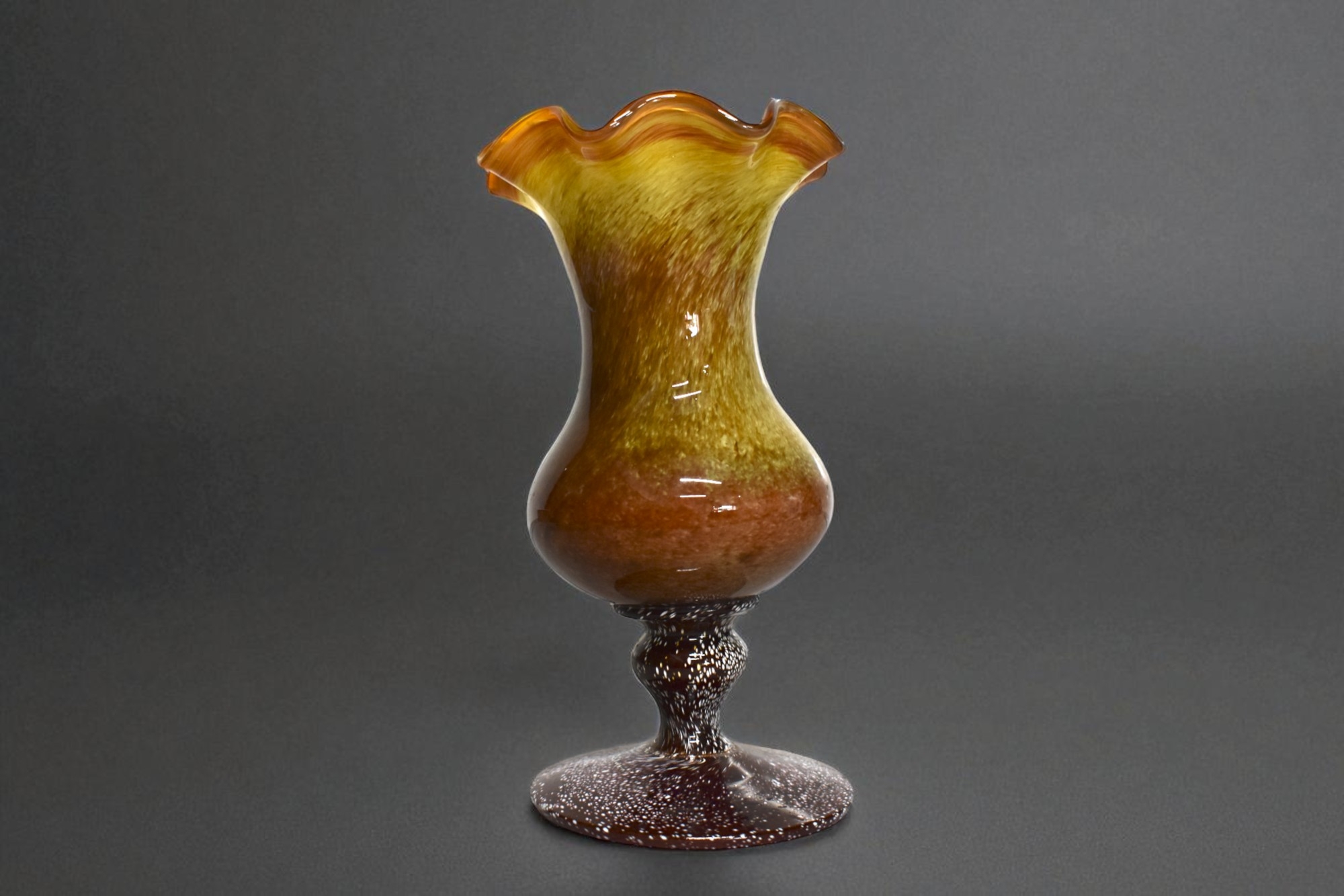 Mid-Century Amber Art Glass Pedestal Vase