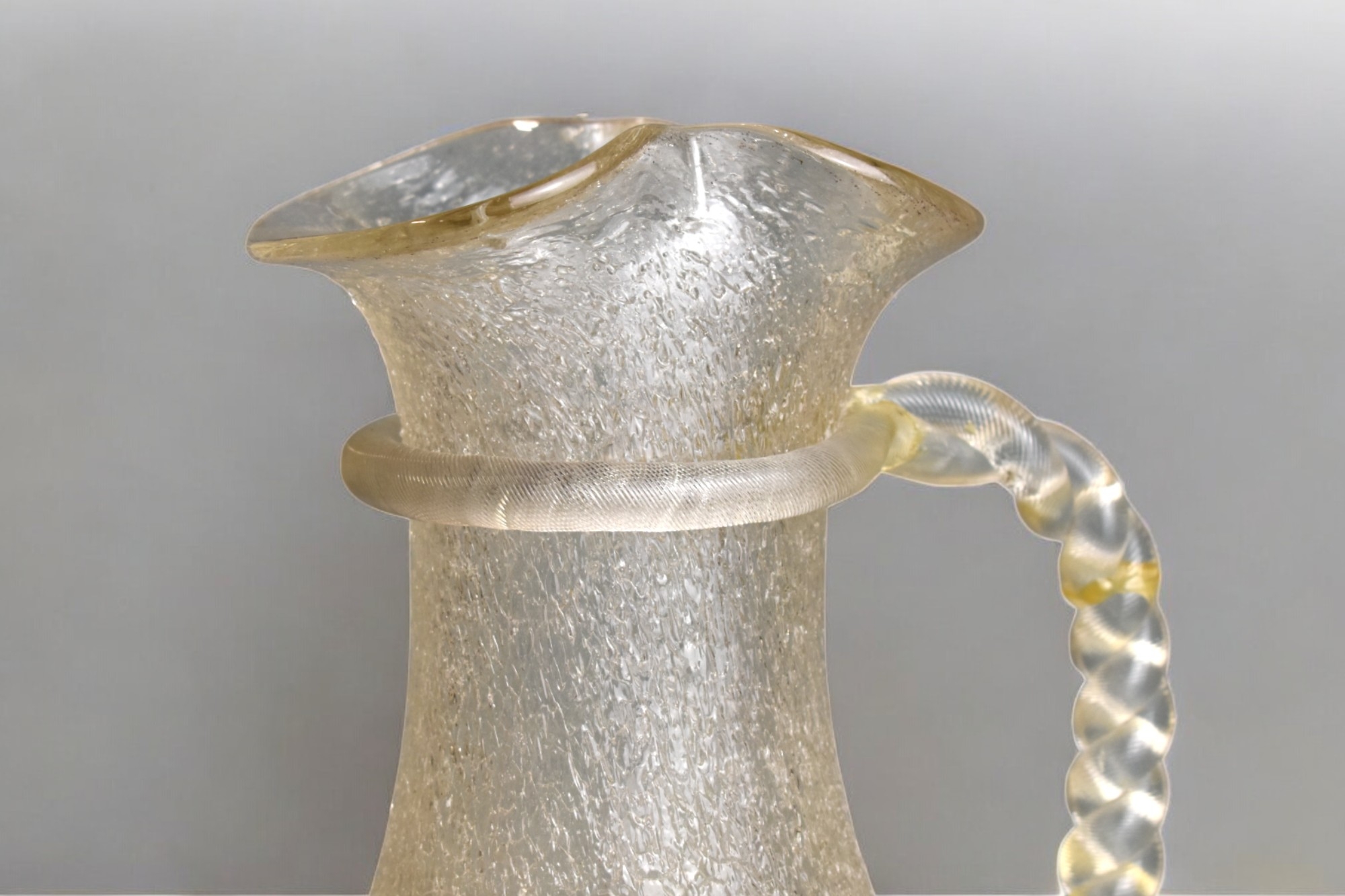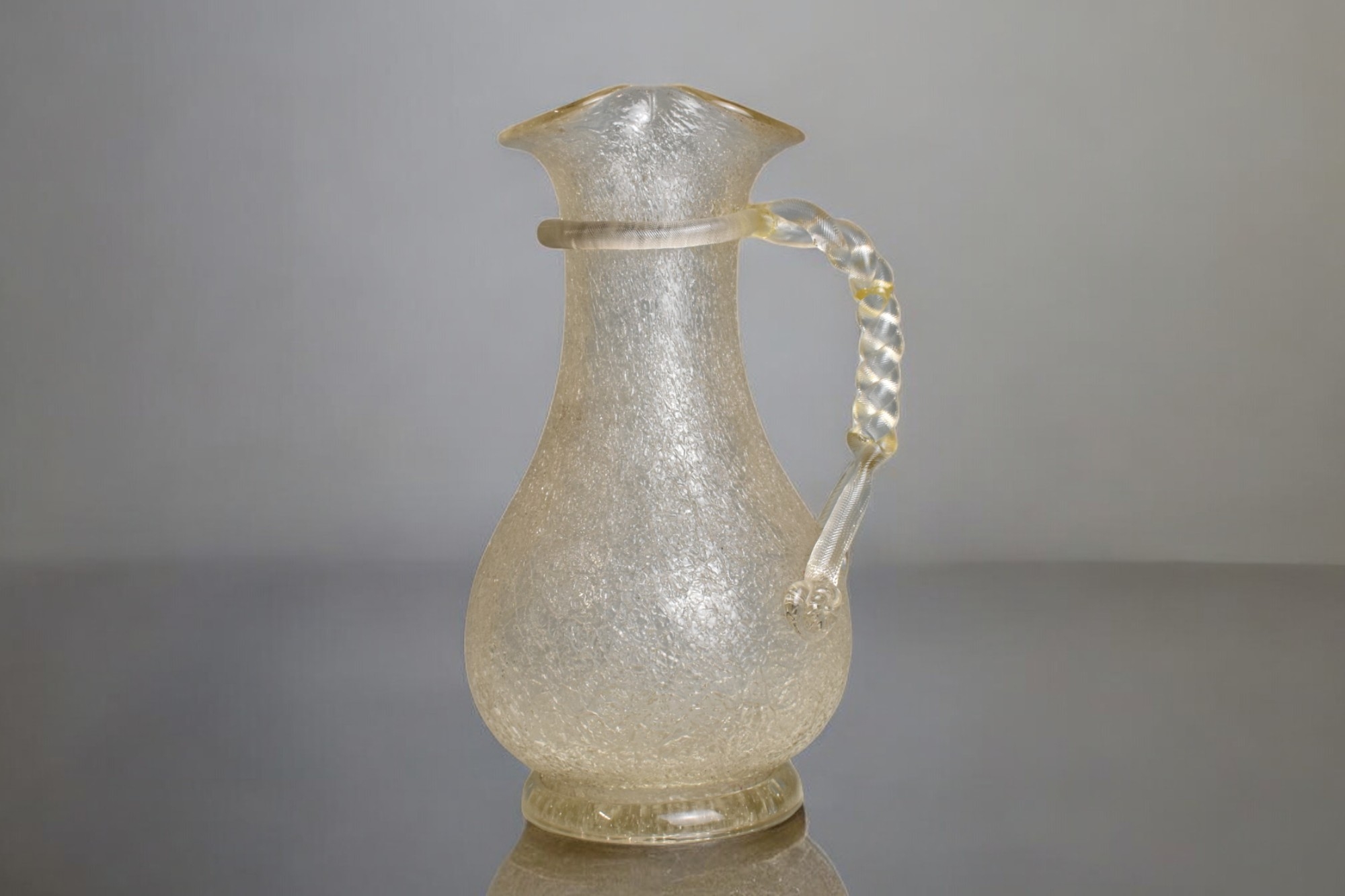 A Sandwich Glass Co Victorian Overshot Crackle Glass Pitcher