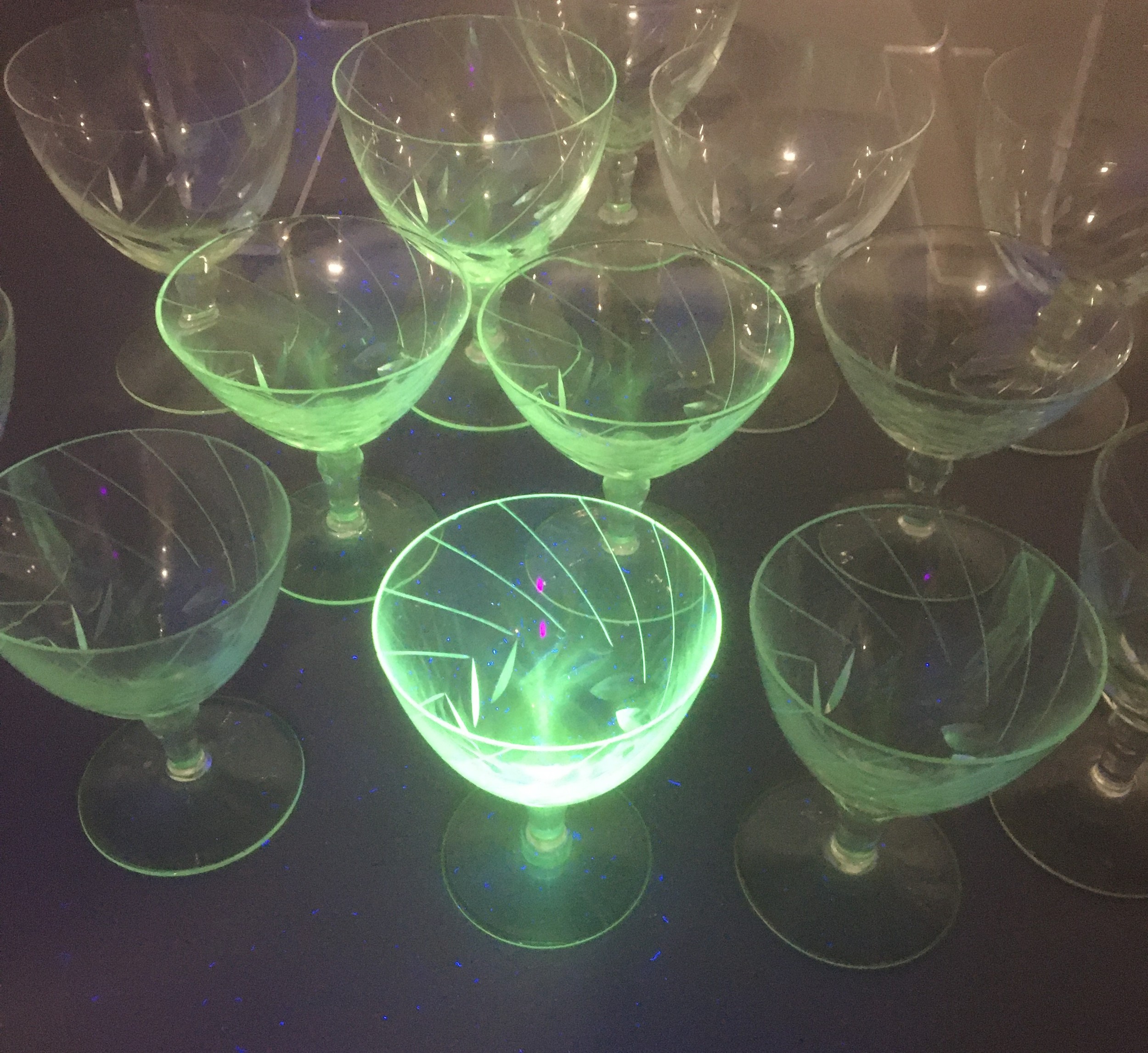 A Collection of 20 Mid-20th Century Uranium Glass Cocktail Coupe Glasses