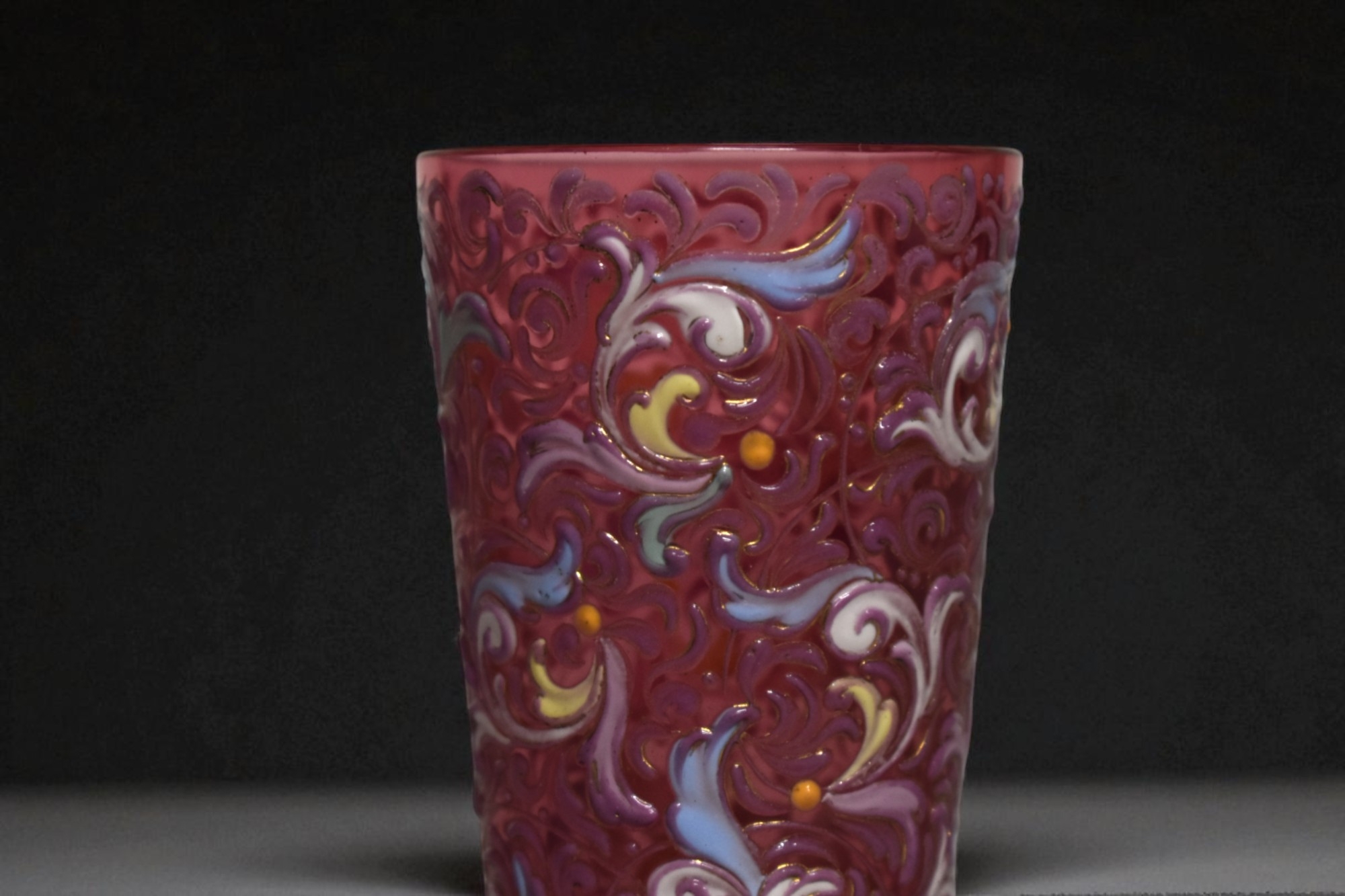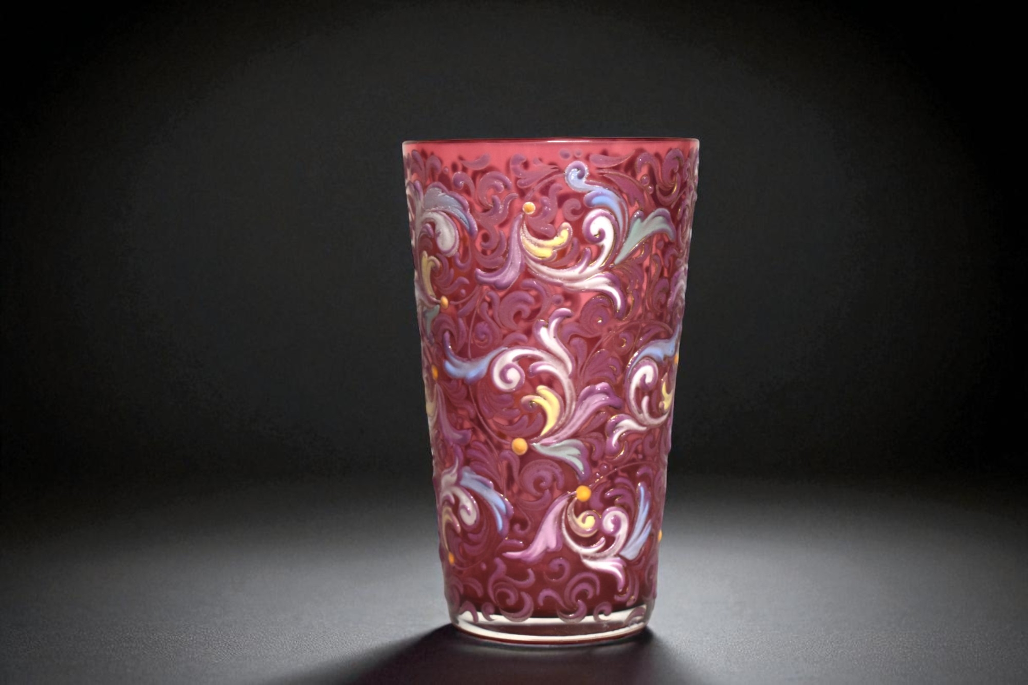 Northwood Fenton Daisy and Fern Cranberry Glass Tumbler