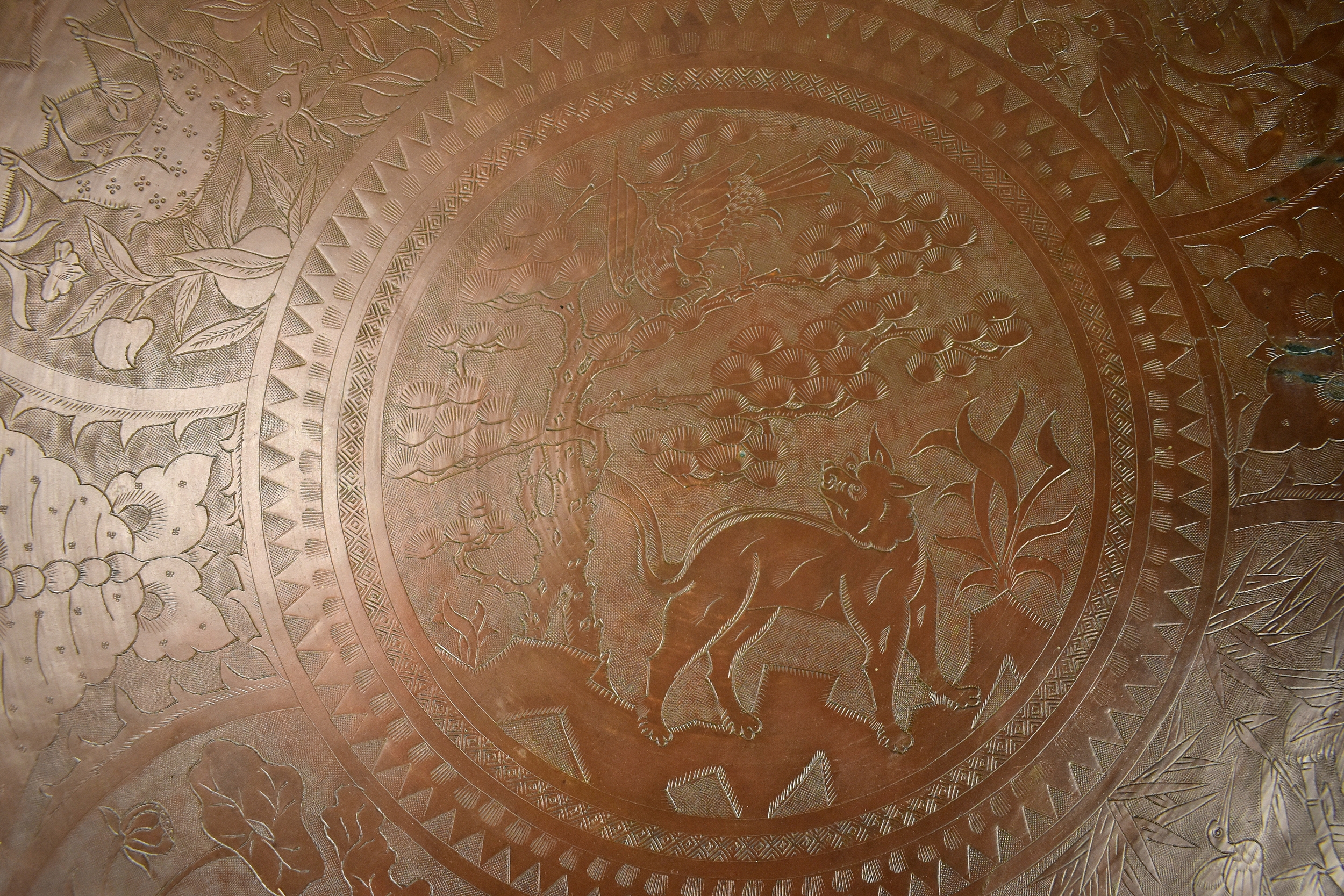 Large Chased Copper Tray
