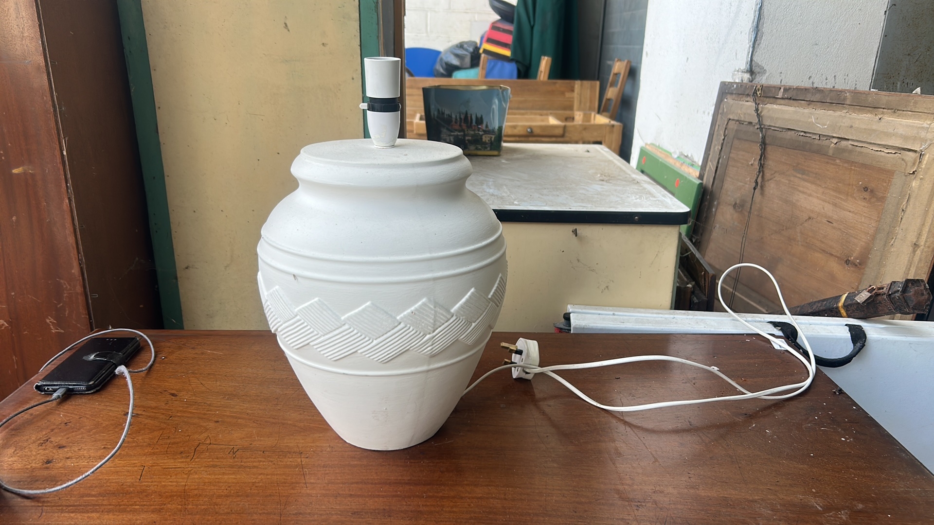Ross 1988 Postmodern White Sculpted Table Lamp