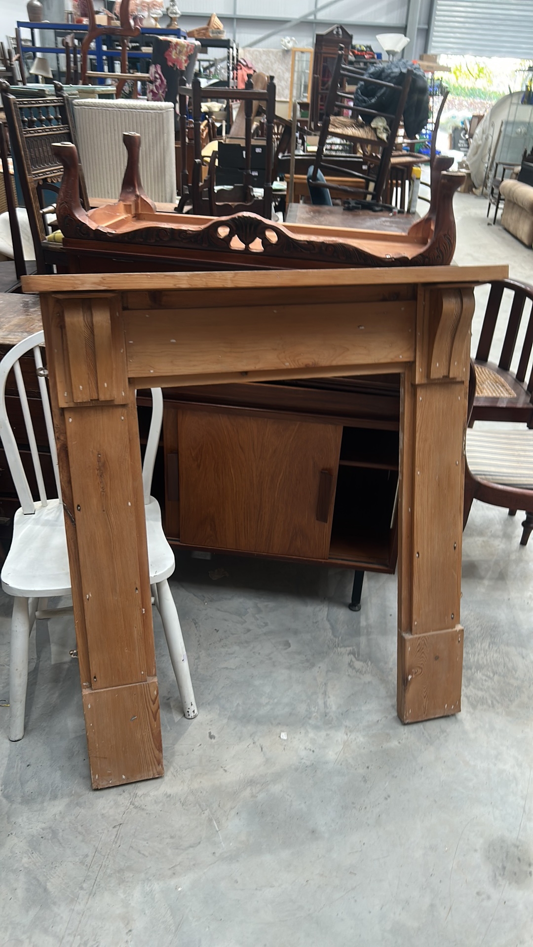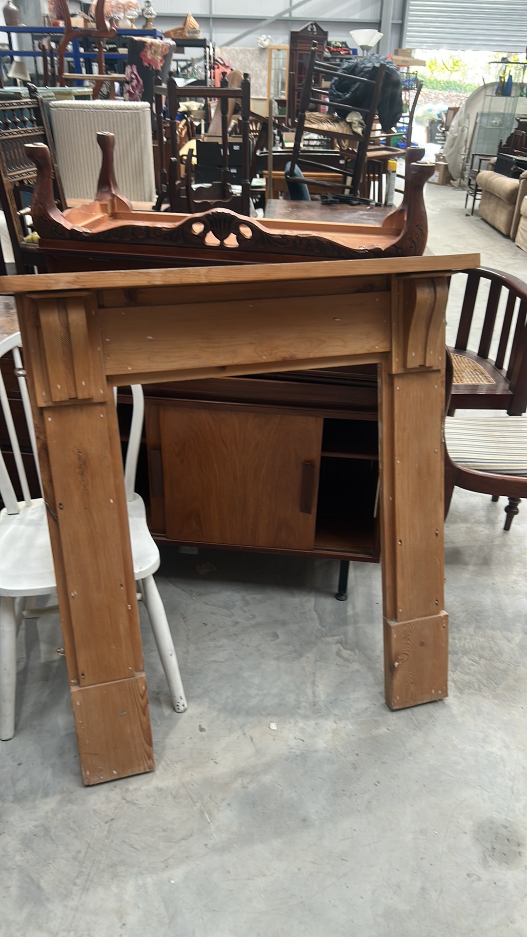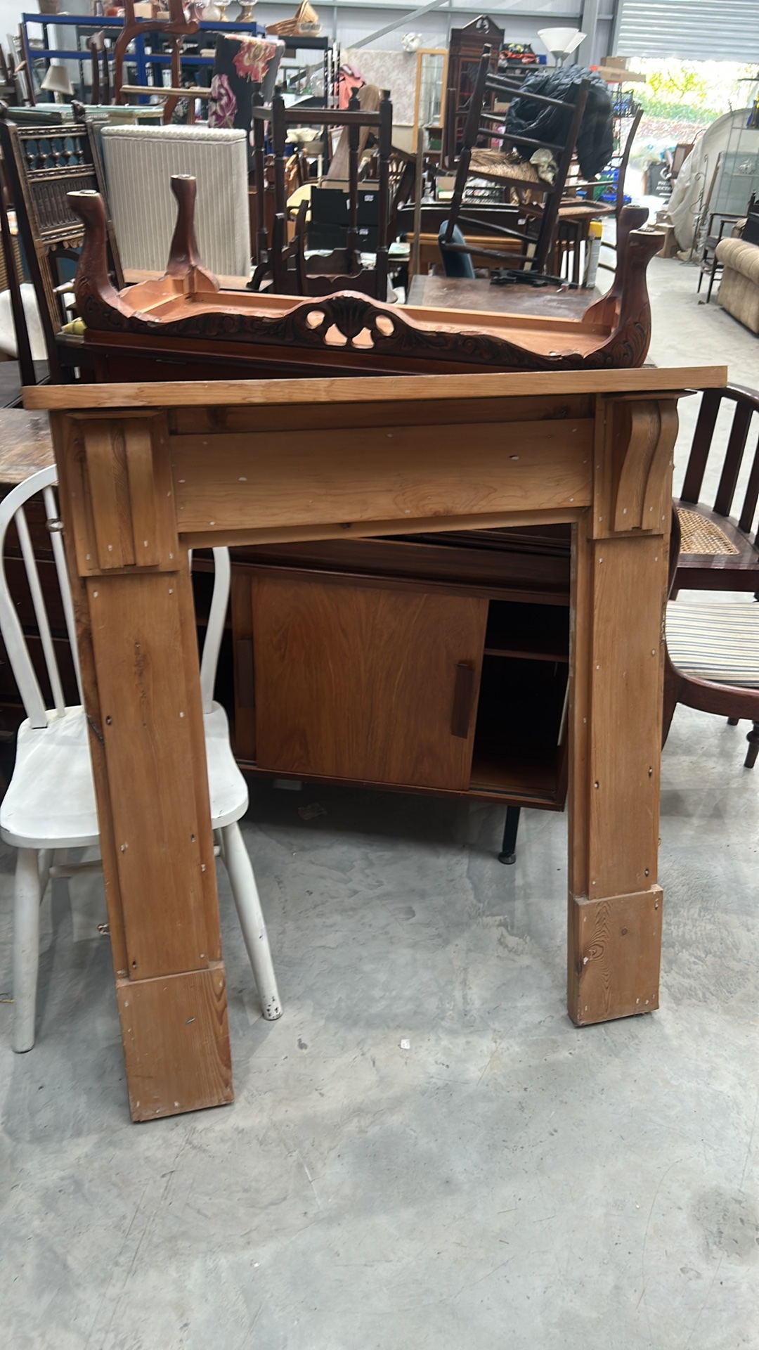 A Wood Fireplace Surround with Fluted Pilasters