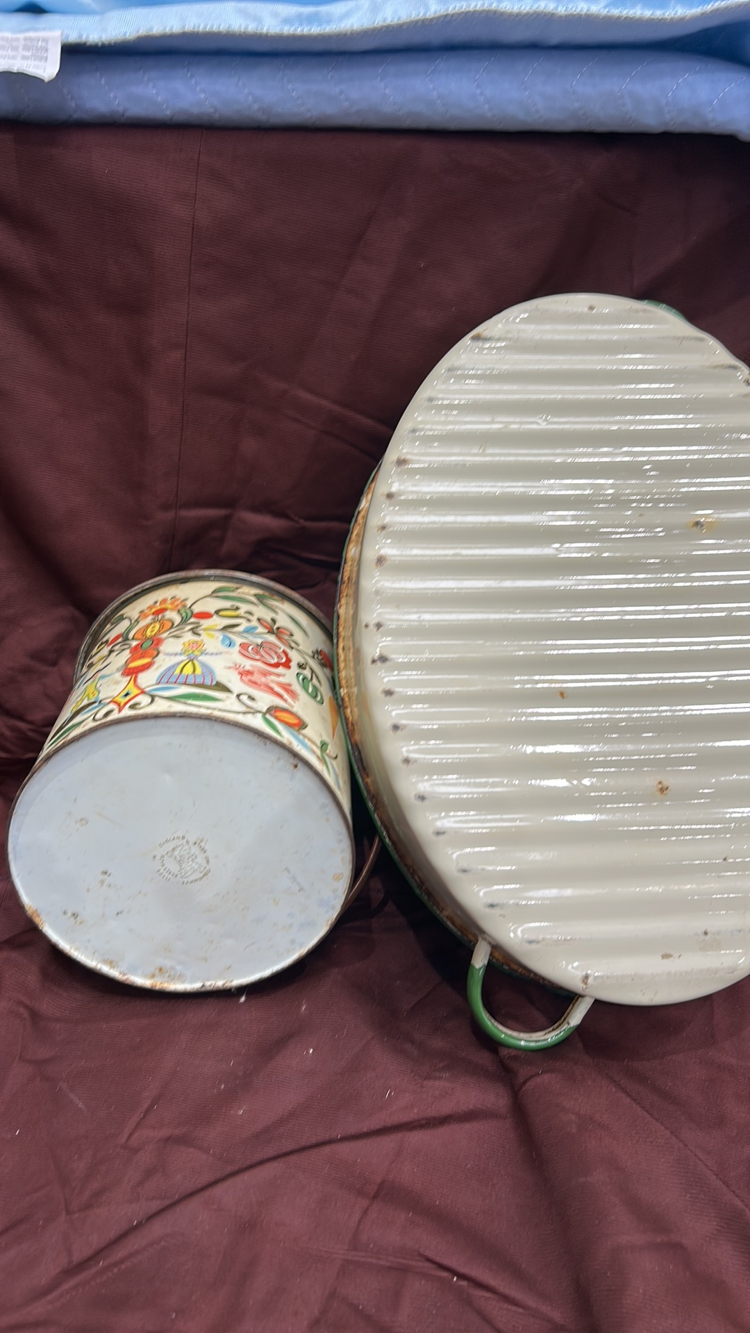 A Pair of Barclay Grace & Co. Ltd. English Biscuit Tin and Vintage Enamel Basin
