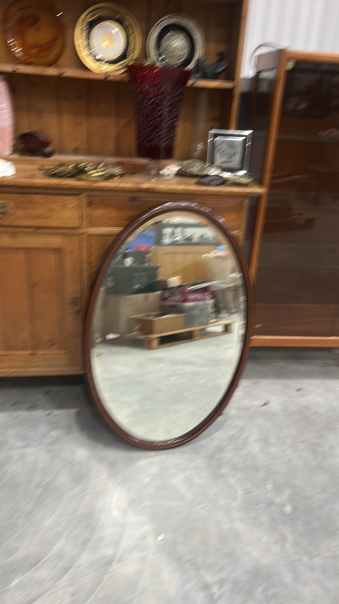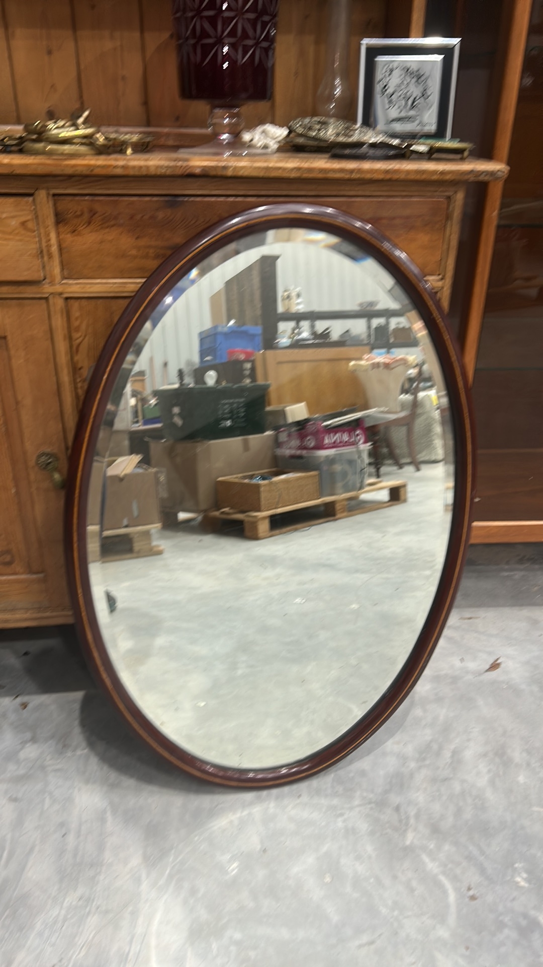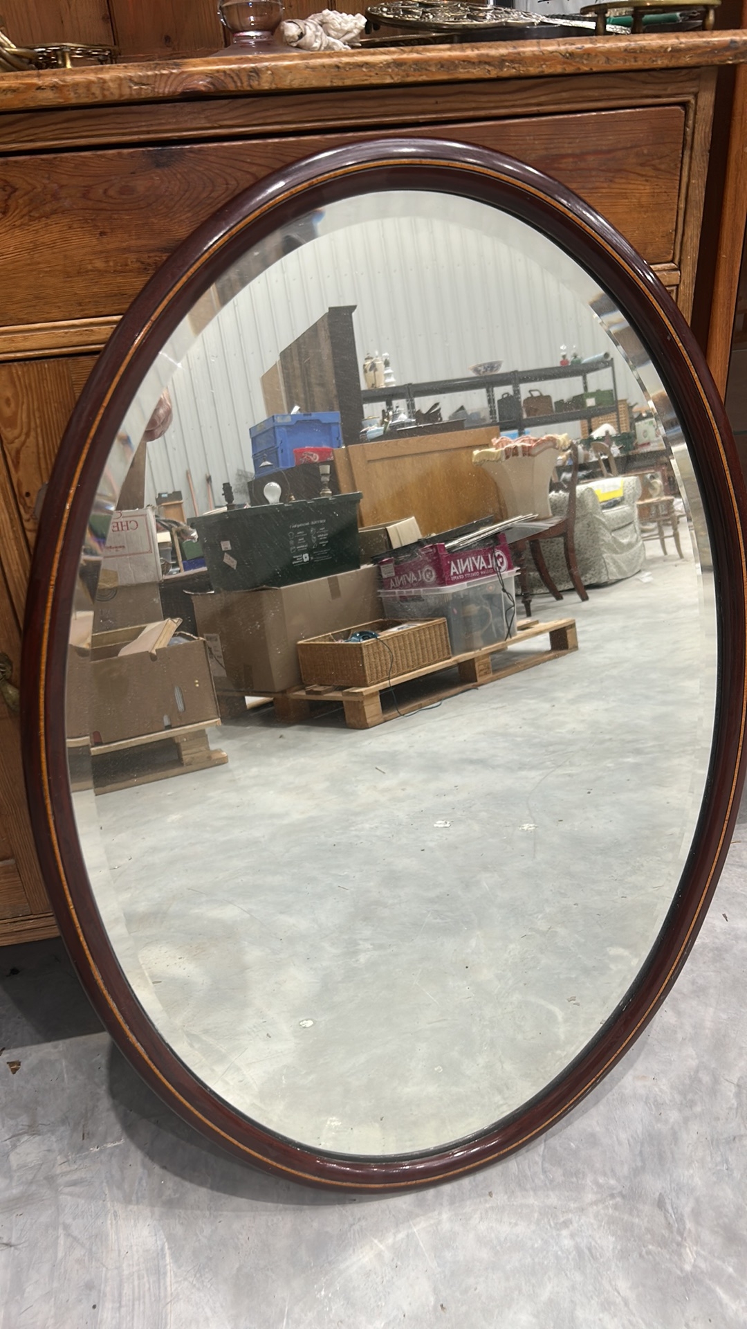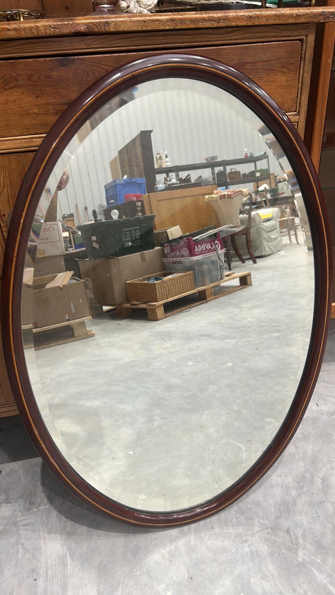 Edwardian Inlaid Mahogany Oval Wall Mirror
