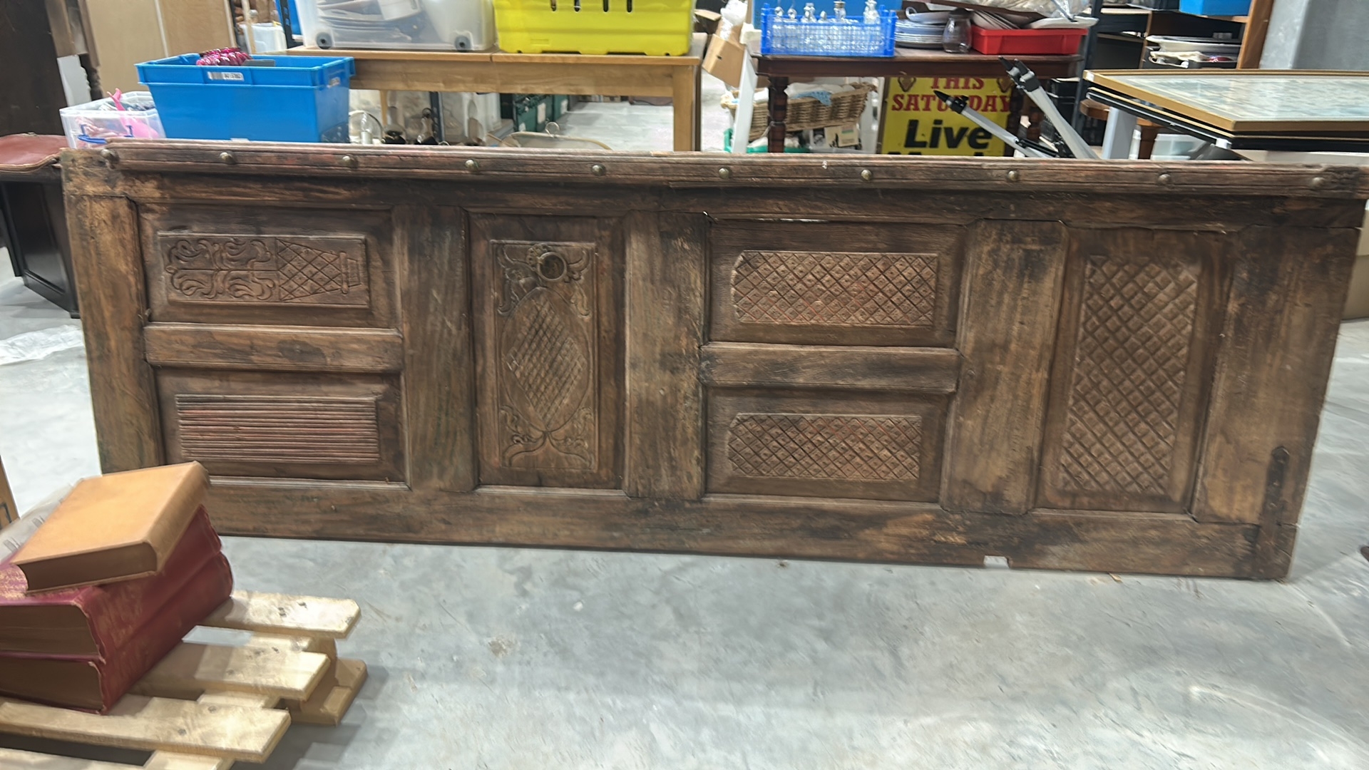 Large Carved Hardwood Panel, Rustic Folk Art Style