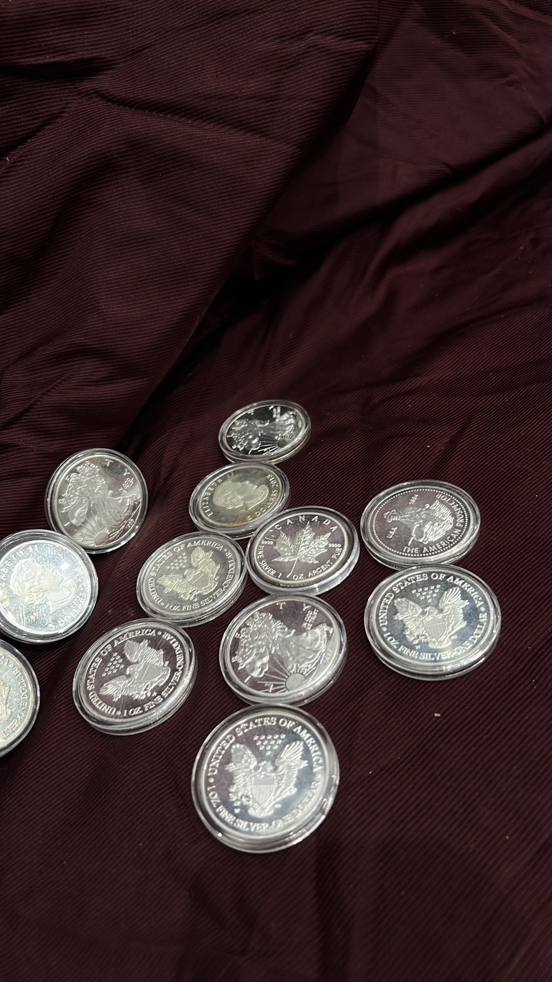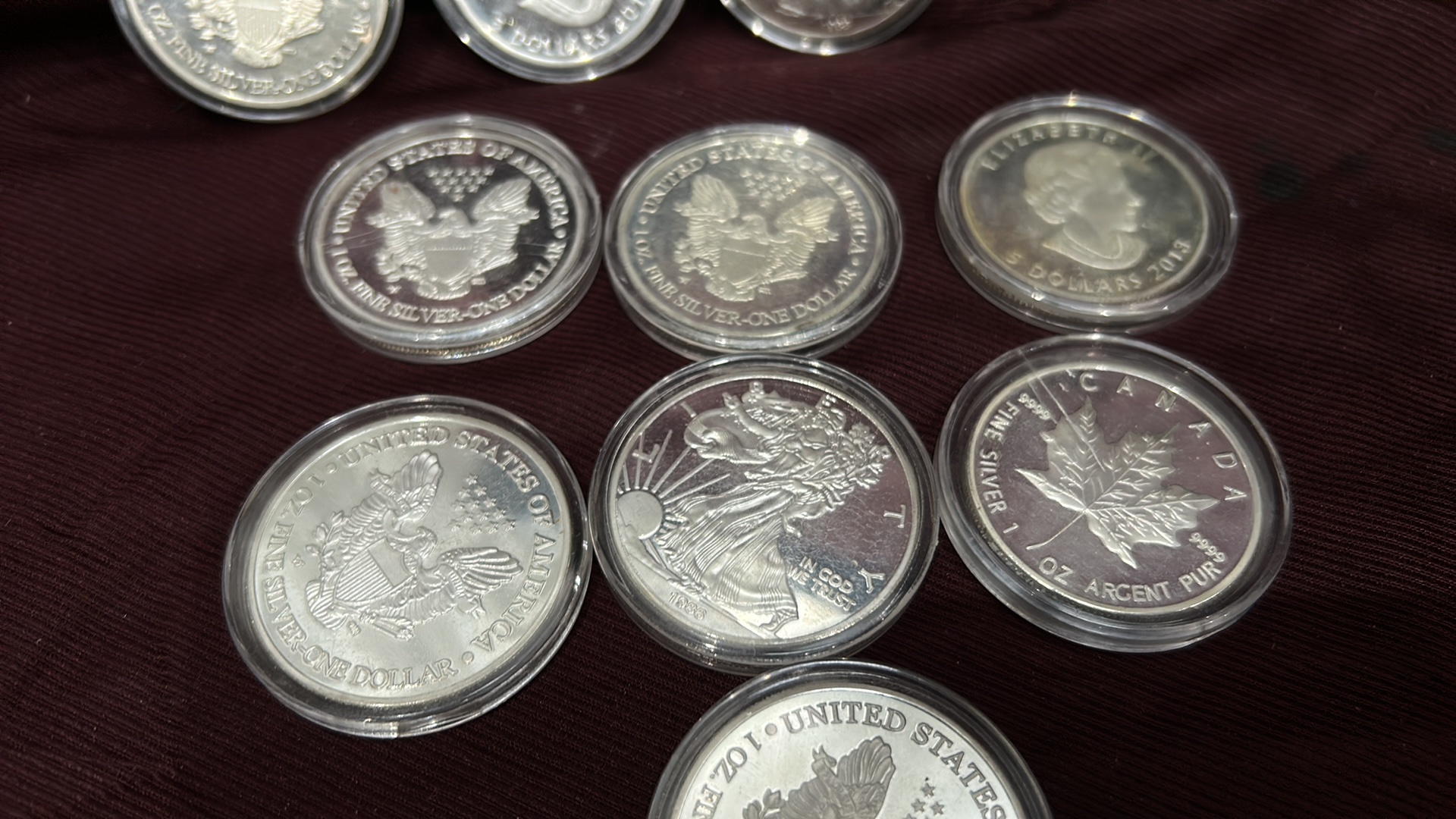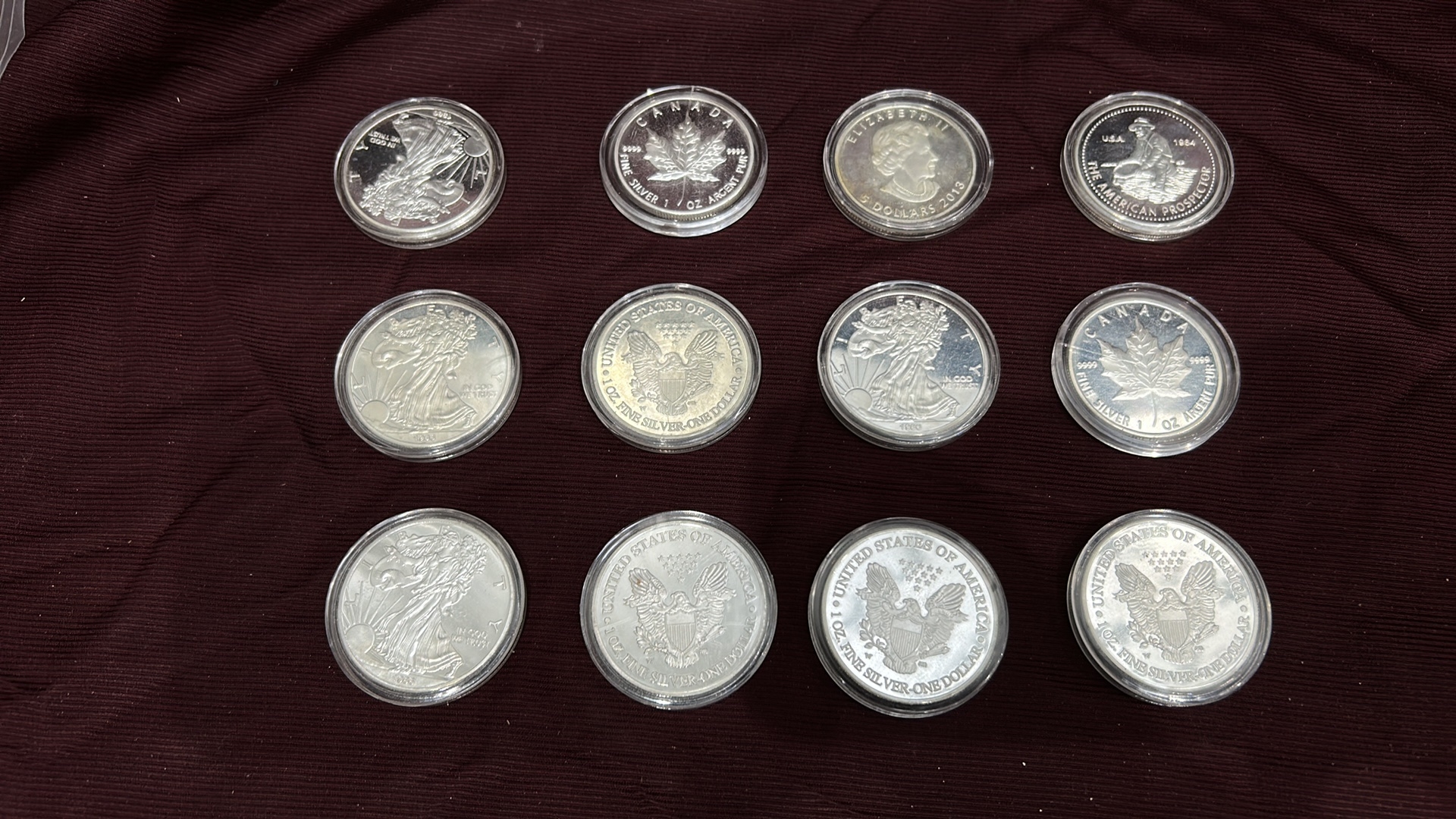A Collection of 12 US, CA Silver Bullion Coins & Rounds